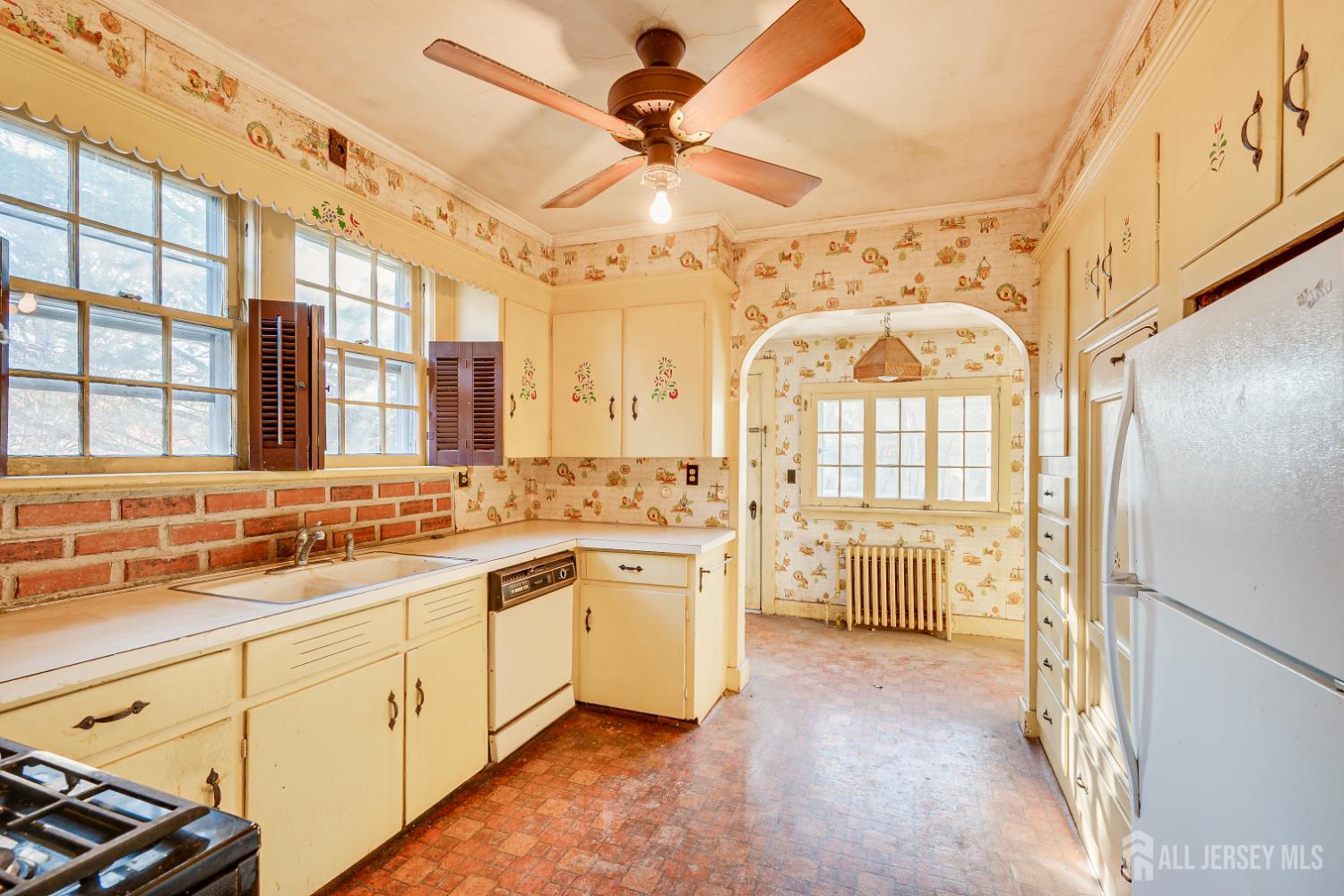 Don't miss out on this opportunity for affordable living in Hightstown in this attached home. Located close to an elementary school in a quiet and historic neighborhood, this home offers a great opportunity for the right buyer! Enter into the home to the open living/dining room with a brick fireplace and a kitchen off the back and a porch leading to backyard. Upstairs you will find 3 bedrooms and 1 bathroom, along with a stairwell that leads up to another partially finished level offering lots of potential for additional living space. The unfinished basement adds more space and would be a great spot for a workshop or additional storage. Close to major highways, shopping, and dining. It is also minutes aways from Peddie Lake, which is host to many seasonal events, as well as local parks. Home is priced to sell as it is in need of some TLC and cosmetic upgrades. Call to schedule an appointment to see it today.