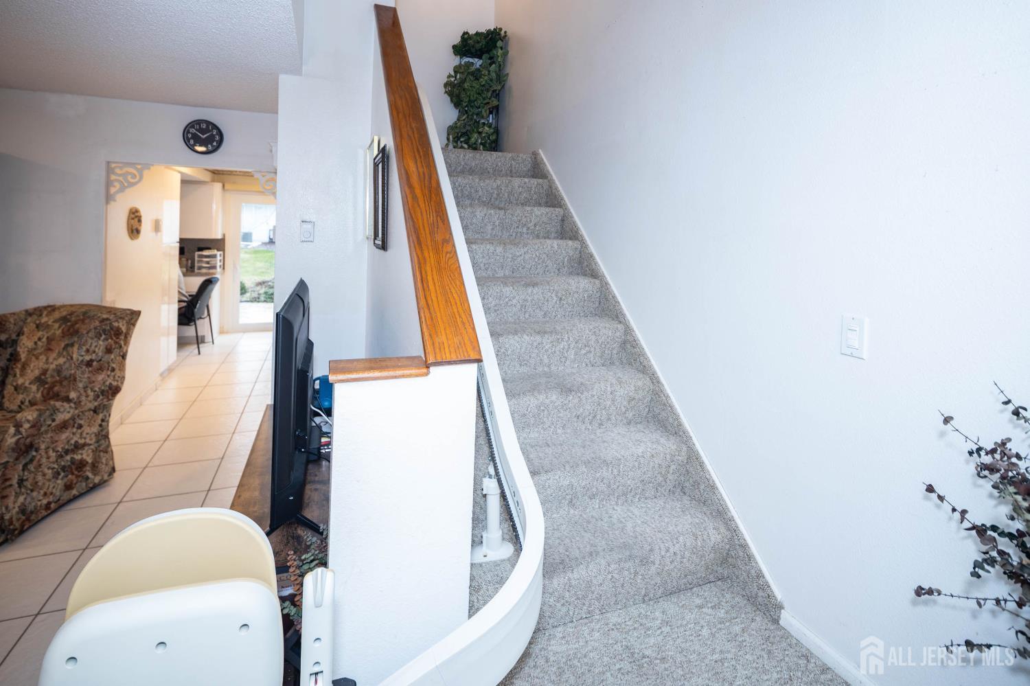 Located in the desirable Clearbrook community, this well maintained 2 bedroom, 2.5 bath home offers comfort, convenience, and a range of valuable updates. The first floor features tile flooring, creating a clean and durable living space. The kitchen includes a new refrigerator, and the home is equipped with a new A/C system for efficient year round comfort. The property benefits from newer windows that bring in great natural light and improved energy efficiency. A new chair lift to the second floor adds accessibility and ease of living. Upstairs, both bedrooms are well sized, and the laundry is conveniently located near the bedrooms, streamlining daily routines. Outdoor living is enhanced by a private patio, ideal for relaxing or enjoying morning coffee. The home also includes a 1 car garage for secure parking and storage, along with inground sprinklers that help maintain the landscaping with ease. Set within a peaceful gated community close to shopping, dining, and major roadways, this home blends practical upgrades with a comfortable, low maintenance lifestyle.