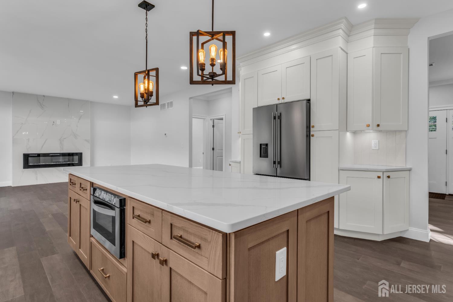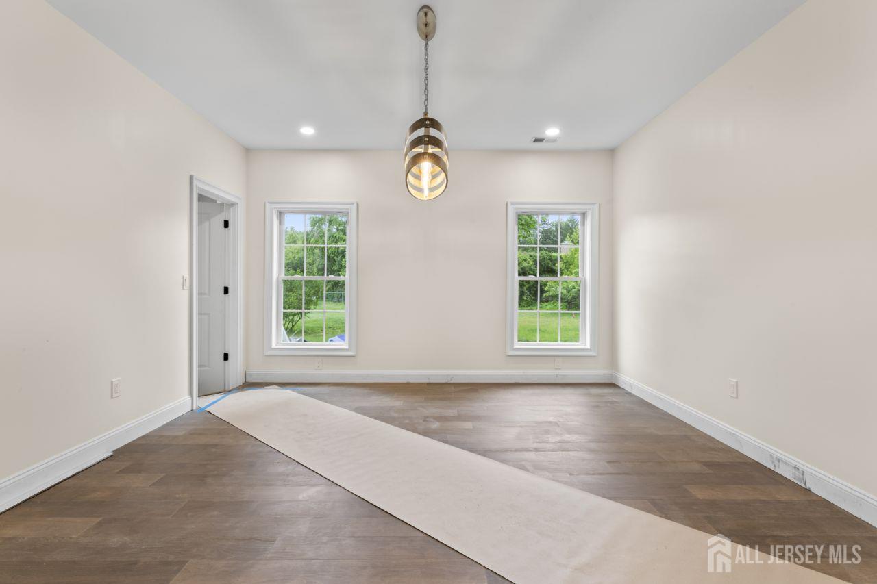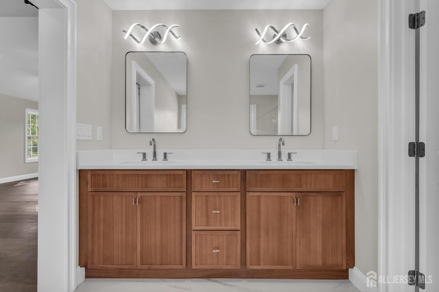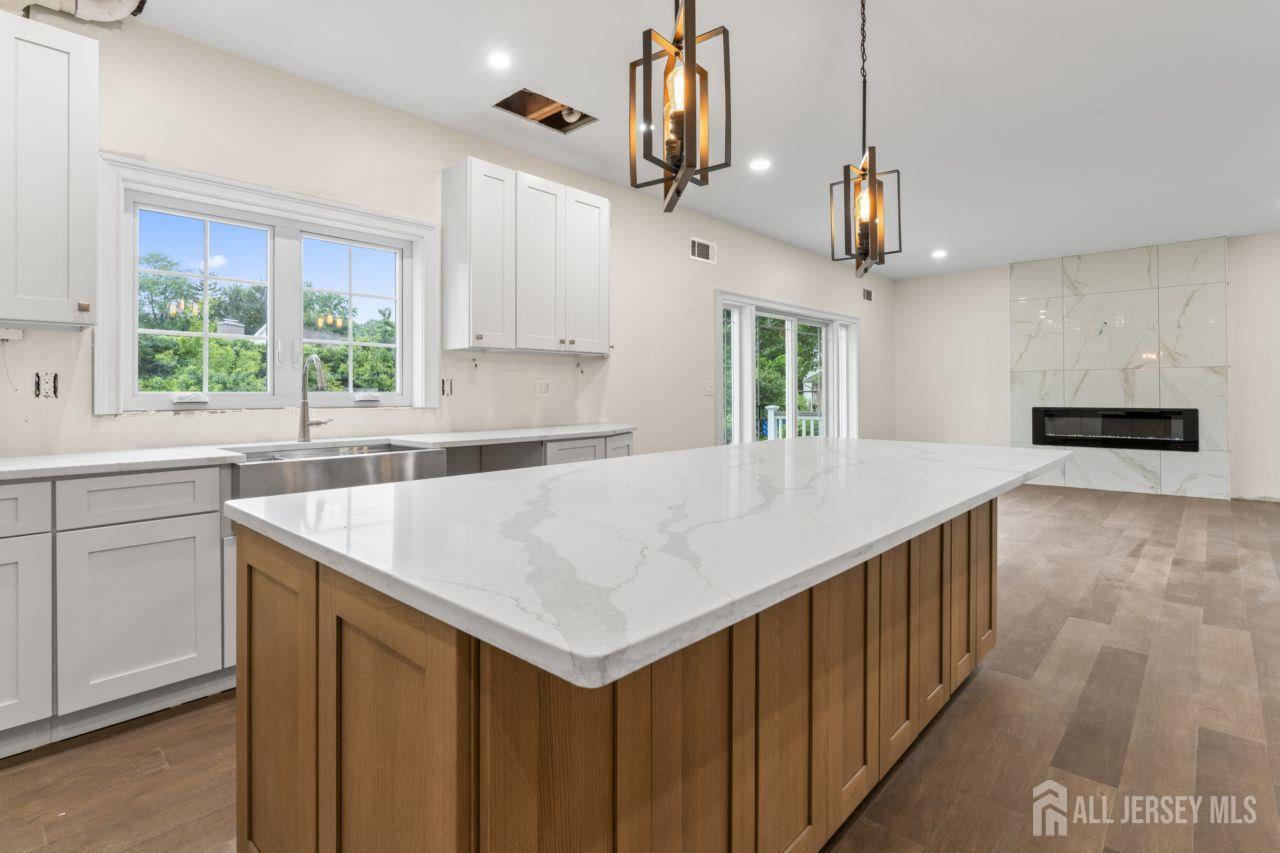 Be the first to own this never-lived-in luxury home in one of East Brunswick's most private enclaves, Lake Farrington Heights. With 3,500+ sq ft plus a finished 1,000 sq ft basement, this 5BR, 4.5BA residence offers both elegance and efficiency. A first-floor ensuite is ideal for guests or multigenerational living, while the primary suite features a private balcony, fireplace, and spa-style bath. Additional highlights include two fireplaces,All SS appliances in kitchen and an open loft on second floor, oversized laundry, abundant storage, and W/I closets. The property also boasts an extra-long driveway, a high-ceiling 2-car garage, and a low-maintenance yard. Convenient to Blue Ribbon schools, shopping, houses of worship, major hospitals, and commuter routes. Backyard virtually staged to scale.