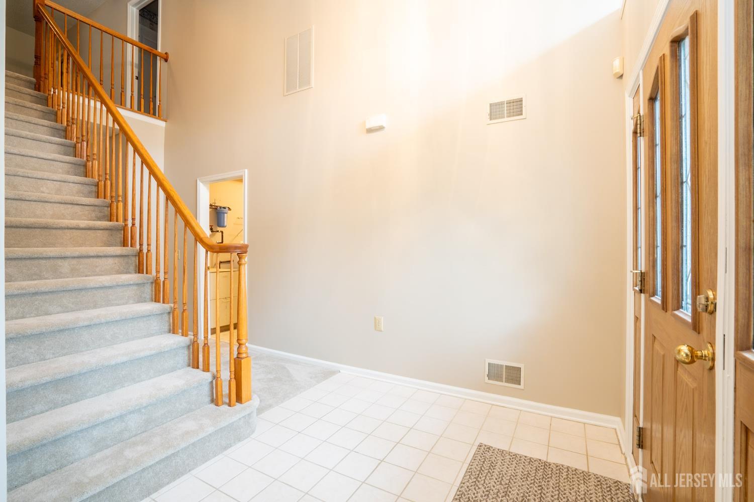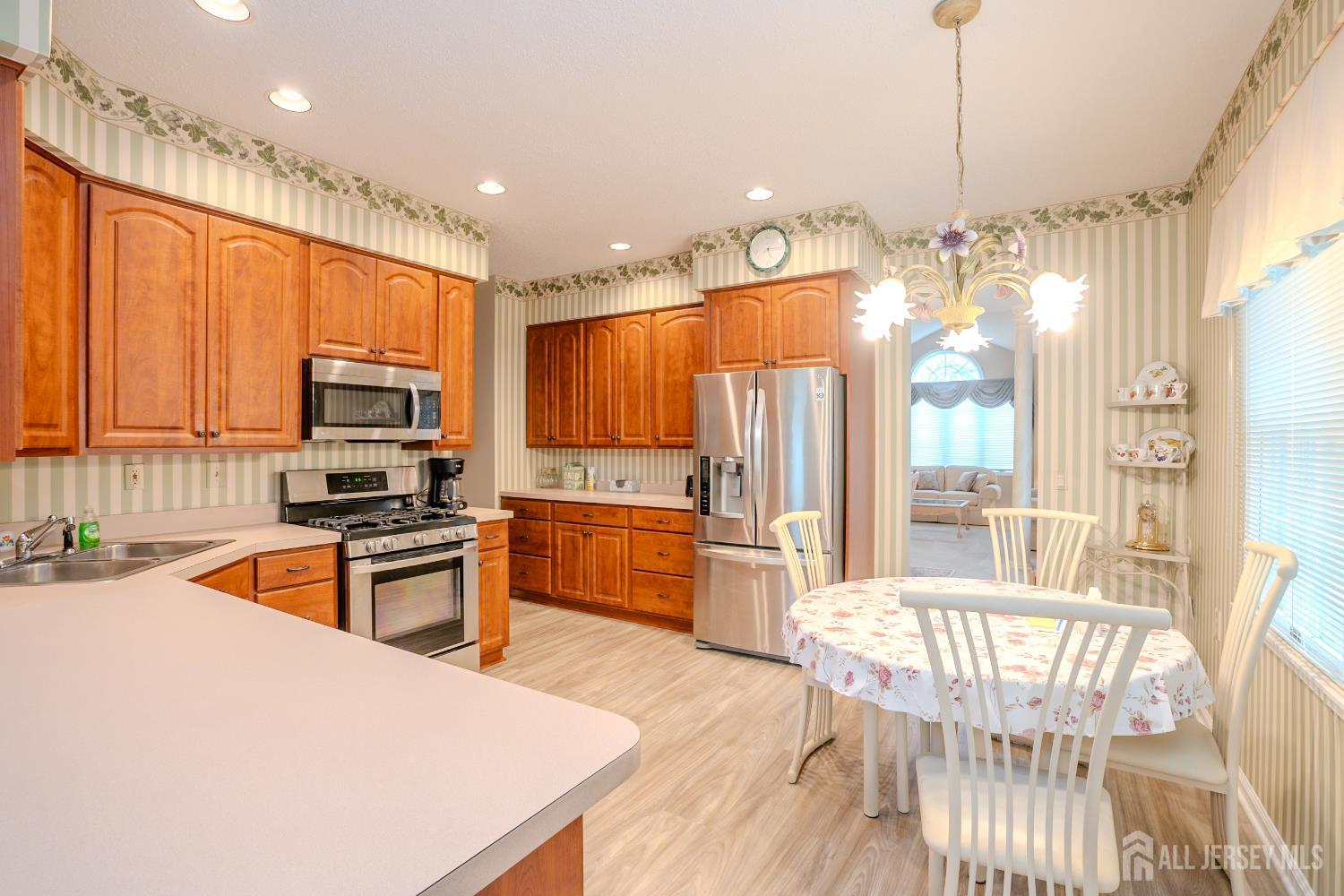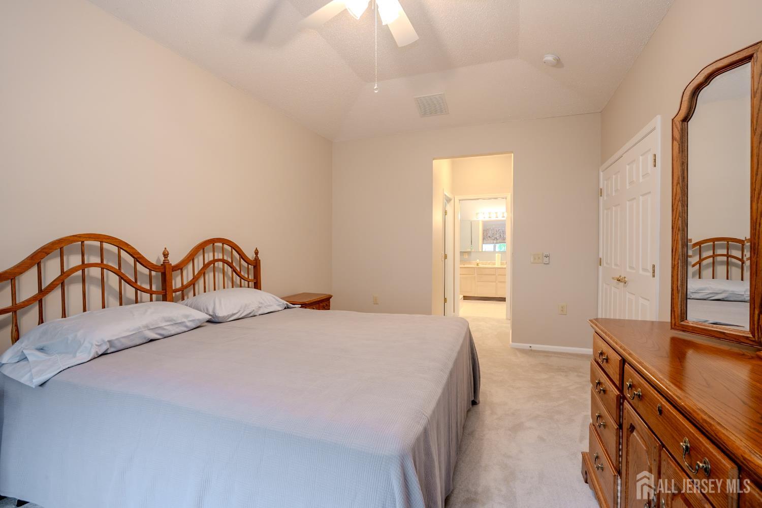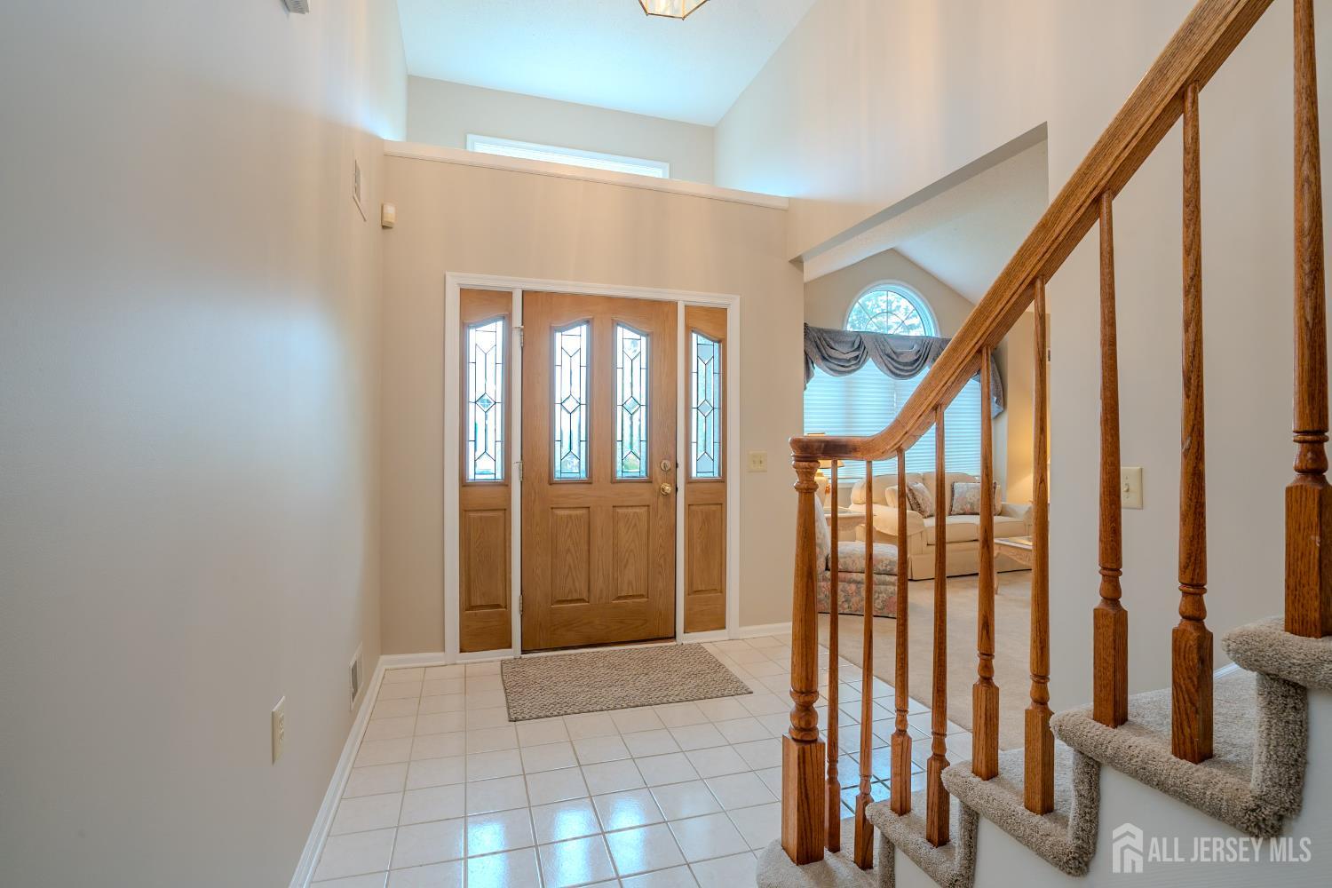 Welcome to 4 Aberdeen Way, a distinguished residence nestled within the vibrant Greenbriar Whittingham adult community in Monroe Township. This elegantly designed home boasts three bedrooms and three full baths, providing an exquisite blend of space and style for those seeking a serene lifestyle. Upon entering, you are greeted by a tiled foyer and lofty ceilings that enhance the brightness of this completely Freshly Painted home. New Carpeting sets a welcoming tone throughout, inviting you to explore further. The living and dining room area is a masterpiece of design, featuring architectural columns and a vaulted ceiling, all illuminated by a magnificent palladium window that floods the space with natural light. The chef's eat-in kitchen is a central highlight, equipped with modern wood cabinetry, creating a stylish space for culinary pursuits and entertaining. The adjoining family room, adorned with new carpeting and paint, opens to a charming paver patio for outdoor enjoyment. The spacious primary bedroom suite serves as a personal sanctuary, offering ample closet space and an en suite bathroom complete with a double sink vanity, soaking tub, and stall shower. Another versatile downstairs room can function as a second bedroom or a home office. Upstairs, a loft and an additional bedroom with a full bath provide an ideal guest quarters, along with a large storage closet for convenience. Residing in Greenbriar Whittingham offers access to premium amenities, including nursing services, a 9-hole golf course, a clubhouse with a billiard room, and a fitness center. A restaurant, indoor and outdoor pools, various sports courts, and engaging social events enrich community living. Enjoy peace of mind with 24-hour security and easy transportation to shopping and commuter stations in this sought-after locale.
