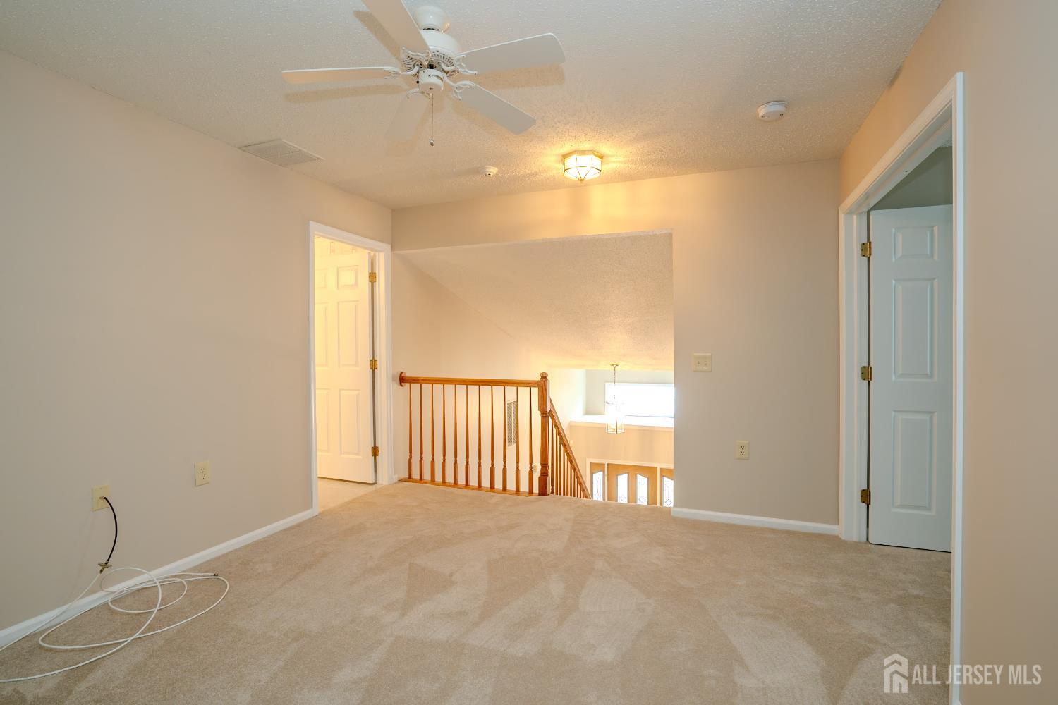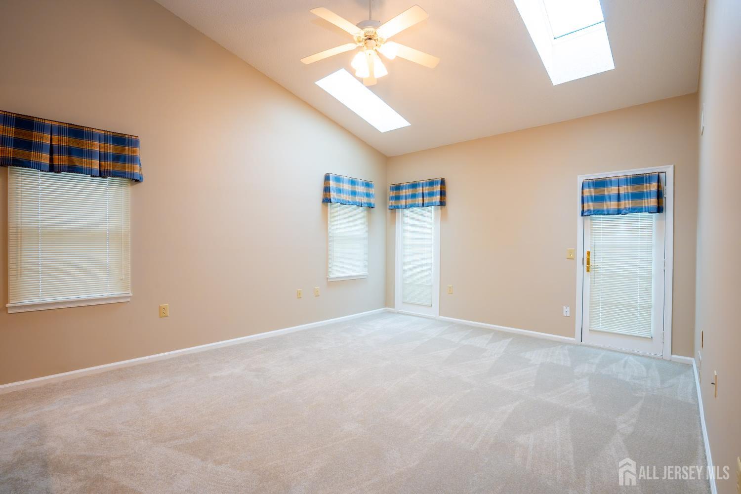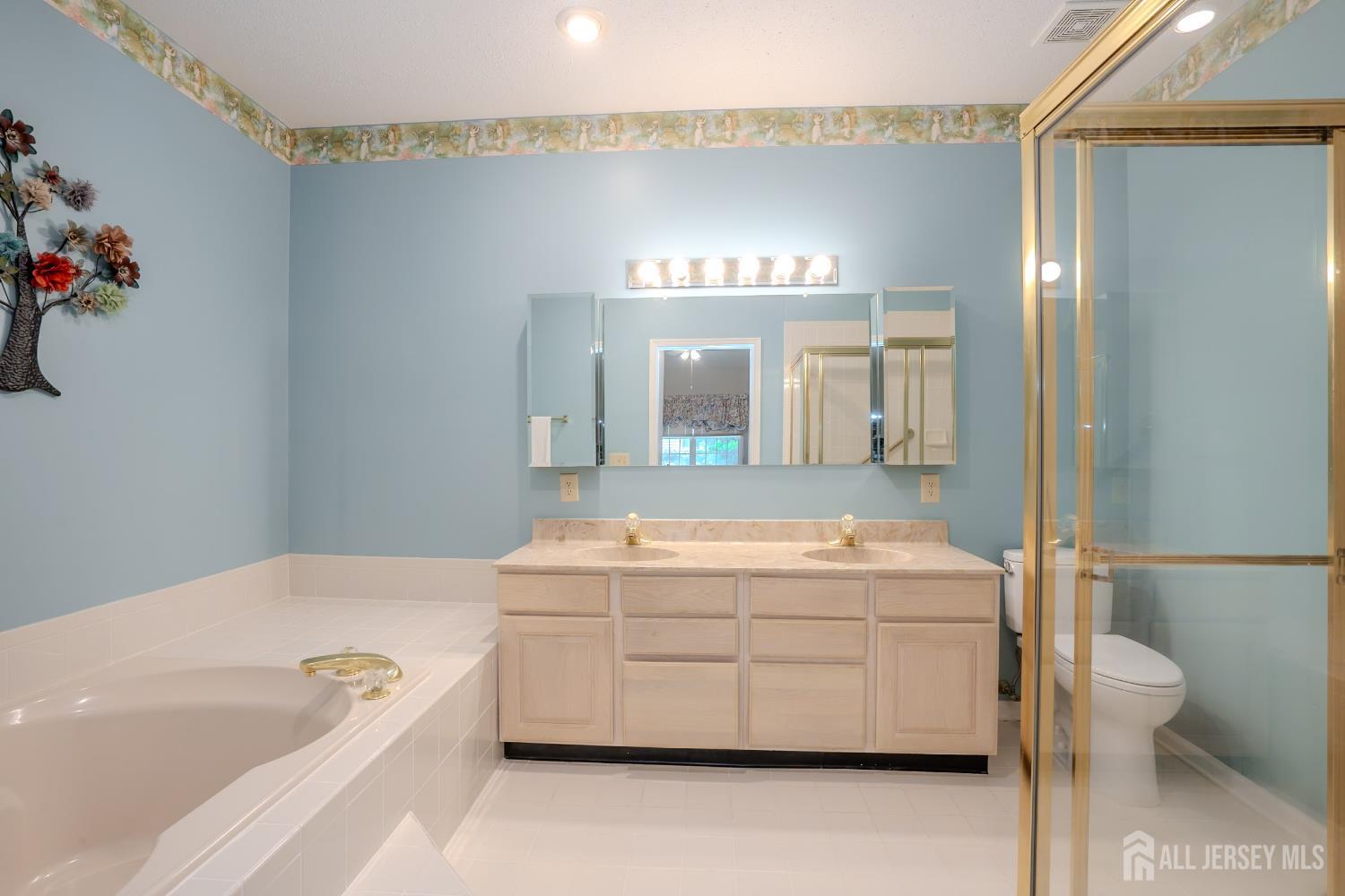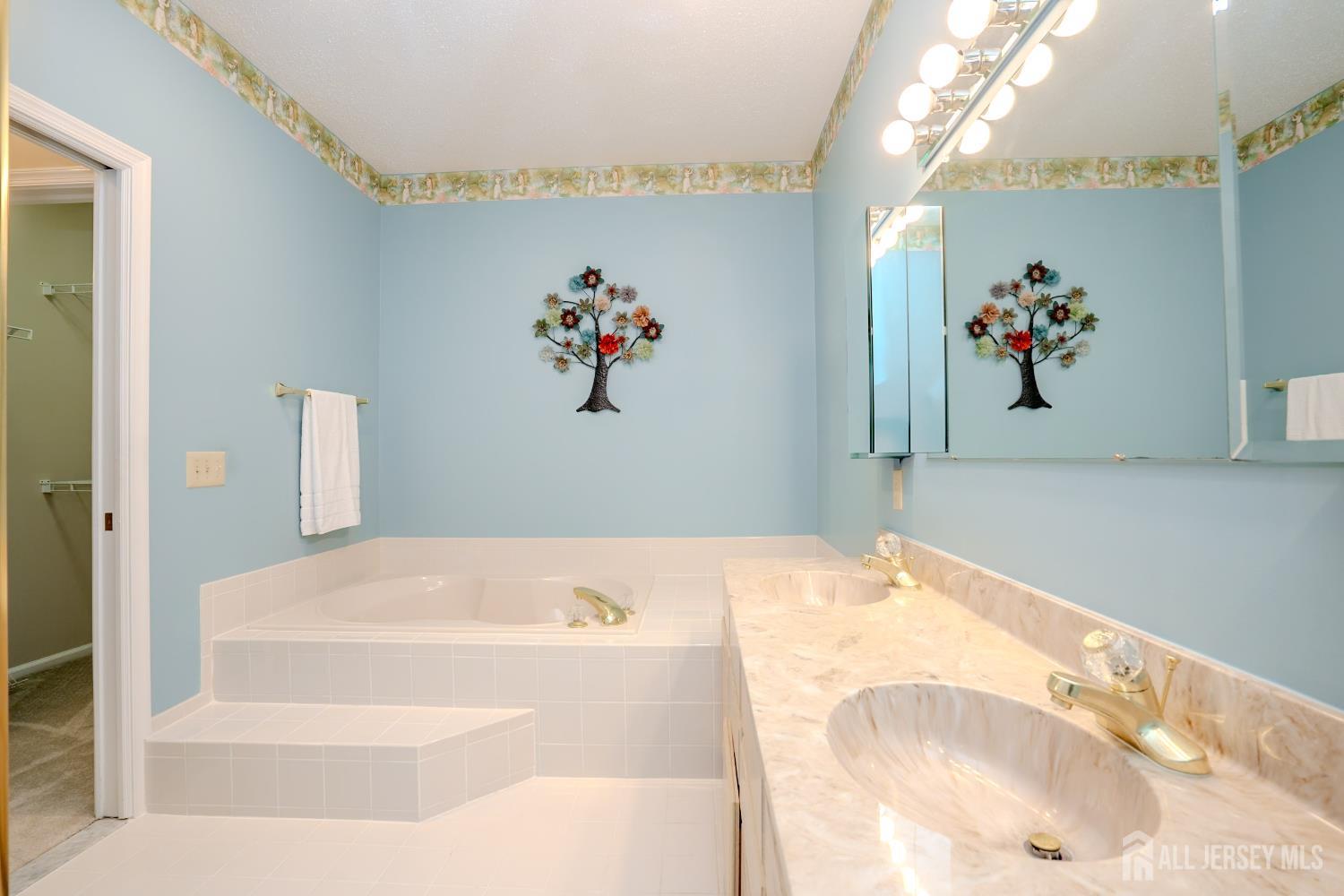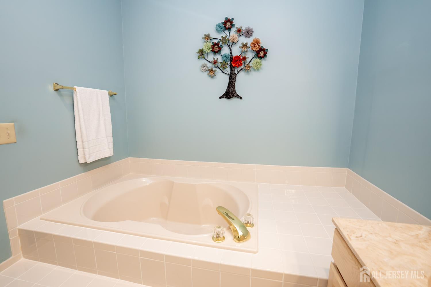 Welcome to 4 Aberdeen Way, a distinguished residence nestled within the vibrant Greenbriar Whittingham adult community in Monroe Township. This elegantly designed home boasts three bedrooms and three full baths, providing an exquisite blend of space and style for those seeking a serene lifestyle. Upon entering, you are greeted by a tiled foyer and lofty ceilings that enhance the brightness of this completely Freshly Painted home. New Carpeting sets a welcoming tone throughout, inviting you to explore further. The living and dining room area is a masterpiece of design, featuring architectural columns and a vaulted ceiling, all illuminated by a magnificent palladium window that floods the space with natural light. The chef's eat-in kitchen is a central highlight, equipped with modern wood cabinetry, creating a stylish space for culinary pursuits and entertaining. The adjoining family room, adorned with new carpeting and paint, opens to a charming paver patio for outdoor enjoyment. The spacious primary bedroom suite serves as a personal sanctuary, offering ample closet space and an en suite bathroom complete with a double sink vanity, soaking tub, and stall shower. Another versatile downstairs room can function as a second bedroom or a home office. Upstairs, a loft and an additional bedroom with a full bath provide an ideal guest quarters, along with a large storage closet for convenience. Residing in Greenbriar Whittingham offers access to premium amenities, including nursing services, a 9-hole golf course, a clubhouse with a billiard room, and a fitness center. A restaurant, indoor and outdoor pools, various sports courts, and engaging social events enrich community living. Enjoy peace of mind with 24-hour security and easy transportation to shopping and commuter stations in this sought-after locale.