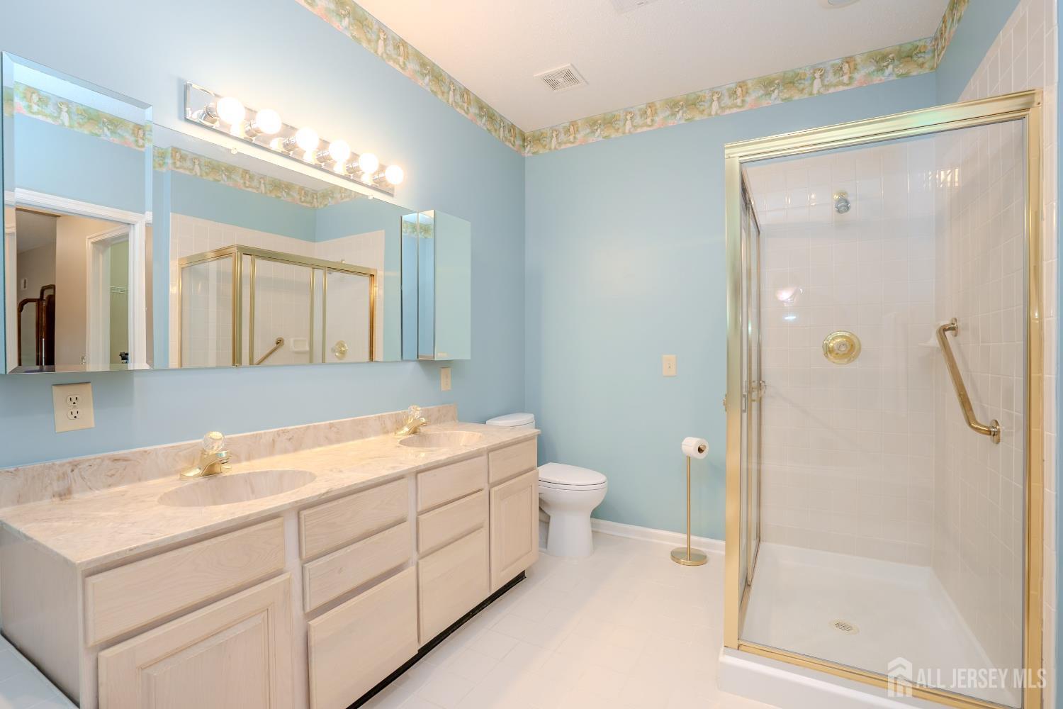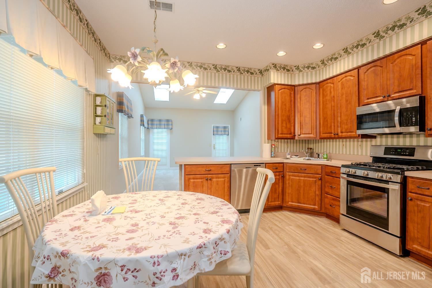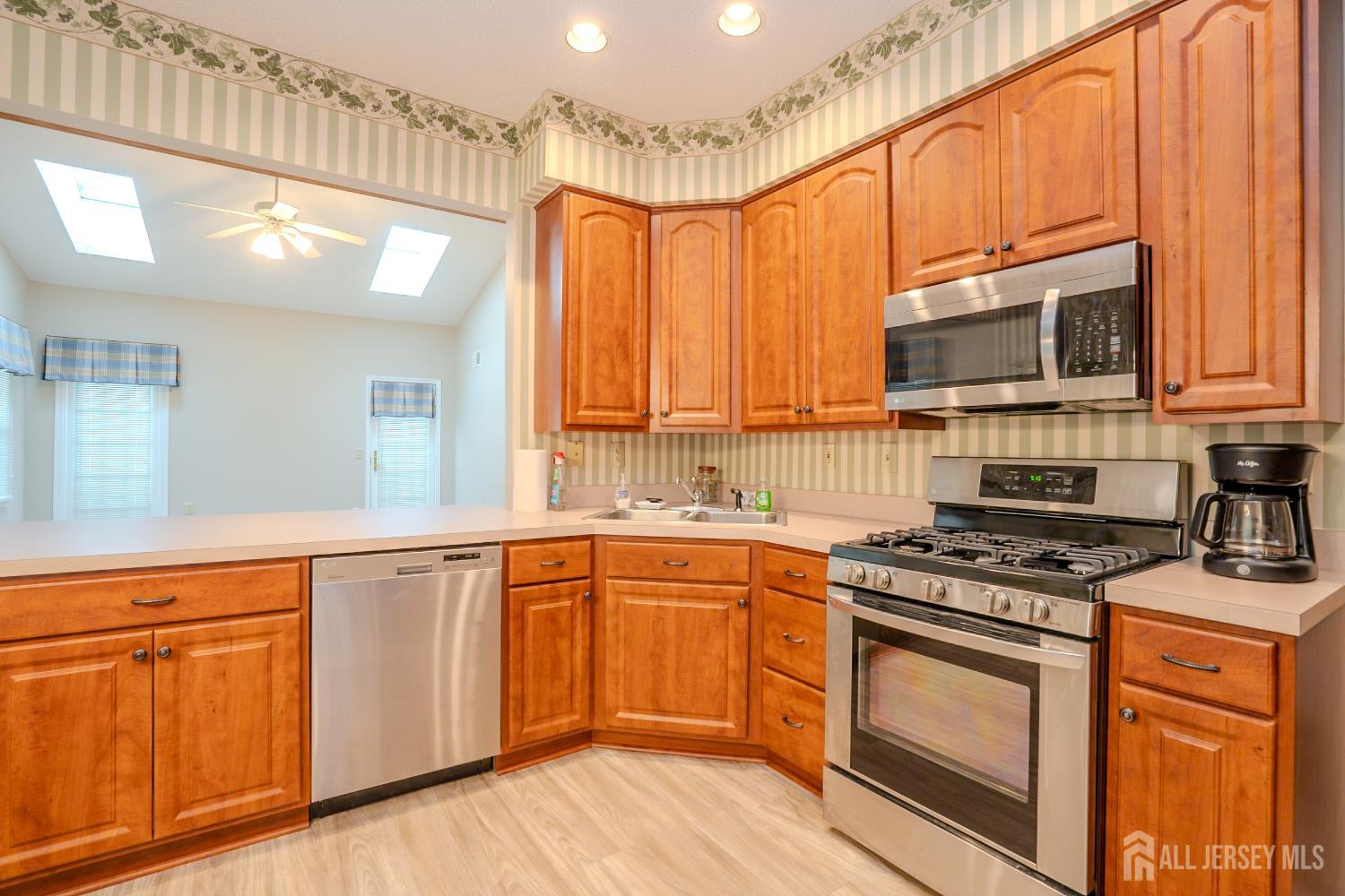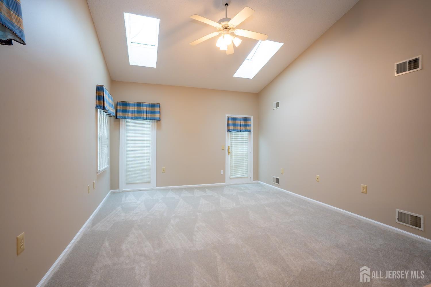 Welcome to 4 Aberdeen Way, a distinguished residence nestled within the vibrant Greenbriar Whittingham adult community in Monroe Township. This elegantly designed home boasts three bedrooms and three full baths, providing an exquisite blend of space and style for those seeking a serene lifestyle. Upon entering, you are greeted by a tiled foyer and lofty ceilings that enhance the brightness of this completely Freshly Painted home. New Carpeting sets a welcoming tone throughout, inviting you to explore further. The living and dining room area is a masterpiece of design, featuring architectural columns and a vaulted ceiling, all illuminated by a magnificent palladium window that floods the space with natural light. The chef's eat-in kitchen is a central highlight, equipped with modern wood cabinetry, creating a stylish space for culinary pursuits and entertaining. The adjoining family room, adorned with new carpeting and paint, opens to a charming paver patio for outdoor enjoyment. The spacious primary bedroom suite serves as a personal sanctuary, offering ample closet space and an en suite bathroom complete with a double sink vanity, soaking tub, and stall shower. Another versatile downstairs room can function as a second bedroom or a home office. Upstairs, a loft and an additional bedroom with a full bath provide an ideal guest quarters, along with a large storage closet for convenience. Residing in Greenbriar Whittingham offers access to premium amenities, including nursing services, a 9-hole golf course, a clubhouse with a billiard room, and a fitness center. A restaurant, indoor and outdoor pools, various sports courts, and engaging social events enrich community living. Enjoy peace of mind with 24-hour security and easy transportation to shopping and commuter stations in this sought-after locale.