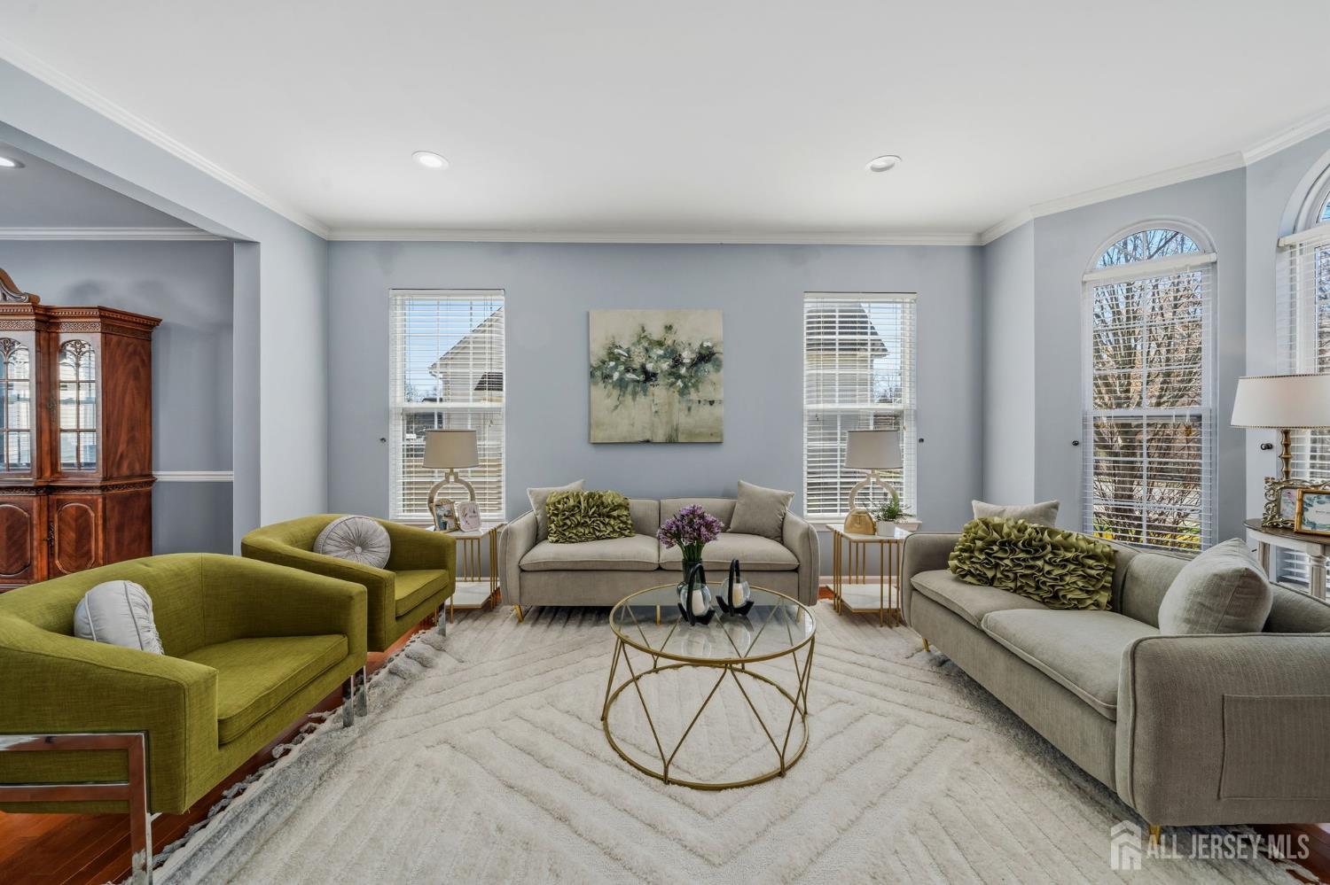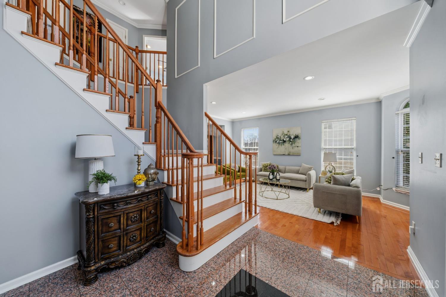 Welcome to this beautifully upgraded 3,145 sqft home located in the highly sought-after premium section of the Grande community in South Brunswick. Built in 2002,this spacious home offers 5 generously sized bedrooms and 3 full bathrooms. This home has over 200k in recent upgrades & provides exceptional flexibility for today's lifestyle,including ideal space for guests,a home office,or multi-generational living.From the moment you arrive, professionally designed front hardscaping and landscaping create outstanding curb appeal.Enter into a grand Foyer with granite floors & a stunning crystal motorized chandelier.The home showcases elegant finishes and thoughtful customizations throughout.Wood,granite & porcelain flooring add sophistication & appeal.Luxury details elevate the home's interior including custom moldings,fresh paint,recessed lighting.The Living & Dining rooms exude elegance with the custom finishes & crystal lighting. The completely renovated Chef's kitchen is the heart of the home.42 inch cabinetry with soft close doors & drawers,Stainless Steel High end GE appliances including a custom built-in Refrigerator,oversized GE Rangehood vented out,Double wall oven,High end granite countertops, oversized centre island with chic pendant lamps.The adjoining family room with Vaulted ceilings & a gas Fireplace is the gathering place to make memories.Step out onto a new Trex Deck to entertain in the summer or spend some memorable evenings! Upstairs, you'll find 4 spacious bedrooms,a fully renovated Hallway bath & a Laundry room with a high end LG Washer & Dryer.The brazillian cherry hardwood floors extend into all bedrooms.The luxurious Master suite is like none you have seen before.3 walkin custom closets is a rarity,along with a sitting area or Office space however you would want to use it.The completely renovated Master bathroom is the epitome of luxury with it's porcelain tiles, Jacuzzi tub, heated towel warmers and built-in medicine cabinets for a spa-like experience. Major system upgrades provide peace of mind, including a new roof installed in March 2026 with a transferable 15-year warranty, along with separately updated HVAC systems for both levels.Enhanced exterior Ring motion lighting and a full Ring security system add modern safety and convenience.Technology and functionality are seamlessly integrated with home-run Cat5/6 structured wiring throughout the home, pre-wired audio cabling in the family room, and smart-home readiness.An upgraded 9 zone sprinkler system featuring custom zones,including misting systems for flower pots and a dedicated vegetable garden irrigation setup.Custom upgraded closets provide excellent organization, while the 3 car garage features built-in cabinetry and a custom attic for exceptional storage solutions.The full basement, partially finished, offers additional recreation space.Located close to major highways,shopping, dining,and top-rated South Brunswick schools, this meticulously upgraded home is a stunner