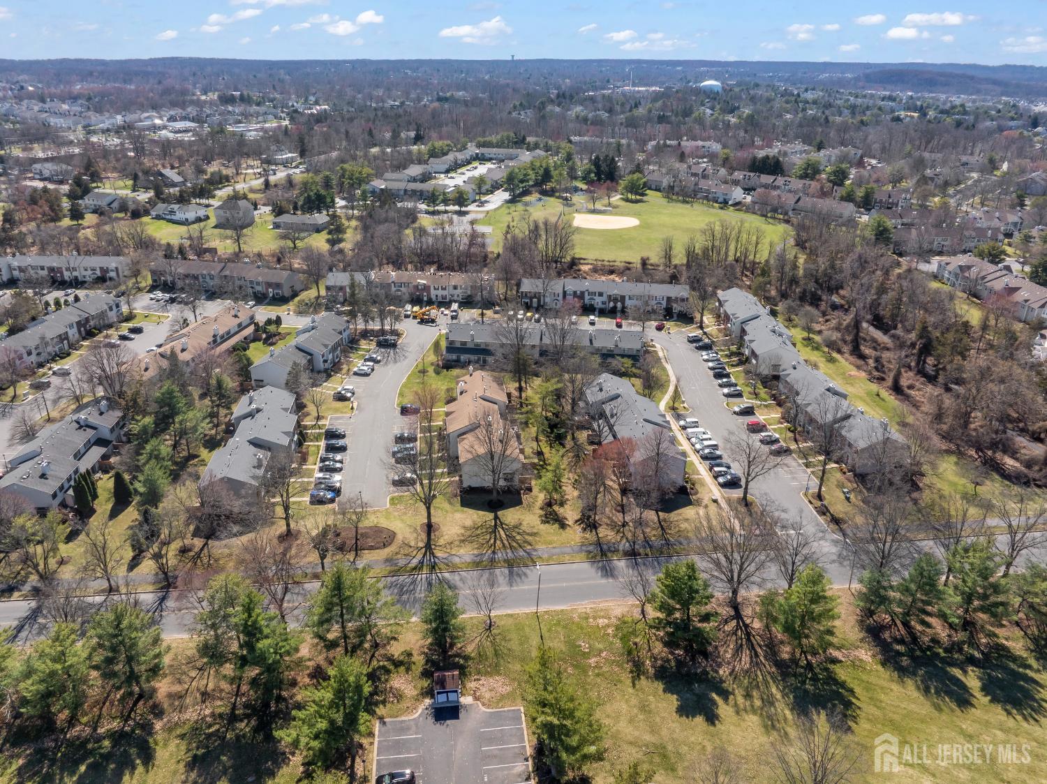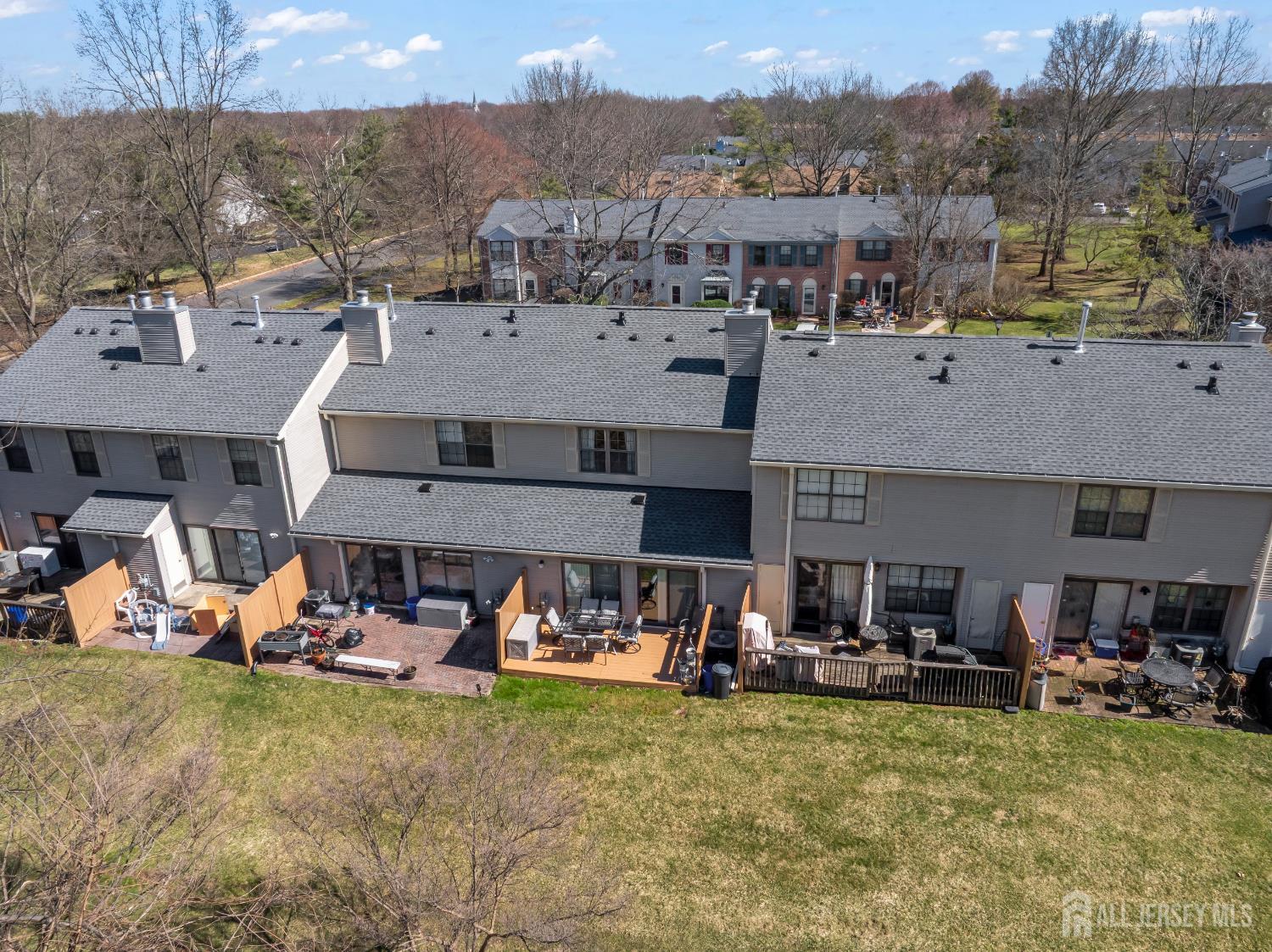 Welcome to this well-maintained 2-bedroom, 2.5-bath townhome in the desirable Society Hill community of Franklin Park. Offering a spacious and functional layout, this home features a large open living and dining area with a cozy fireplace, plus a separate first-floor office/flex space that is perfect for working from home, hobbies, or additional living use. Sliding glass doors from the office/flex space lead to a private rear deck overlooking open common green space, creating a peaceful setting for relaxing or entertaining. The kitchen offers ample cabinet and counter space for everyday convenience. Upstairs, you'll find two generously sized bedrooms, including a spacious primary suite with a private bath and double closets. A second full bath and convenient second-floor laundry complete the upper level. Residents enjoy access to community amenities including a pool, tennis courts, and playground. The roof has been replaced (2025), and exterior maintenance including the roof and siding is covered by the HOA, adding additional value and peace of mind. Conveniently located near shopping, dining, major highways, and public transportation, this is a great opportunity to own in a sought-after Franklin Park location.