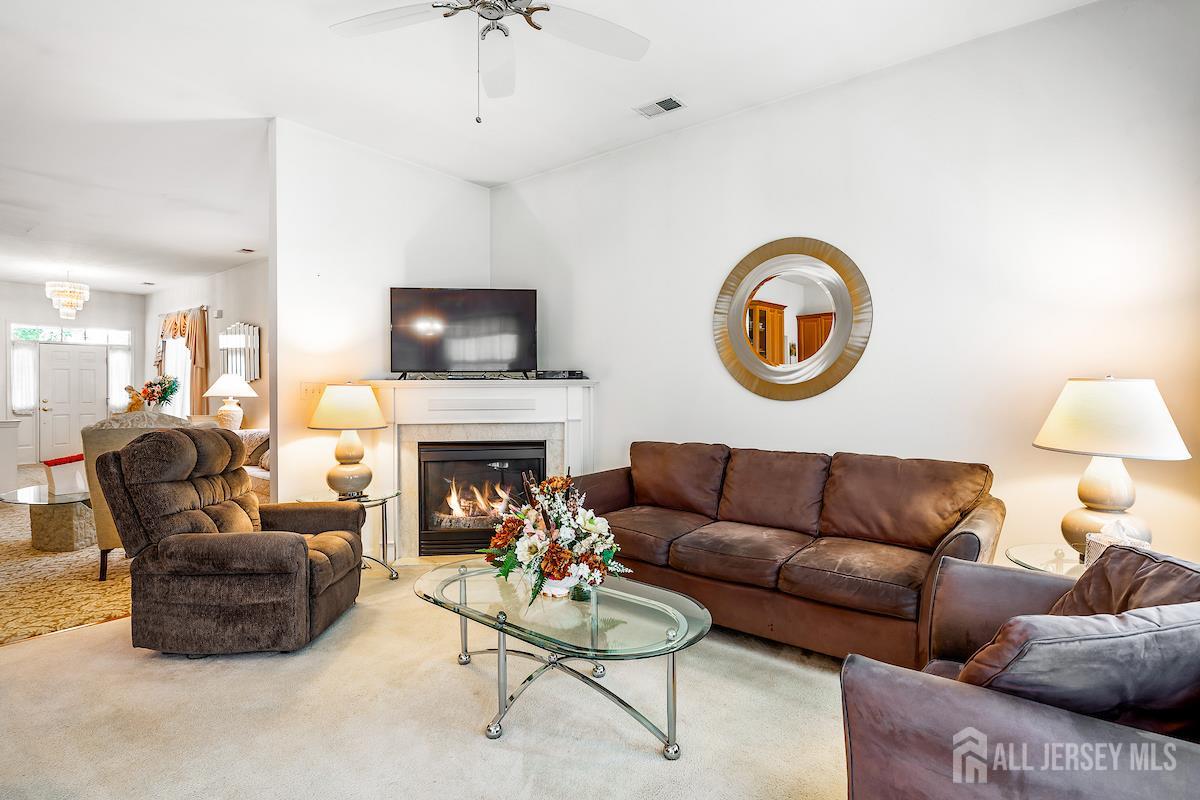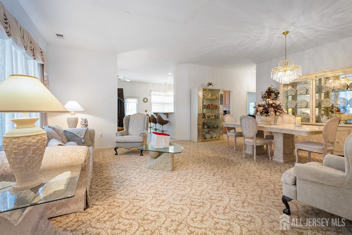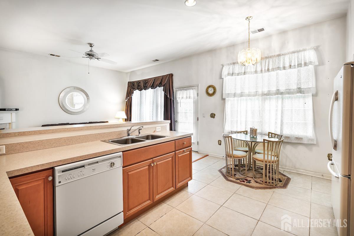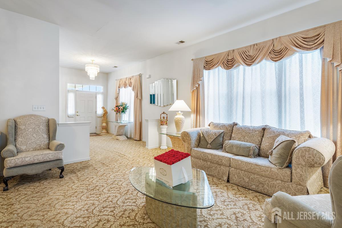Elegant Del Mar ranch home in the desirable 55+ Adult Community of Spinnaker Pointe in the Parlin section of Sayreville. Original homeowners since 2005 this 3 bedroom 2 full bath home has been meticulously maintained. This spacious 2117' home offers a welcoming grand foyer with double coat closet, large formal dining room, living room, family room with gas fireplace. Open concept eat-in kitchen with breakfast bar, oak cabinetry, walk-in pantry, tile flooring, recessed lighting, glass display cabinet, gas range, dishwasher & refrigerator. Patio with electric awning to allow enjoyment of the serene wooded setting. Primary bedroom has 2 walk-in closets and ensuite full bathroom with double sinks, jetted tub and walk-in shower. Laundry room with washer/dryer included. 2 car garage with stairs to attic for storage. Gas forced hot air, Central Air Conditioning,Gas Hot Water heater. Professionally landscaped. The Adult Community offers a clubhouse with card/game room, conference room with kitchen, pool, shuffleboard & other activities. Conveniently located near the Morgan Marina, shopping, parks and all major transportation. This pristine home could be yours - call today! Showings begin Sat 9/27 at 12pm