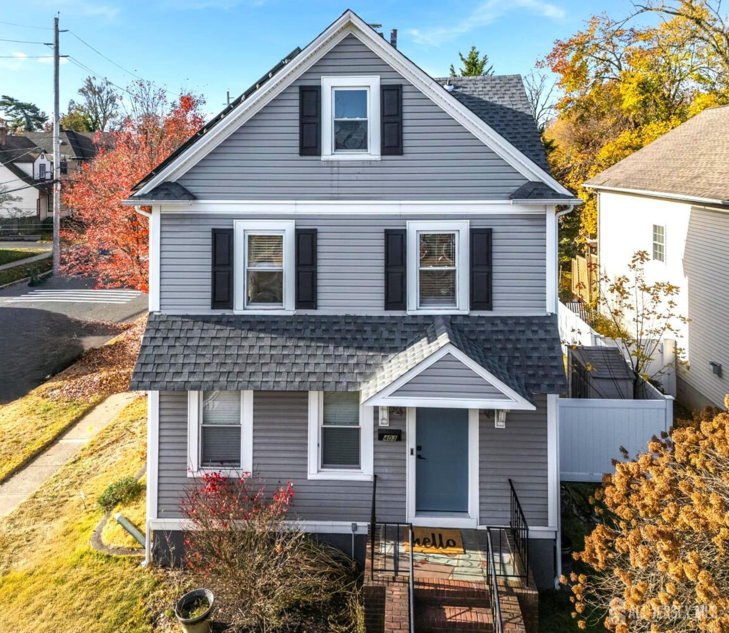 Welcome to a home filled with light, comfort, and smart updates. From the moment you step through the new front door, the flexible layout and warm natural light create a sense of space that feels instantly inviting. The main level, with its high ceilings, is bright and welcoming. A large living room and dining room have been refreshed with new vinyl flooring and updated base molding. The kitchen features a newer refrigerator, granite counters, a large pantry, and a new back door leading to the private fenced yard an ideal setup for everyday living. Upstairs offers two sunny bedrooms and a spacious full bath with convenient second-floor laundry, while the finished attic provides even more living space, including a third bedroom and a cozy sitting area. Major updates in 2021 bring peace of mind, including a new roof, solar panels will save on electric costs (owned, not leased), new HVAC and furnace, upgraded electric panel with updated wiring, new exterior doors, EV car charger, and refreshed flooring. Classic curb appeal enhances the front of the home, and in the back you'll enjoy a custom-made pergola over the paver patio and a vinyl-fenced yard that creates a cozy spot to relax or entertain.with off street parking for two cars. A home with this many improvements, space, and potential doesn't come along often especially this close to town, schools, and the train. Don't miss the chance to make this beautifully updated home your own.