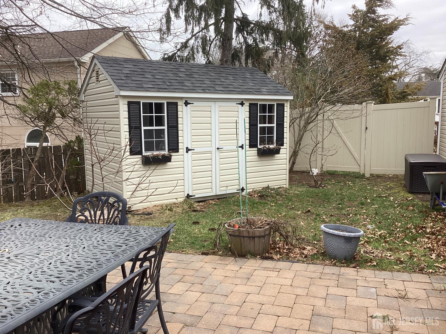 Exterior Features: Lawn Sprinklers, Patio, Fencing/Wall, Storage Shed, Yard