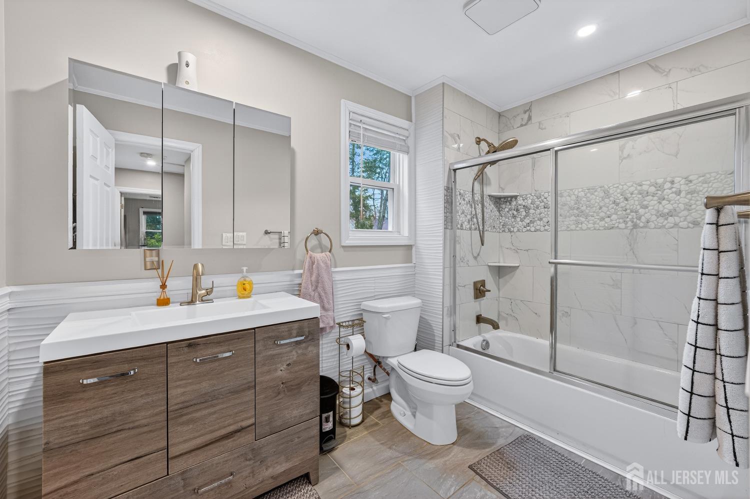 THIS IS IT! The obvious choice in Spotswood. Move-in ready, this recently, fully renovated ranch is set on a quiet street and offers the peace of mind today's buyers are looking for. This home is ideal for the multi-level downsizers and anyone seeking the ease of true one-floor livingwithout sacrificing space, style, or comfort. Major systems have been updated in recent years, including newer roof, siding, insulation, electrical, plumbing, HVAC, water heater, lighting, kitchen, baths, flooring, and sheetrocksimply unpack and enjoy. Sun-filled, open-concept living and dining areas feature cathedral ceilings and recessed lighting, ideal for everyday living and entertaining. The modern kitchen includes stainless steel appliances, granite countertops, and shaker cabinetry with soft-close drawers. Three comfortable bedrooms provide ample storage, while two brand-new full baths showcase stylish finishes. Additional highlights include main-level laundry, a welcoming front porch, a large level yard with room to relax or play, a newly paved driveway with generous parking, and a full unfinished basement offering storage or future potential for partial finishing. Conveniently located near Spotswood and Middlesex county parks. Shopping, major highways, train stations ( NEW BRUNSWICK), and buses, this home delivers both tranquility and accessibility, making it the obvious choice for buyers seeking a true move-in-ready home. Sky,Twilight and green grass photos enhanced. The property is not in a flood zone.