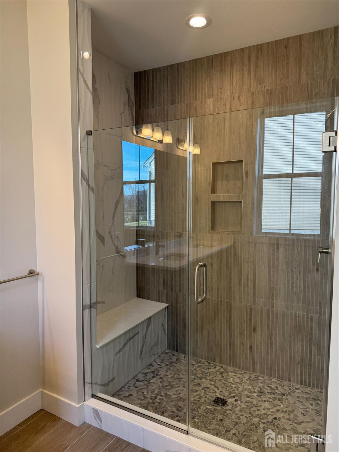 Brand new 5-bedroom, 3-full-bath home (Florham Modern Farmhouse) located in the highly sought-after Regency at Manalapan, a premier resort-style Active 55+ community built by Toll Brothers. The home sits directly across from the Clubhouse, offering exceptionally easy access. Thoughtfully designed with a custom interior and the highest level of upgrades throughout, this residence features an open-concept layout that blends elegance with functionality. Highlights include soaring 20-foot ceilings in the great room, wide-plank engineered hardwood flooring, and expansive windows that flood the space with natural light. The gourmet kitchen is a chef's dream, boasting marble countertops, designer custom cabinetry, a large peninsula with countertop seating, a top-of-the-line JennAir 36" stainless steel range, plus a bonus JennAir double oven and microwave. The adjoining dining and living areas create an ideal space for entertaining or enjoying everyday comfort. The luxurious first-floor primary suite offers a private retreat with a spa-inspired bath, oversized shower, dual vanities, and an expanded walk-in closet. Two additional bedrooms on the first floor provide ample space for guests or a home office. A second full bathroom and a well-appointed laundry room are also conveniently located on this level. Sliding doors from the great room open to a beautiful covered patio for outdoor living. Upstairs, an open-concept loft/bonus area serves as an additional living space. This floor also includes two more bedrooms and a third full custom bathroom. A spacious walk-in attic with windows offers excellent potential, as many homeowners have finished it into a versatile multipurpose room. The entire home is equipped with an indoor and outdoor stereo sound system. Beyond the home itself, residents of Regency at Manalapan enjoy a world-class lifestyle with resort-style amenities, including a state-of-the-art clubhouse, fitness center, outdoor pool, pickleball and tennis courts, walking trails, a dog park, and a vibrant social calendar designed exclusively for active adults. This stunning home combines new-construction luxury with the unmatched lifestyle of Regency at Manalapanan opportunity not to be missed!