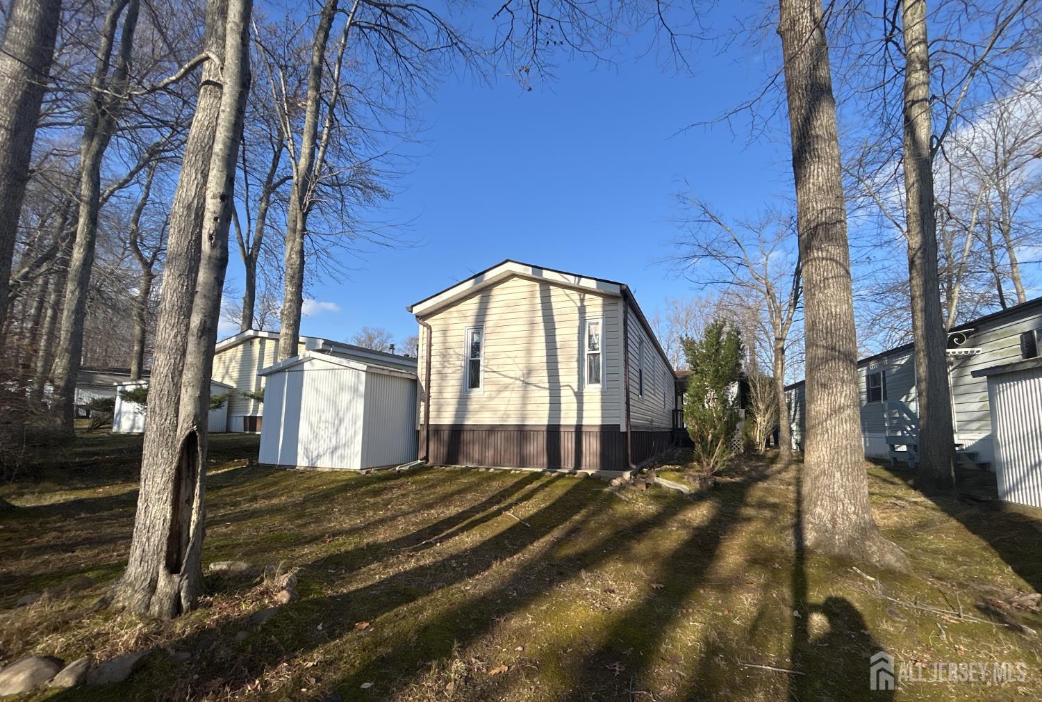 This lovely two-bedroom mobile home is nestled on a desirable lot backing to woods. It is located in Deerbrook Village, which provides carefree living and community amenities including a clubhouse, outdoor pool, playgrounds, basketball, pickleball, and tennis courts. The large two-tier covered porch welcomes you to find the comfortable layout of this well-maintained home with generously sized rooms. First, you will find a spacious living room which flows effortlessly to the open eat-in kitchen. The kitchen has a bay window, stainless steel appliances, breakfast bar, ample cabinet space, and pantry with custom shelving. There are two bedrooms, full bathroom, laundry, 2-car-wide concrete driveway, large storage shed and more.