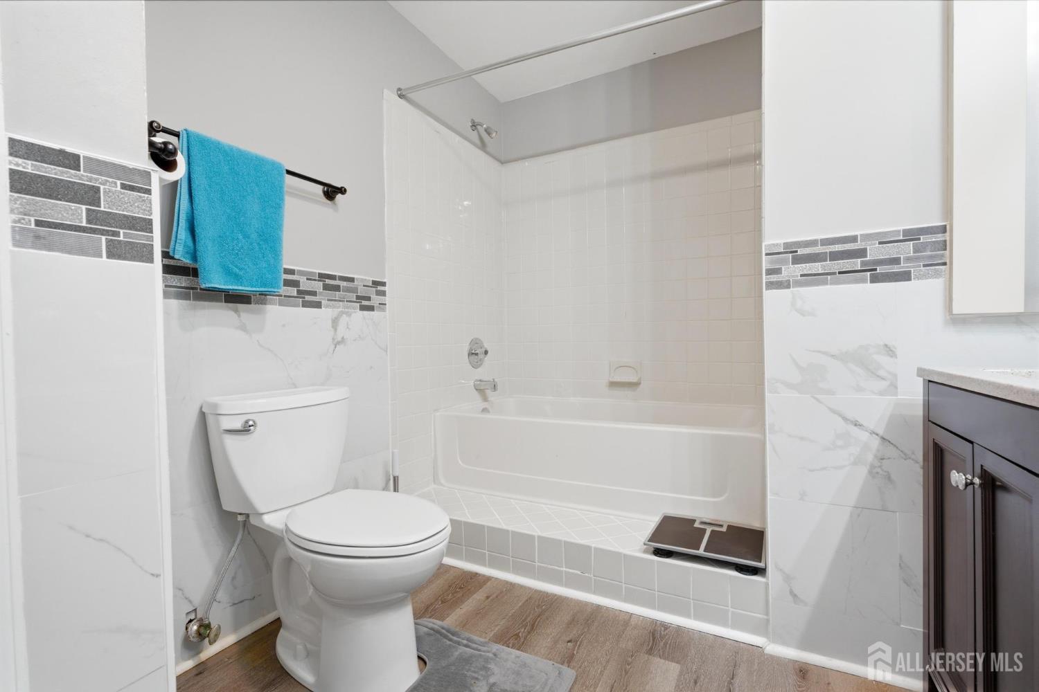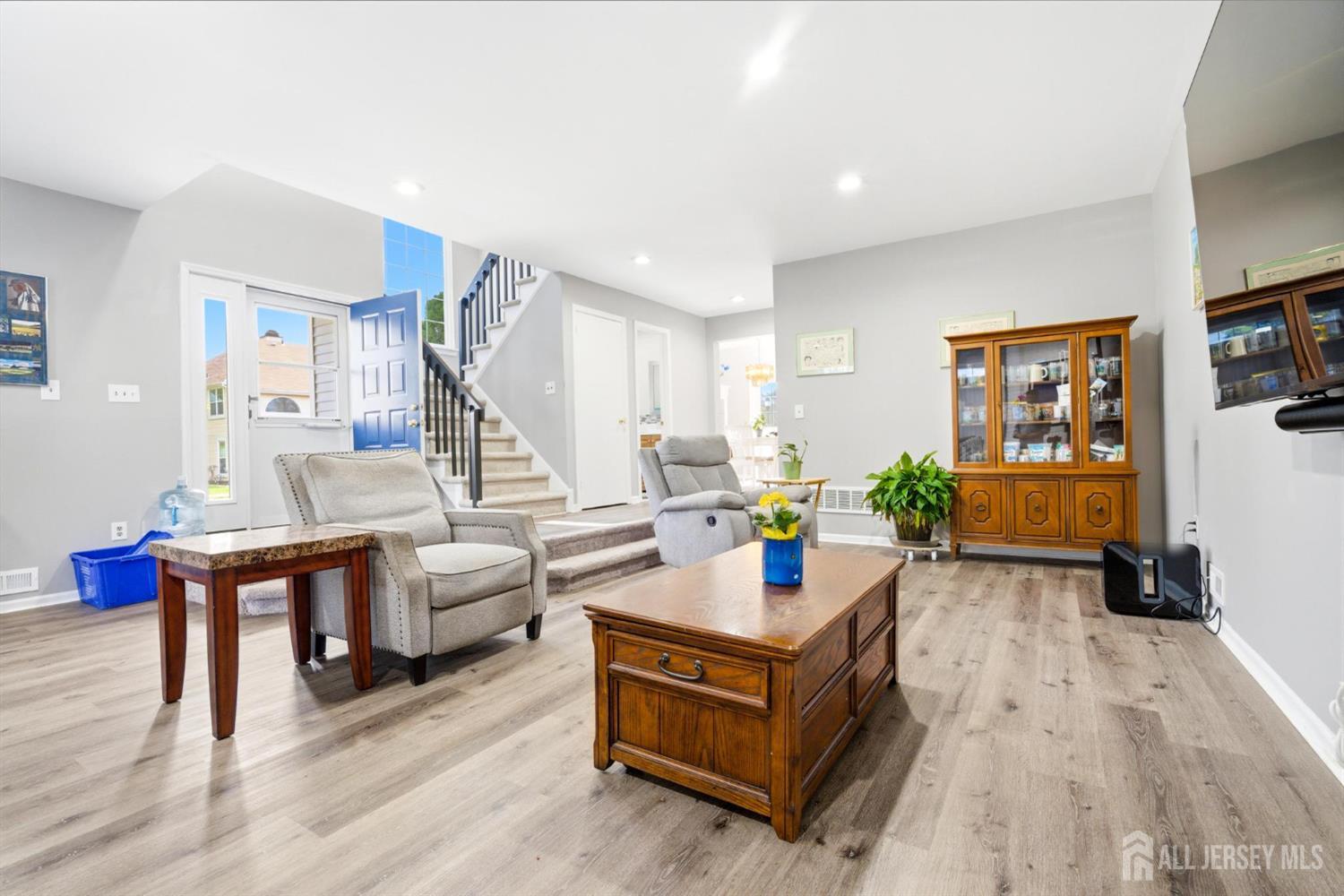 This recently updated, spacious three-bedroom townhome is conveniently located and offers a wonderful open space concept and relaxed, comfortable living. The spacious living room with large windows and the sliding doors in the kitchen and dining room bathe the downstairs in natural light, creating an upbeat atmosphere. A gas fireplace is the focal point of the large, comfortable living room/dining room. The open layout is perfect for meal times together or entertaining. The downstairs layout is flexible; the large great room can be used as a dining room/living room and the dining room can be used as a den. Everything is this home has been recently updated including major items such as the kitchen and baths. The home has new roof, new HVAC and water heater, new windows, and new insulated vinyl siding. The first-floor windows have a protective tint. This is the definition of care free living! The kitchen is equipped with beautiful cabinets, beautiful countertops and stainless-steel appliances providing a sleek, modern look. Upstairs, you'll find three generously sized bedrooms. The primary bedroom features a large closet with stairs to a spacious attic that's great for storage. This well-maintained community boasts beautiful landscaping, a great pool, tennis courts and playground and is close to NYC bus lines, Kennedy Park, shopping and schools. This is a wonderful community and every major feature in the home is new including the kitchen, roof, furnace, AC, windows, water heater and vinyl siding. brand new washer and dryer. And new floors that have warranty. Rare end unit-very desirable... largest home in the community. Also brand new front door and back slider.