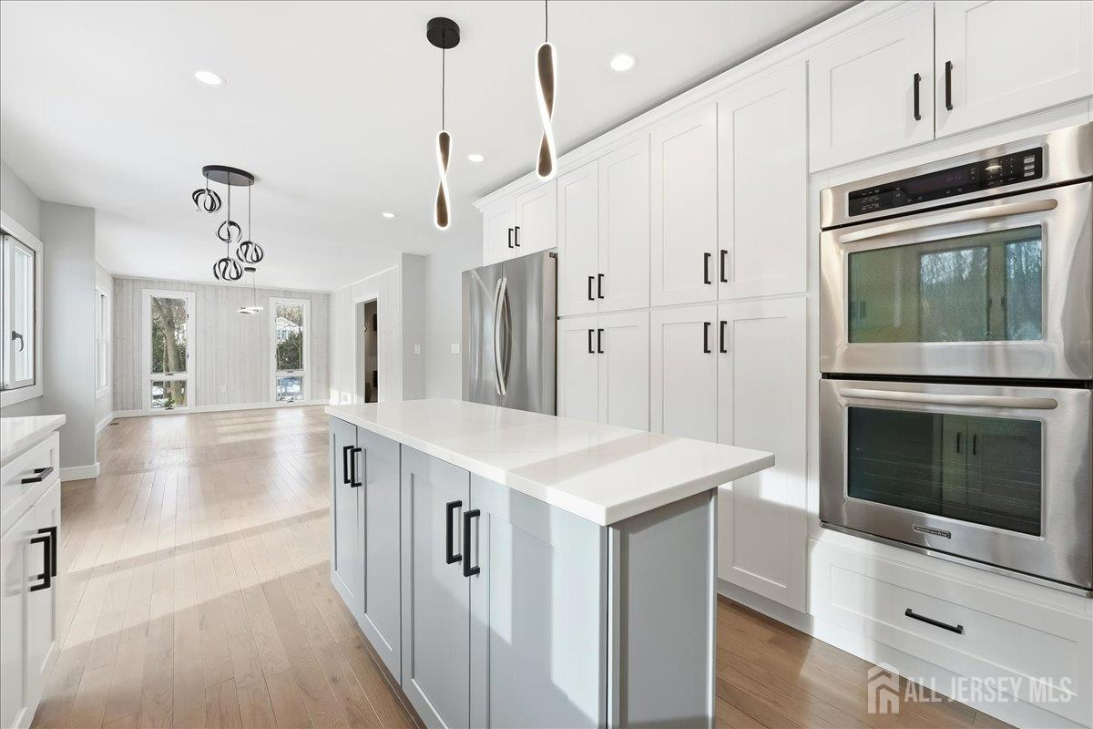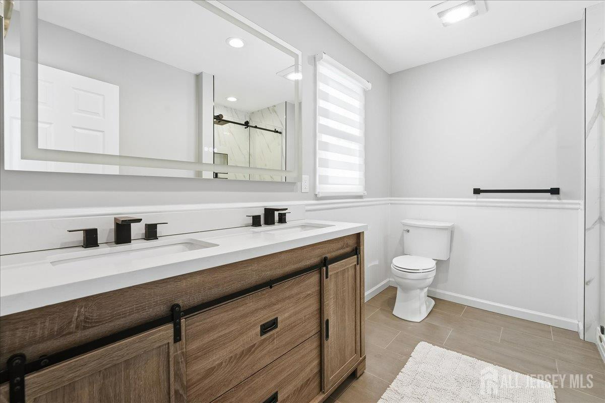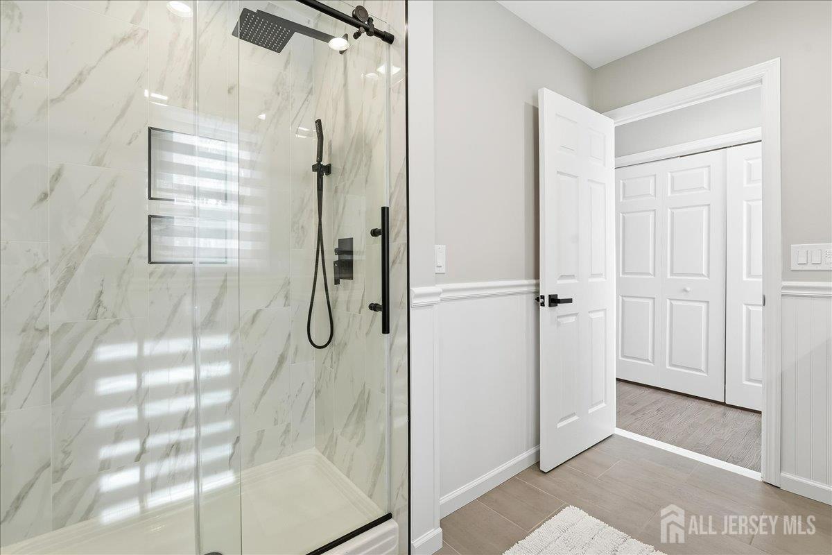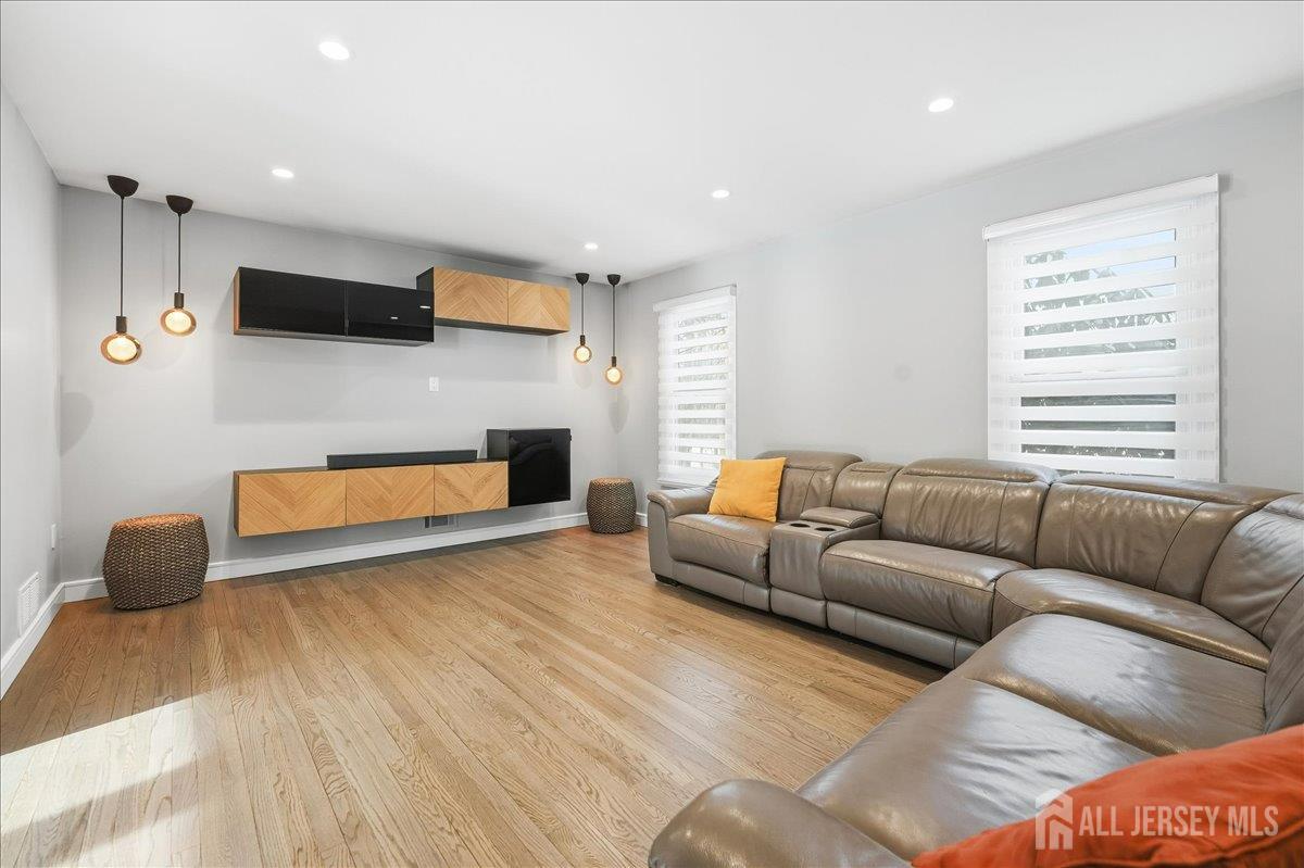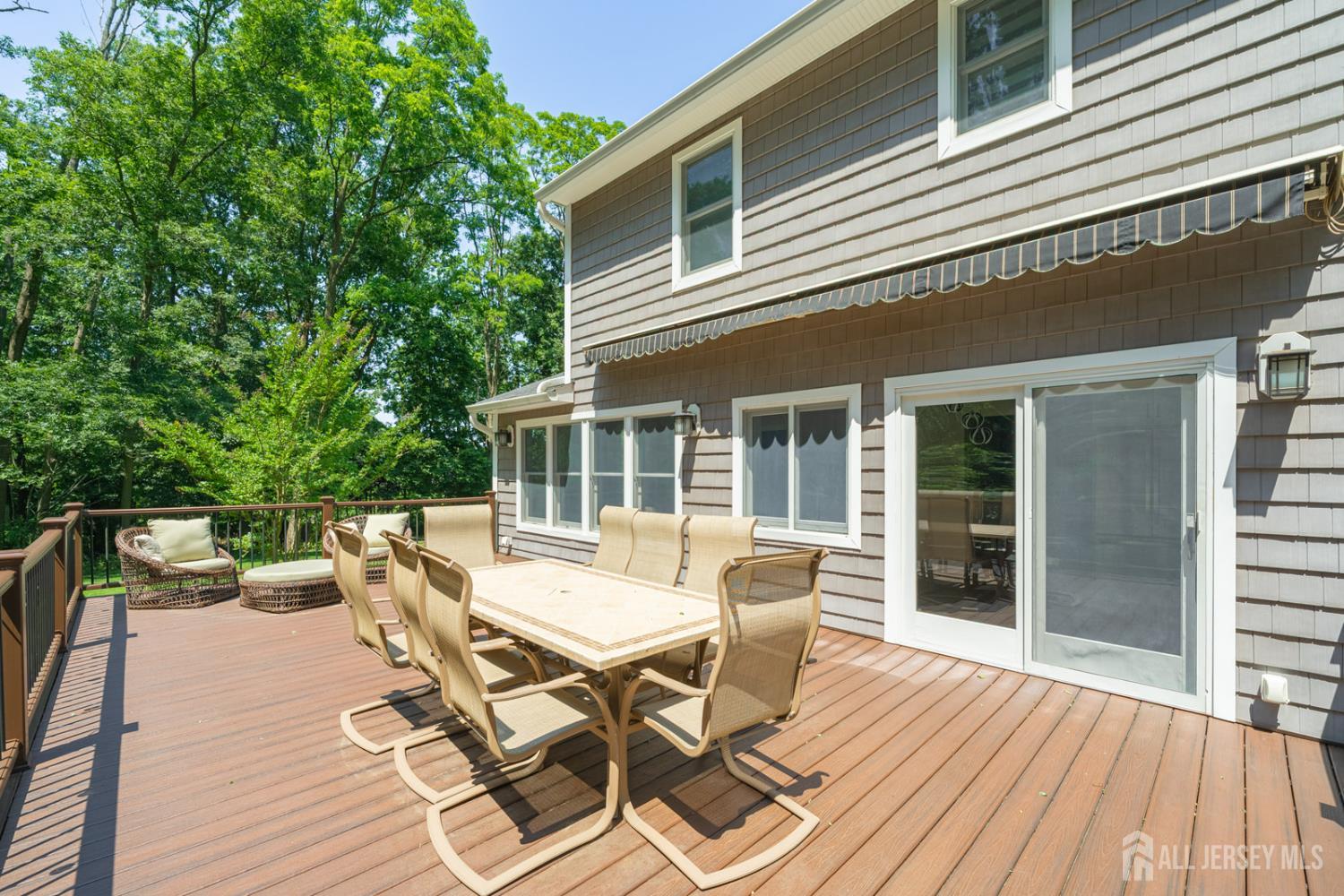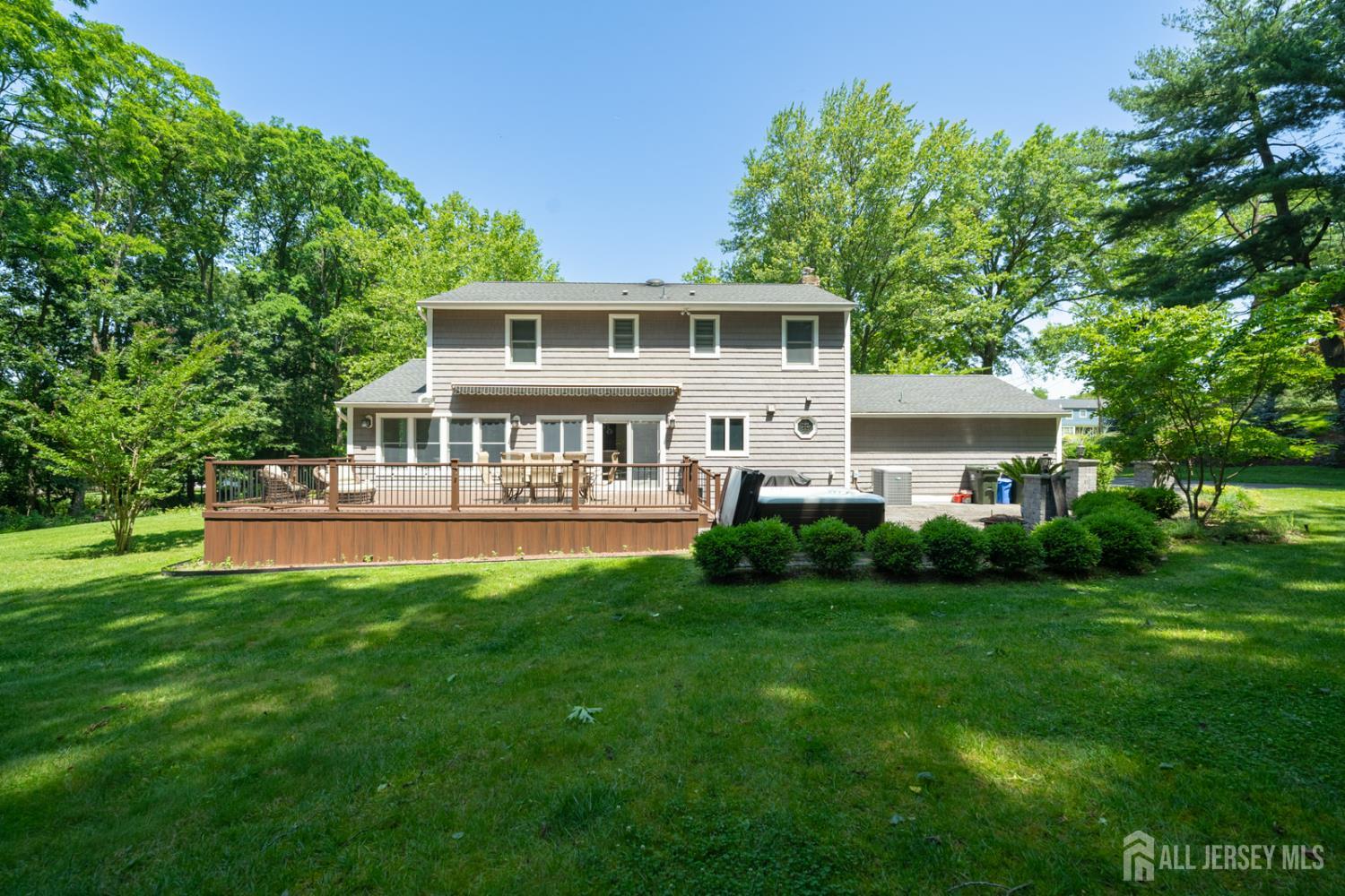Tucked away on a quiet cul-de-sac in Holmdel's desirable Heyward Hills, this fully renovated Colonial seamlessly blends classic charm with modern updates. Thoughtfully improved in 2023, the home offers a bright, functional layout ideal for both everyday living and entertaining. The main level features a welcoming foyer, spacious living room, cozy sitting room with gas fireplace, and a mudroom with powder room connecting to the two-car garage. The custom eat-in kitchen is outfitted with a center island and stainless steel appliances and opens to a Trex deck with retractable awning, creating an easy indoor-outdoor flow. The lower patio includes a hot tub, grilling area, and fire pit overlooking a private backyard. Upstairs are four generously sized bedrooms, including a primary suite with a renovated en-suite bath and walk-in shower, along with an updated hall bath. The recently finished full basement adds additional living space, ideal for a recreation room or flex use, and includes a dedicated laundry and utility area. Hot water heater (2018), HVAC (2014), Carrier smart thermostat, Lutron Caseta dimmers, underground sprinkler system, Ultra Sump III with battery backup. The home is conveniently located near Bell Works, Holmdel Park, historic farms, PNC Bank Arts Center, the New Jersey Vietnam Veterans Memorial, the Jersey Shore, NYC transportation, and local shopping. This home and surrounding area are served by public water and public sewer, not common throughout the township. Please note, the total square footage provided includes the basement.