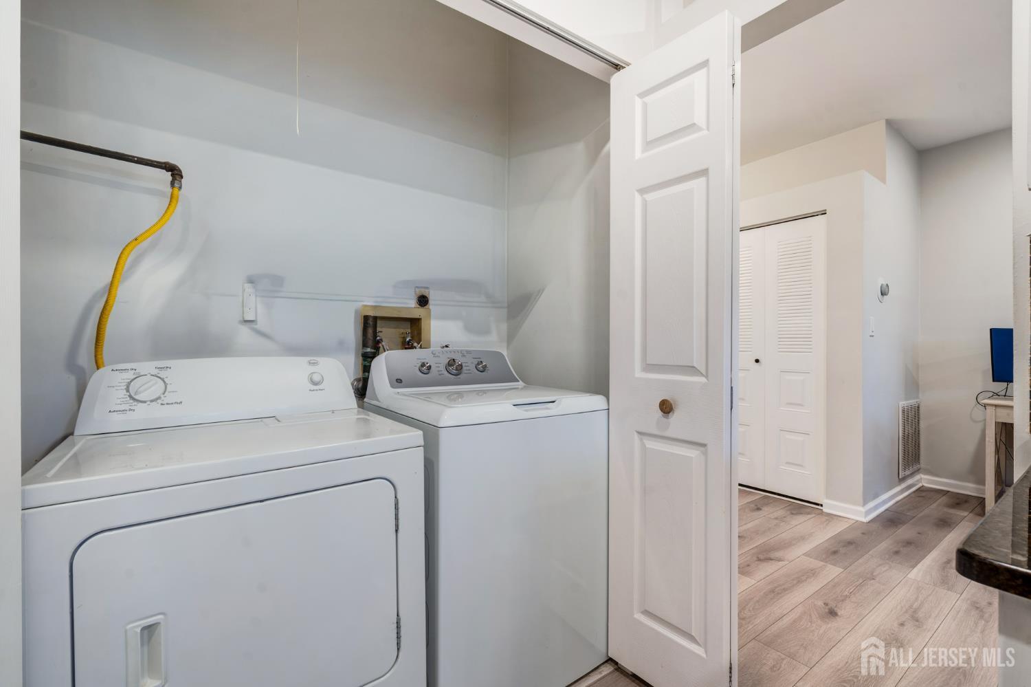This bright and modern 2 bed, 2 bath first-floor condo features recessed lighting throughout, waterproof laminate floors (2022), a brand-new HVAC/furnace (2024), custom primary closet, ceiling fans in both bedrooms, smart thermostat, and a new washer. Enjoy resort-style amenities including a gym, pool, tennis and pickle-ball courts, plus one assigned parking spot and abundant visitor parking. Ideally located with quick access to NYC transportation, houses of worship, parks, and major shopping. Move-in ready and beautifully updated!