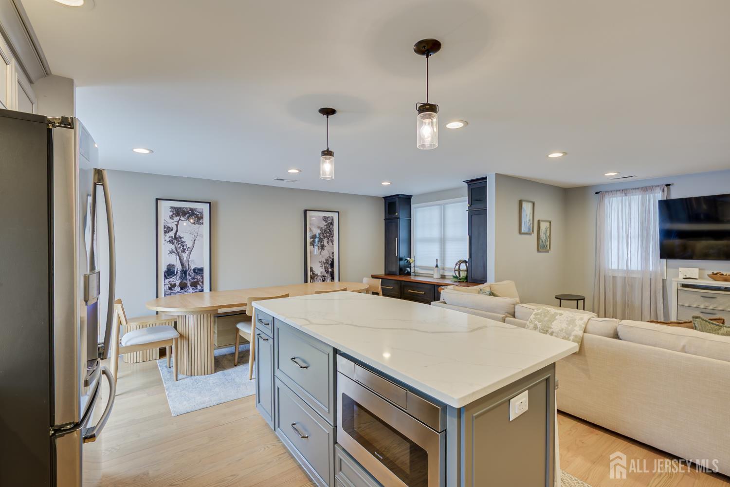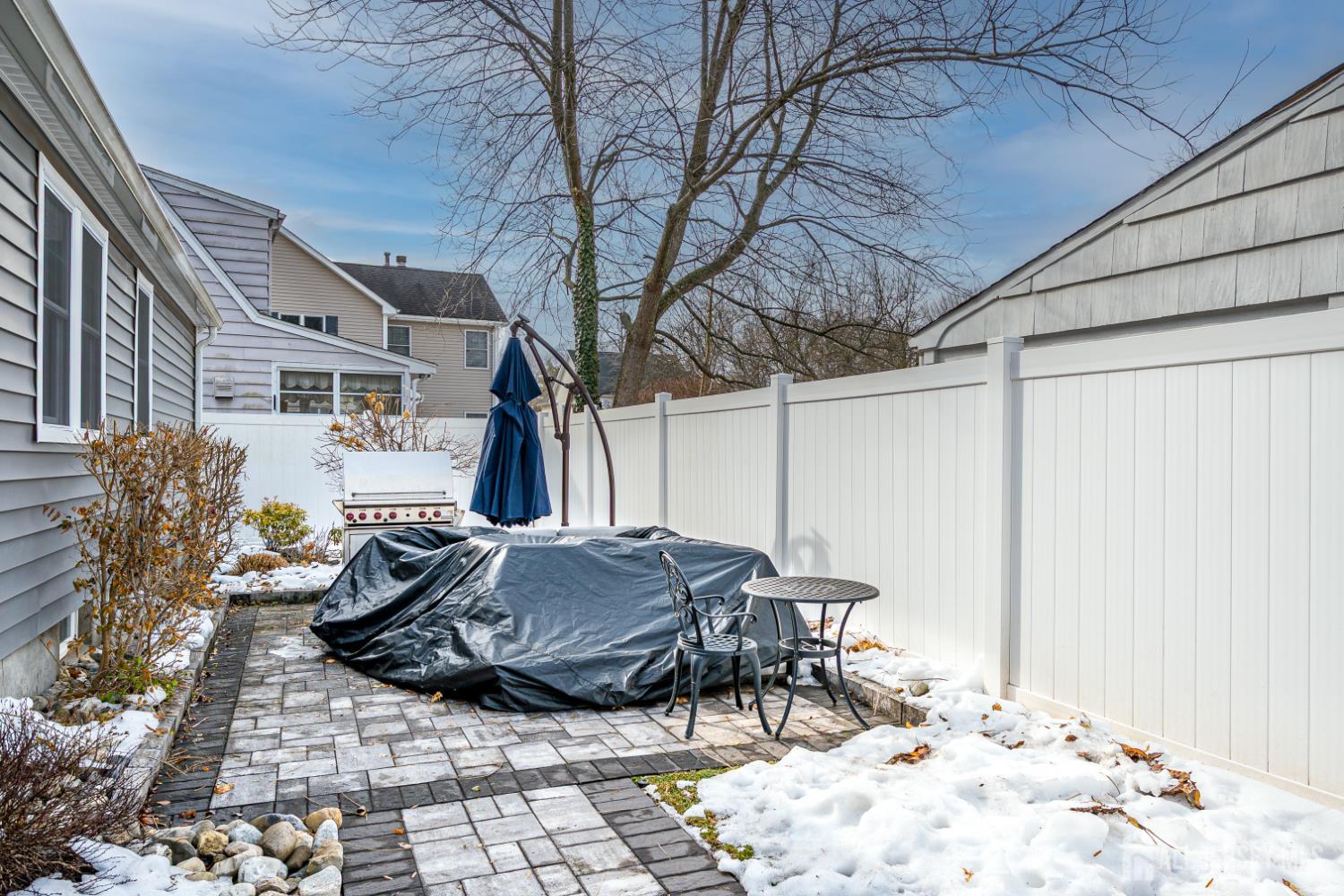 Whether you are looking for your first home or even downsizing this home works. Totally remodeled in 2020 from top to bottom. This ranch has an open floor plan with living room, large dining area and kitchen with stainless steel appliances, center island and quartz countertops. Features 3 bedrooms, 2 full baths, master bedroom with private bath. Partially finished basement with laundry and utility room. 1 car garage. Paver patio with fencing for private outdoor dining. Front walkway bluestones are being replaced. Showings begin on Friday 2/20/26.