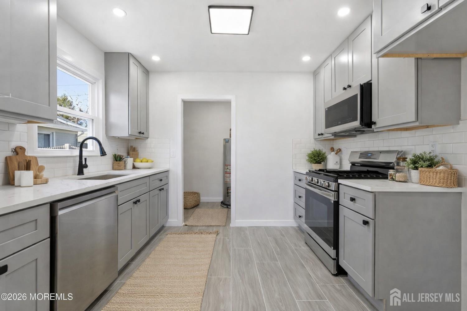 Move right into this beautifully renovated 3 bedroom 1.5 bath Ranch offering stylish upgrades and easy one level living. This home features gleaming hardwood floors, a brand new Kitchen, updated bathrooms and all new doors and windows throughout. The spacious living room boasts a stunning cathedral ceiling, creating an open and airy fell perfect for everyday living and entertaining. Enjoy the comfort of central air and the conveninece of the fully fenced backyard, ideal for relaxing, adding a pool, gardening or pets. The patio paver driveway and walkway add to the home's curb appeal and outdoor enjoyment. Located just two blocks from the waterfront and park. This home offers the perfect comination of location, comfort, and modern updates. Move right in and enjoy the Summer.