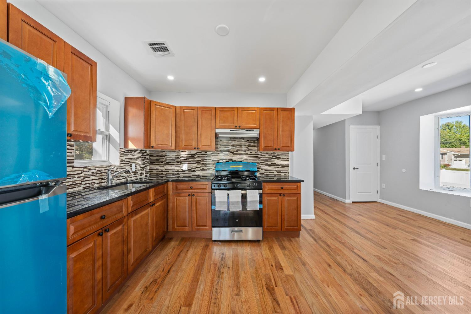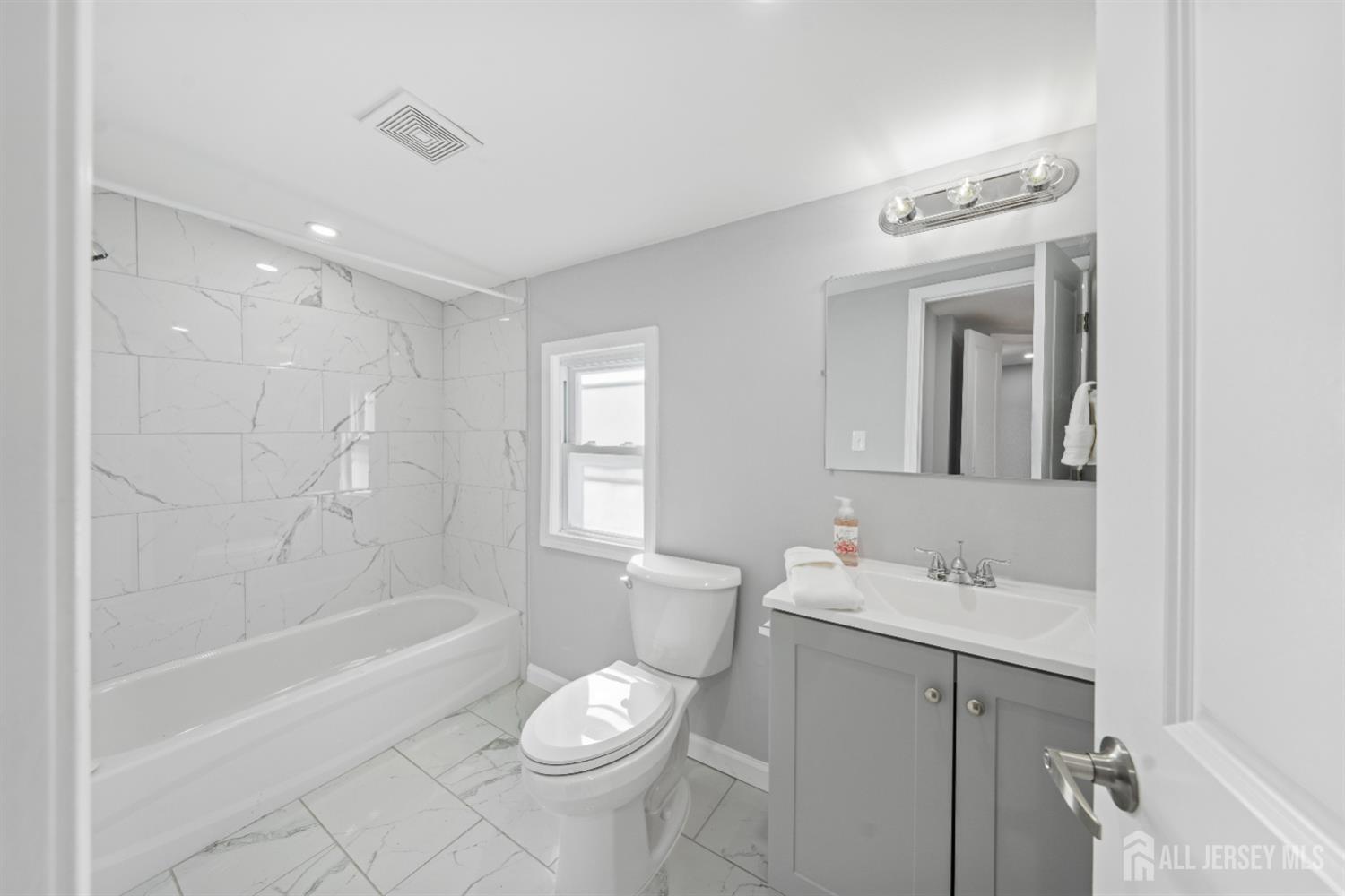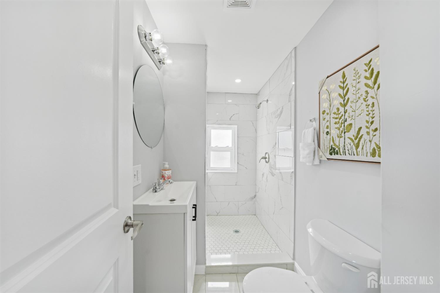 Welcome to this beautifully fully renovated 4-bedroom, 3-bath home in the heart of Woodbridge Township! Every detail has been thoughtfully updated, featuring brand new hardwood floors, modern recessed lighting, and elegant finishes throughout. The kitchen boasts all new cabinetry, tile backsplash, and stainless-steel appliances. Upstairs includes spacious bedrooms with natural light and newly designed bathrooms with marble tile and modern fixtures. The home also offers a finished basement providing ample storage or bonus space. Enjoy outdoor living on the deck, overlooking a large, fenced backyard, perfect for entertaining or relaxing. Conveniently located near Route 1 & 9, the Garden State Parkway, NJ Turnpike, and just minutes away from Woodbridge NJ Transit Station, providing easy access to NYC and major shopping centers.