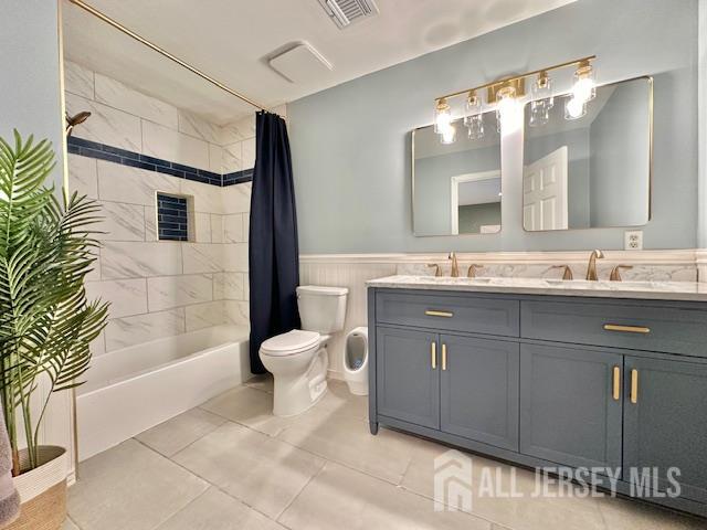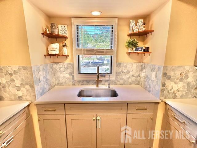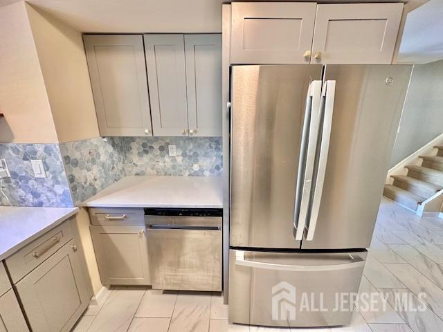 This Beautiful 2 bed 2.5 Bath Townhouse in Holmdel's Fox Chase has a Contemporary Feel with overlook to lower level with open layout*New Kitchen with Quartz Counter,Stainless Steel Appliances,Grey cabinets contrast the Tile Floor perfectly with a hexagon marble Backsplash*Spacious Family Rm with High ceiling,New Accent Wall with Box Molding,Vinyl Floor and the Large rectangular Window baths the room in sunlight*Sliders to Trex Deck facing the privacy of Trees*Upper Level has 2 Large Bedrooms-vinyl floors,recessed lights- each with it's own Bath*Master redone with custom tile,Dual sink quartz Vanity,Brass Fixtures*Plenty of Open Parking for Guests next to open grassy common area*Great Location between rt 35 and 36 and just minutes to GSP and Beaches