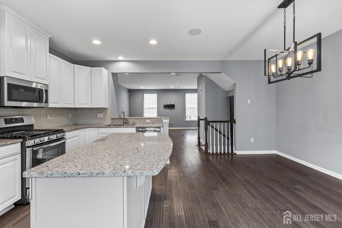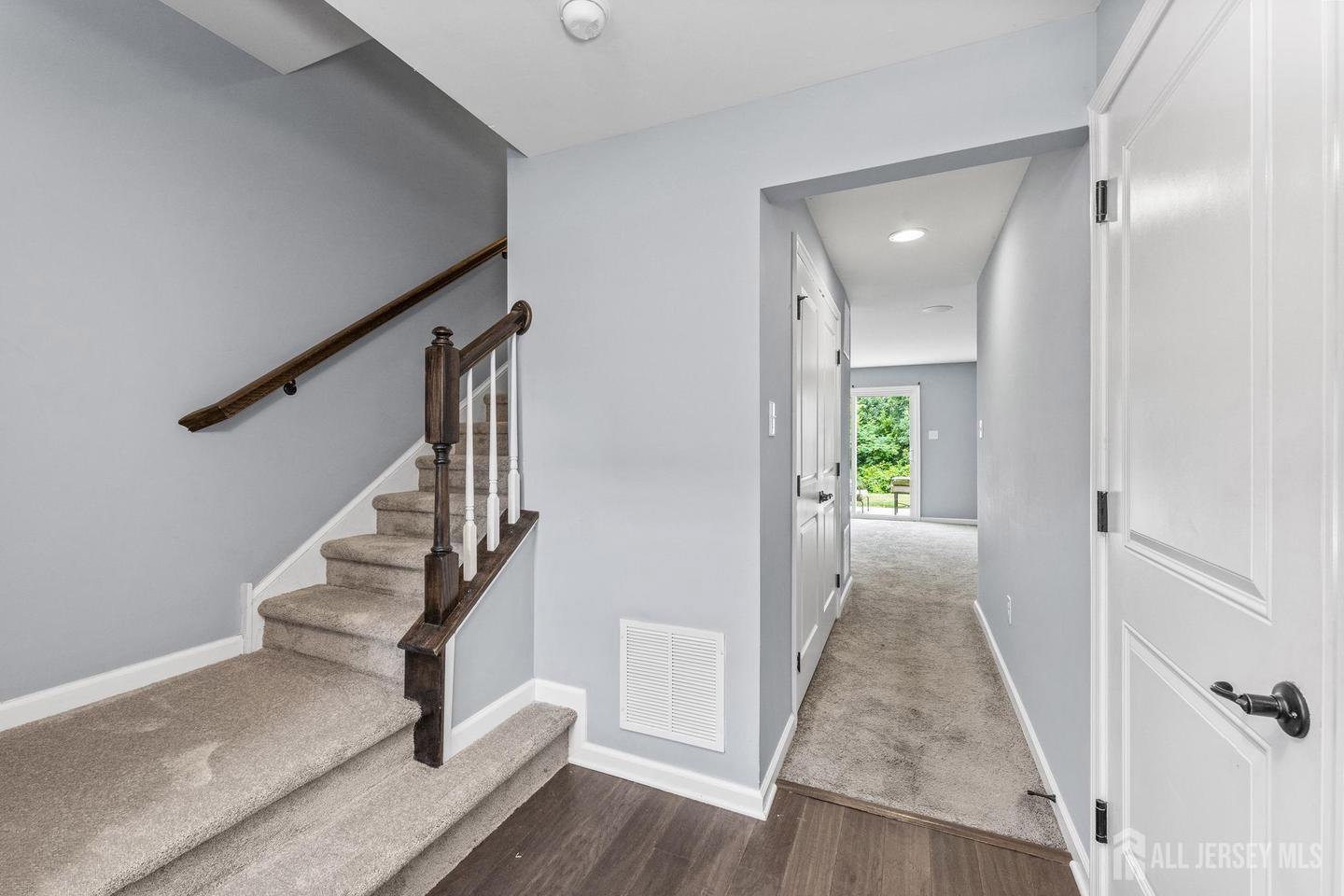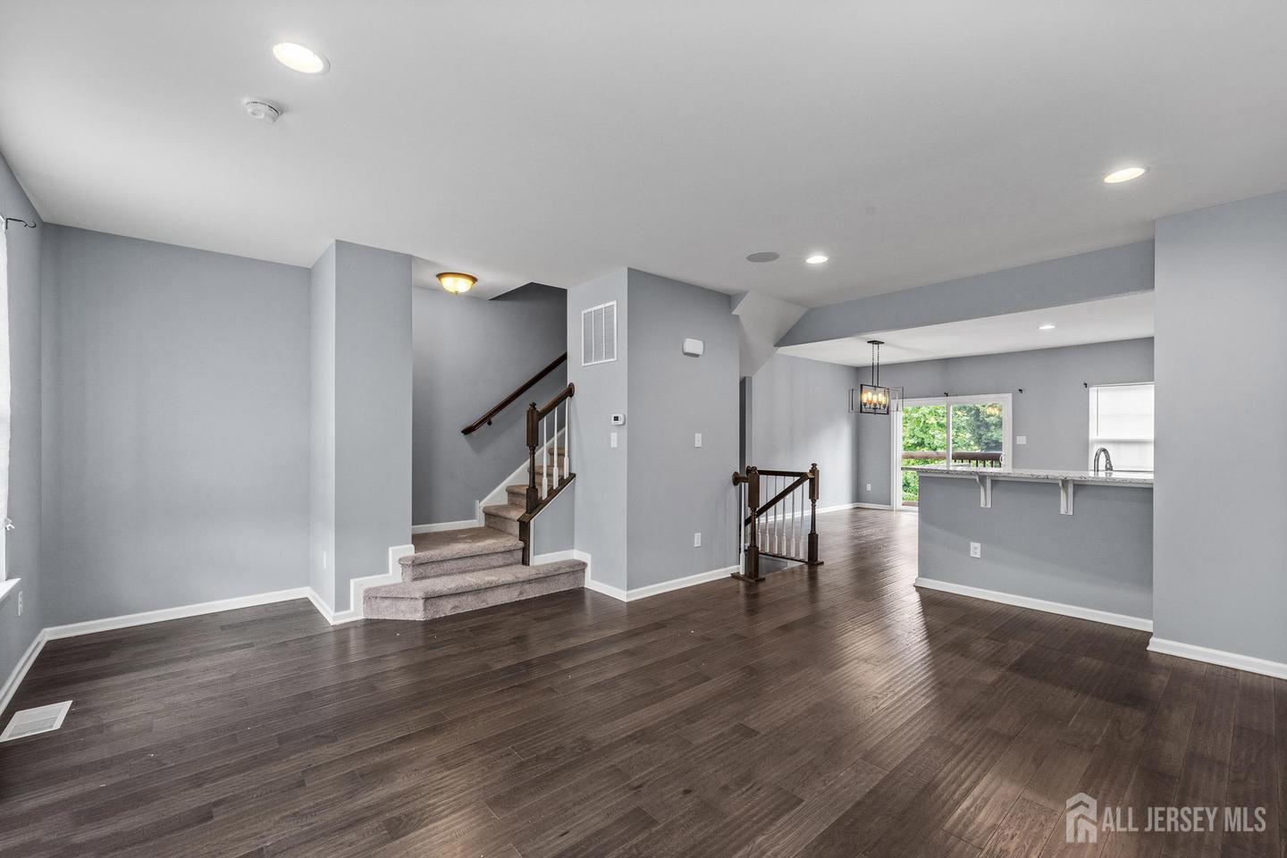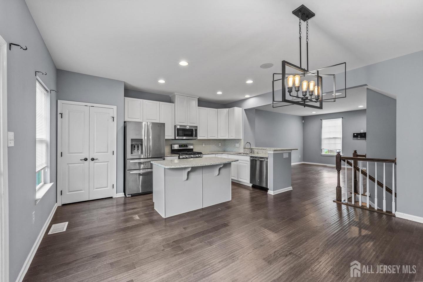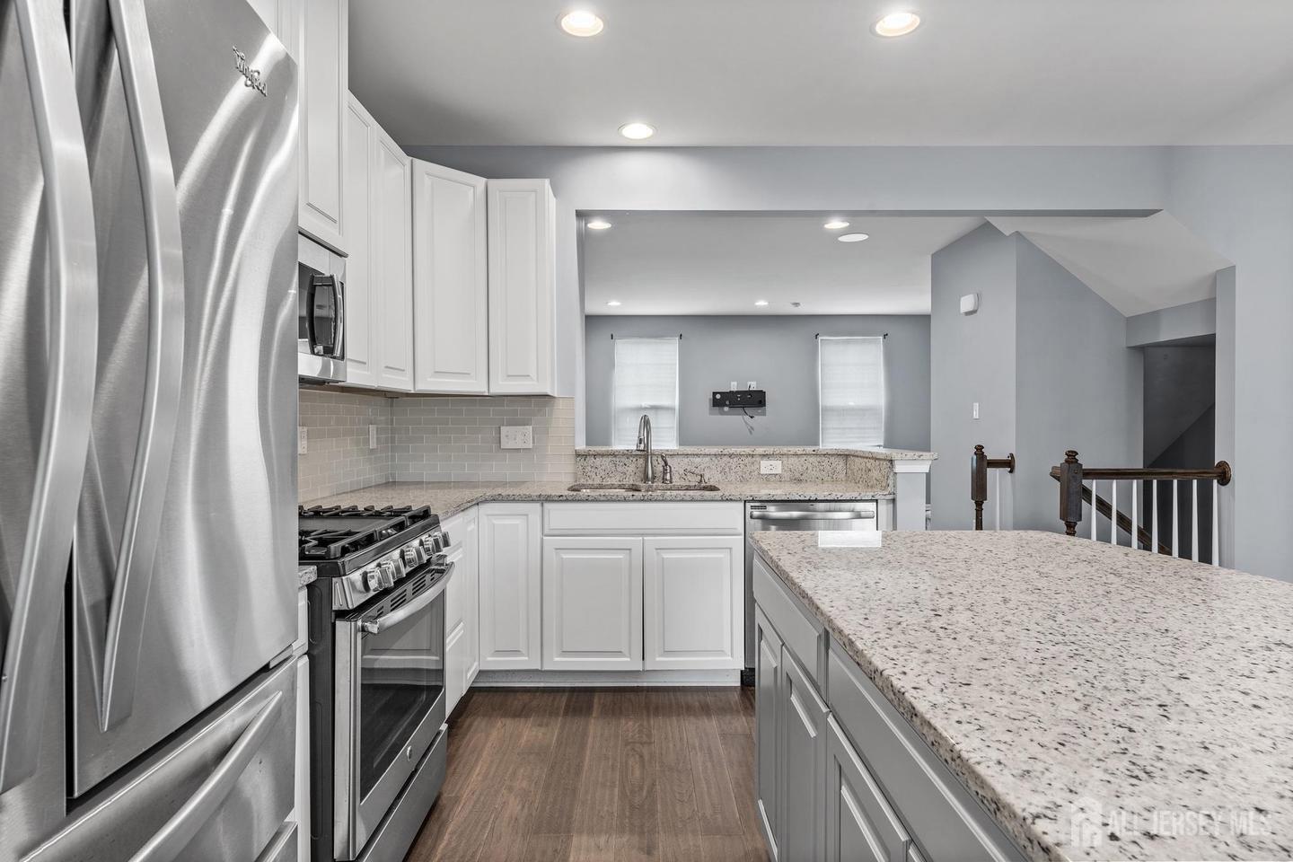 Welcome Home! This beautiful townhome is nestled in the highly sought-after Fox Run community and offers three levels of stylish living. Step inside to find a spacious family room with recessed lighting, a convenient half bath, and sliding glass doors that lead to the backyardperfect for indoor-outdoor living. The second level showcases gleaming wood floors and a stunning eat-in gourmet kitchen featuring granite countertops, abundant cabinetry, formal dining, a pantry closet, center island with bar seating, recessed lighting, and a full stainless steel appliance package. The open layout flows seamlessly into the living room, creating an ideal space for entertaining. Upstairs, the primary suite impresses with a tray ceiling, walkin closet, and a luxurious bath complete with dual sinks and an oversized tile shower. Two additional generously sized bedrooms with neutral carpeting and ample closet space share a full bath. A conveniently located laundry closet completes this level. Additional highlights include an attached one-car garage with interior access, a private patio overlooking natural views, and easy access to major commuting routes, trains, buses, shopping, and dining.