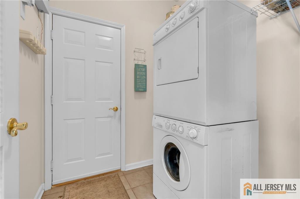 Berkeley Model with French doors to added sunroom. Beautifully maintained home, gleaming hardwood floors in most rooms. Formal Living Room/Dining Room. Large eat in kitchen with and extended center island, pantry closet, refrigerator-2023, disposal "as is". Primary bedroom has a tray ceiling, walk in closets, and a full bath with double sinks, and soaking tub. Second bedroom/office with full bath nearby, with built in linen closet. Stackable washer/dryer in Laundry Room. Rear paver patio 9x8. Water Heater March 2024