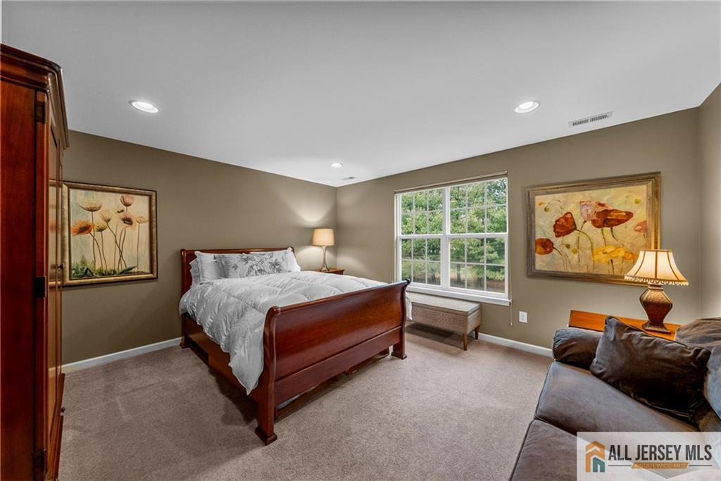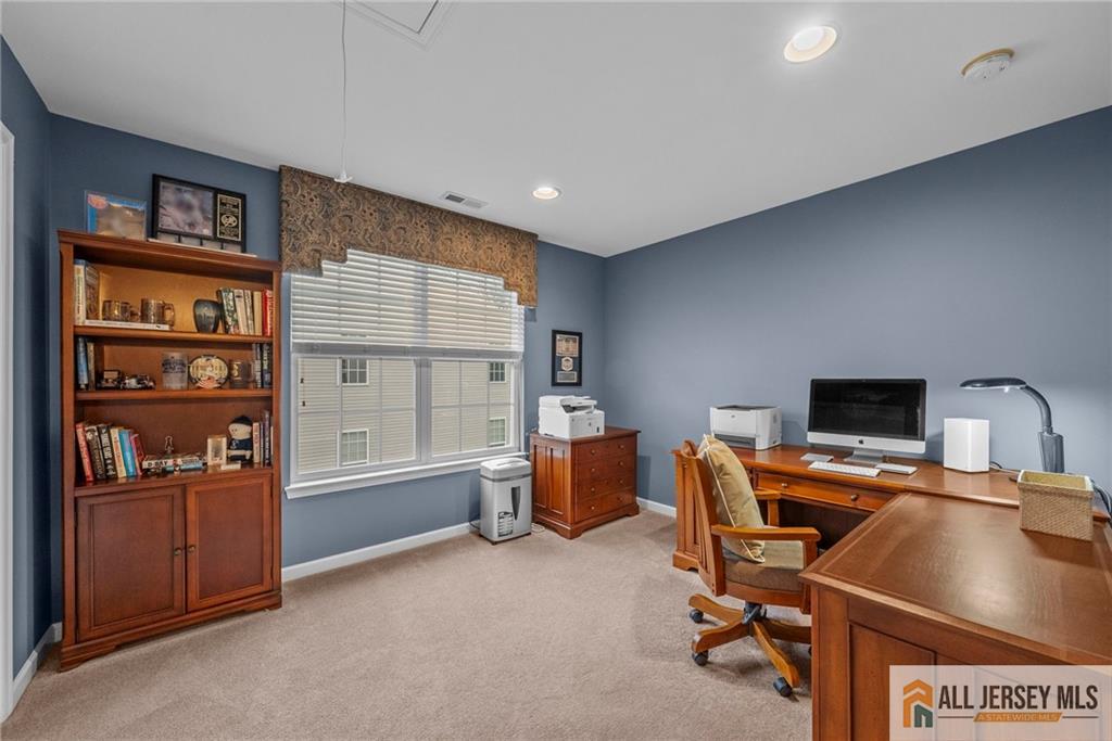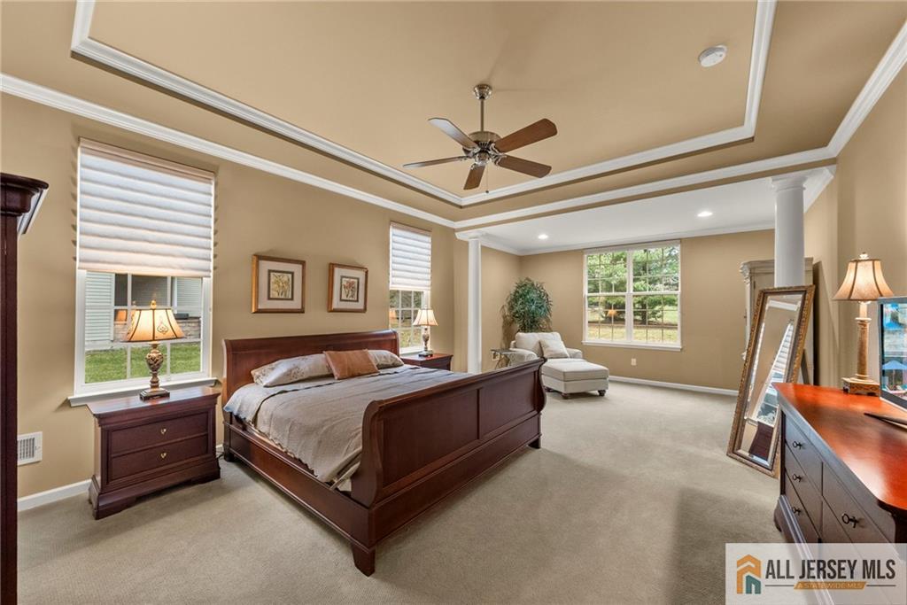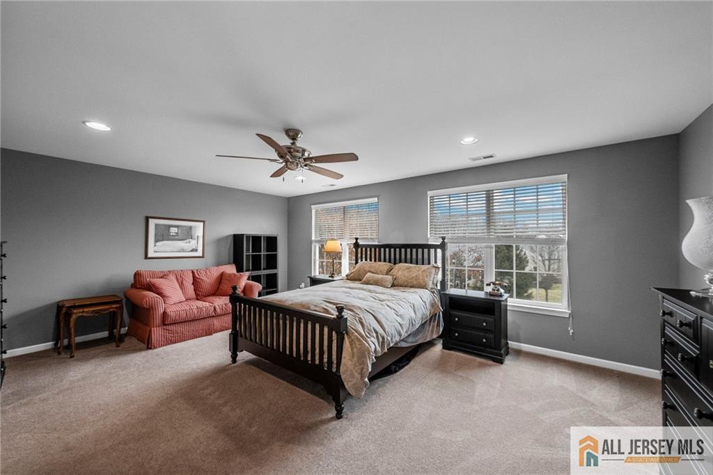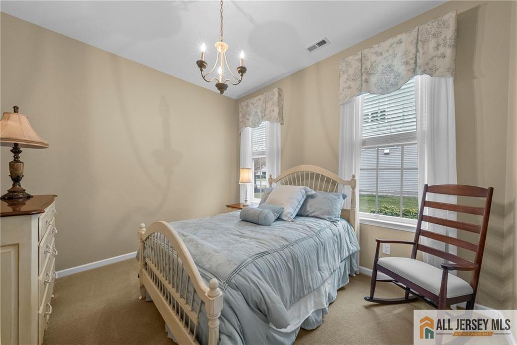 Sunny Huntley model with premium location and more. This 4-bedroom, 3-bath home in sought-after Princeton Manor, an active adult community, is located in the heart of Central Jersey. The home features tall ceilings and a bright, open layout with many upgrades and expansions. The main level offers a formal living room, formal dining, large family/great room, gourmet eat-in kitchen, primary bedroom, primary bath, a bedroom/office and a second full bath. On the second level you will find a spacious loft, 2-bedrooms plus an office and a full bath. Relax on your 2-tier paver patio with a tree-lined yard. Enjoy convenient living with access to a clubhouse, pool, numerous amenities and activities. Conveniently located near entertainment, shopping, major roadways and minutes from Princeton.