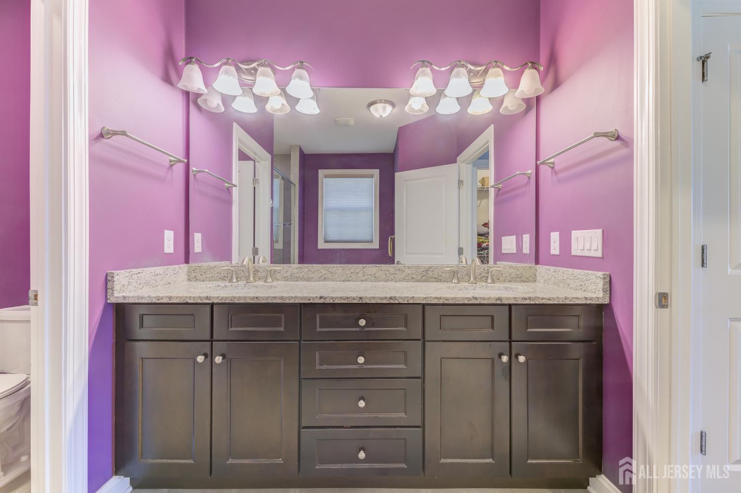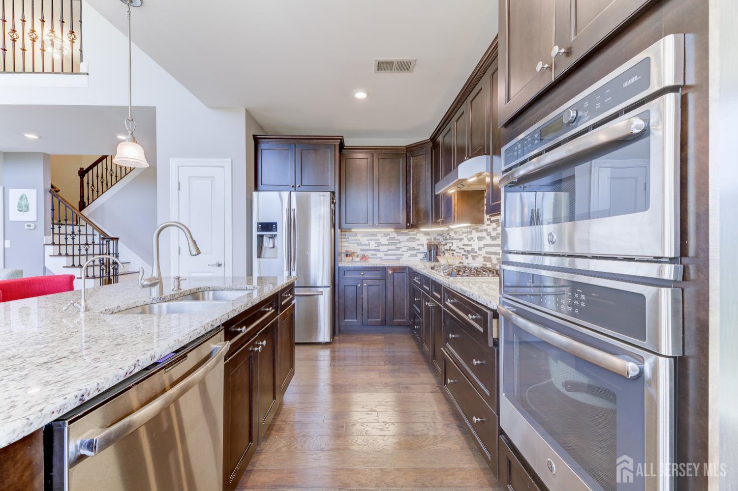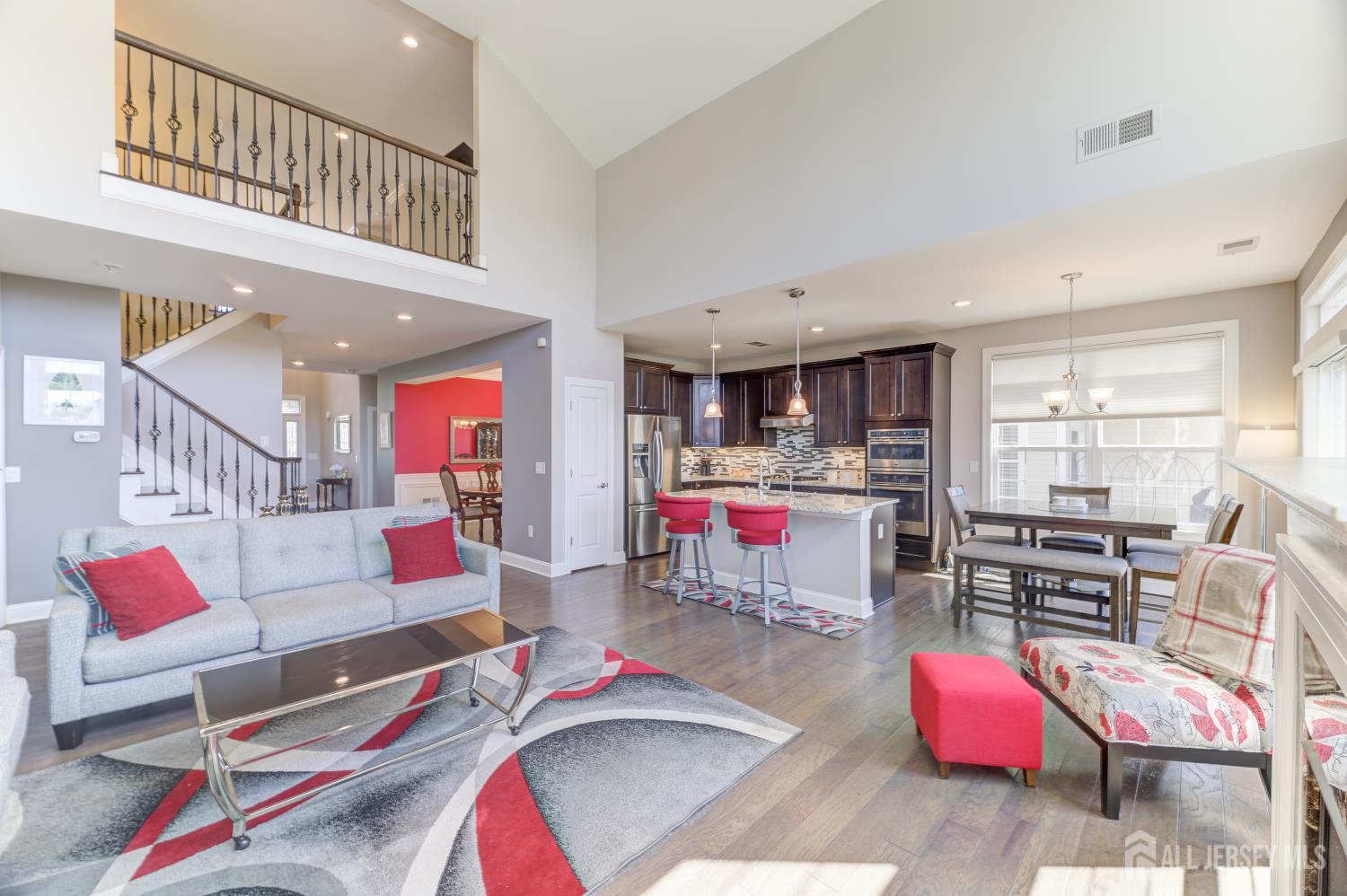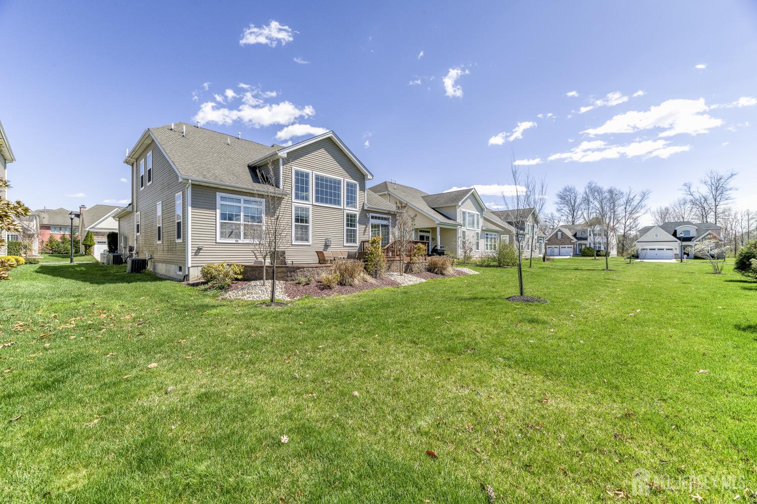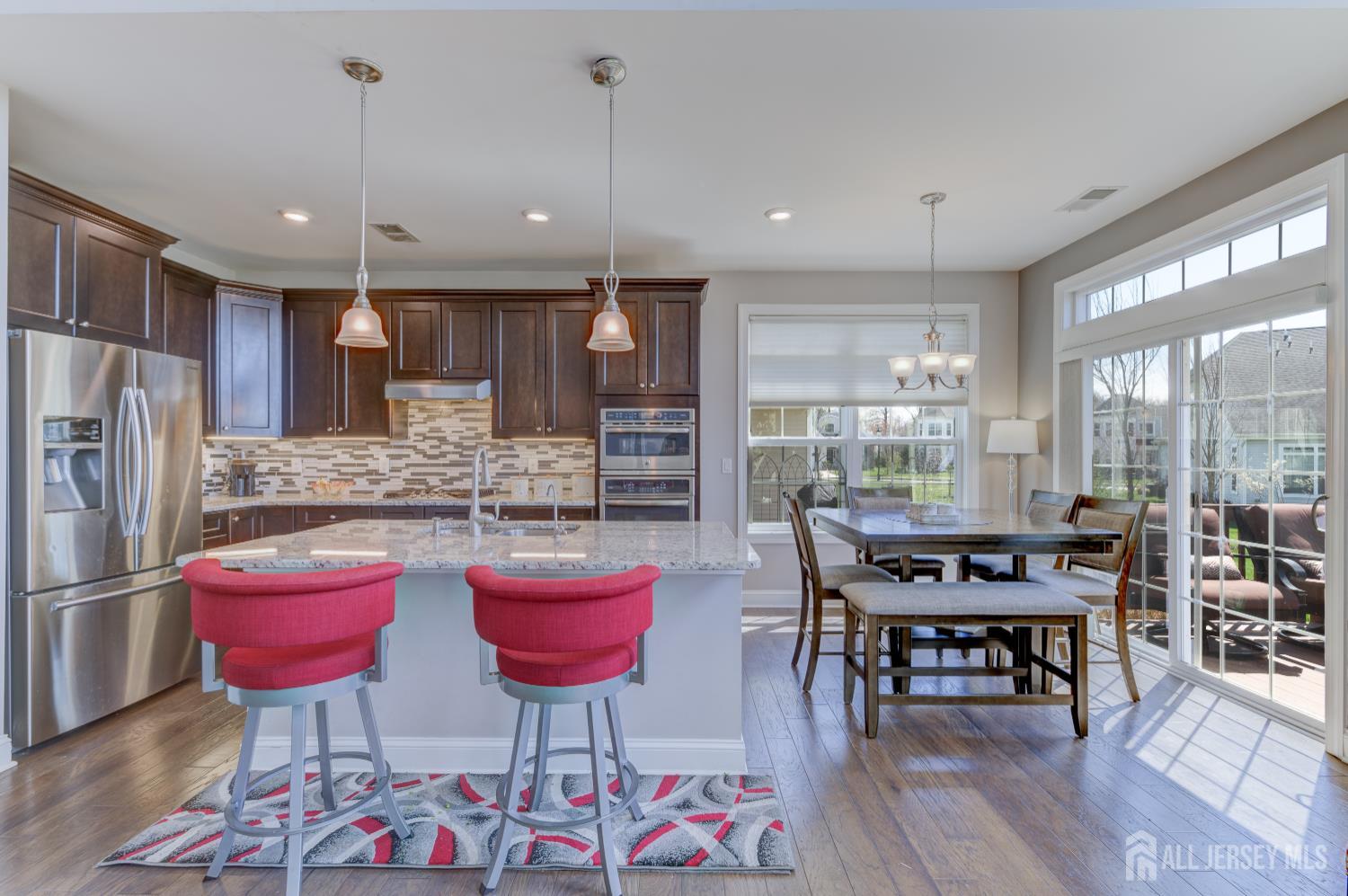 Look no further this home has it all! Nestled in the prestigious Villagio 55+ community in South Brunswick, this stunning home is the total package: sophistication, elegance, and warmth wrapped into one exceptional residence. And the best part? Only one resident needs to be 55 all others simply need to be 19+. From the moment you step inside, soaring ceilings and an abundance of natural light set the tone for what is truly a special home. Every inch has been thoughtfully updated, from hardwood floors to a spectacular kitchen featuring granite countertops, a large center island with breakfast seating, 42-inch cabinetry, and an oversized pantry. A charming breakfast nook and a large formal dining room round out the entertaining spaces beautifully. The family room is simply breathtaking walls of windows, custom remote-controlled blinds, and light pouring in from every direction create an atmosphere that must be seen to be believed. All custom blinds are included. The grand primary suite is a true retreat, complemented by a luxurious master bath. A second bedroom and full bath on the first floor offer ideal flexibility for guests or multi-generational living, along with a convenient dedicated laundry room. Upstairs, a spacious loft leads to two additional bedrooms and another full bath plus a large storage room for added practicality. The showstopper? The incredible basement an enormous, open entertainment space perfect for large gatherings, complete with a full bathroom with double sinks and storage throughout. Ceiling heights remain impressive even here, adding to the grandeur. The garage is equipped with a Tesla charger for effortless electric vehicle charging, and a whole -house generator ensures complete peace of mind no matter the weather. Three separate zoned air conditioning units-one for each floor-provide personalized comfort while maximizing energy efficiency throughout the home. Outside, enjoy a stunning brick paver patio overlooking lush greenery perfect for parties, barbecues, and relaxing evenings plus a separate deck just off the kitchen, your own private spot for that morning coffee. Location is everything, and this home delivers. Minutes to shopping, restaurants, downtown Princeton, major highways, Princeton Junction Train Station, and Penn Medical Center. And the community itself? Simply outstanding. The Villagio clubhouse offers an outdoor pool, billiard room, game room, exercise facility, tennis courts, and so much more a lifestyle that rivals any resort. This is not just a home. This is the one.