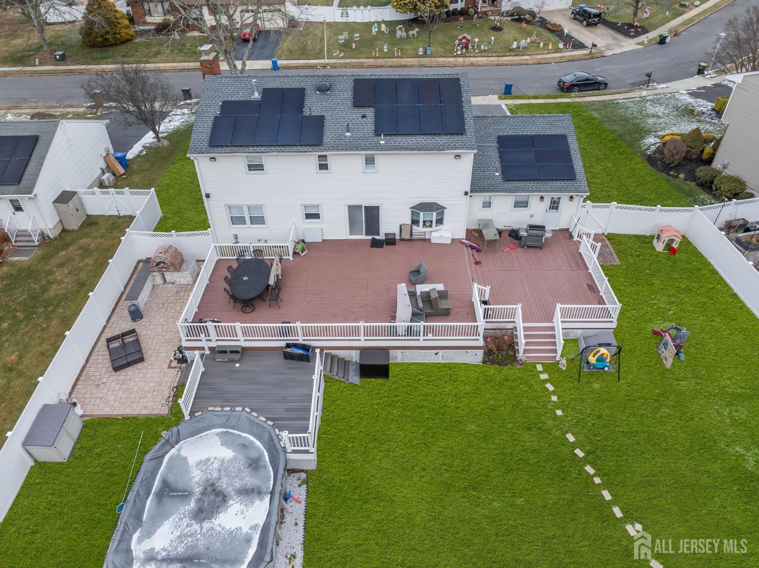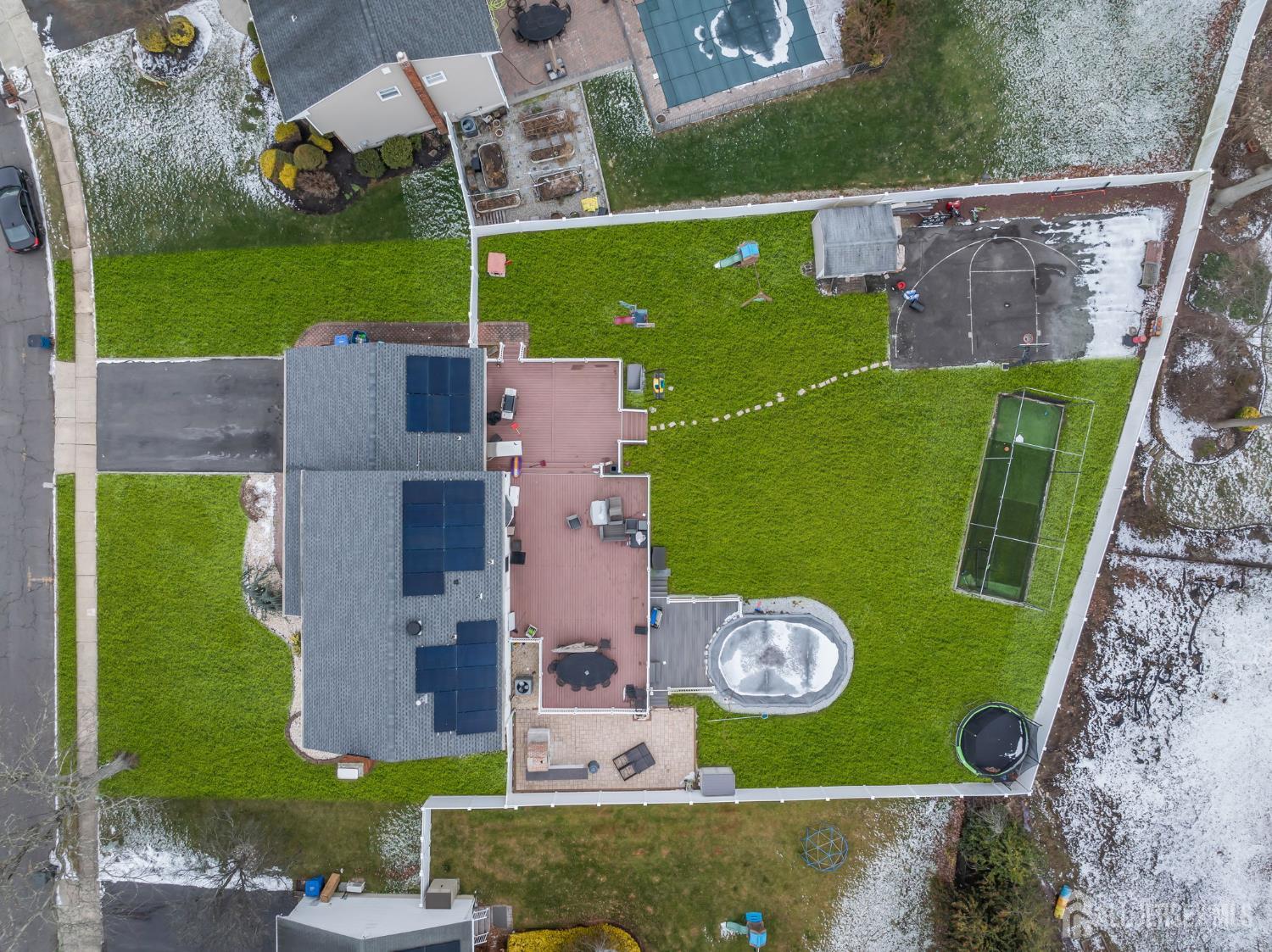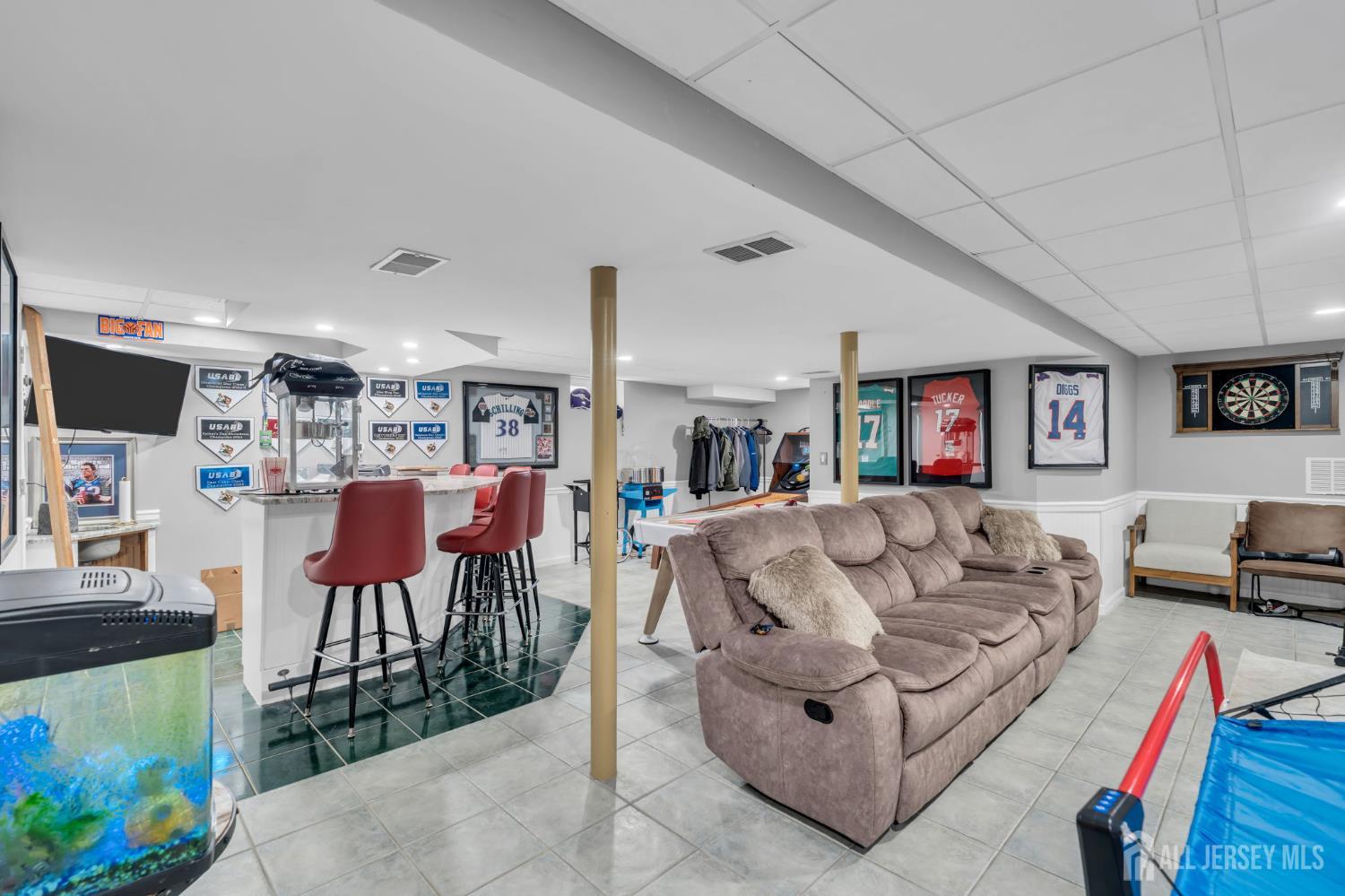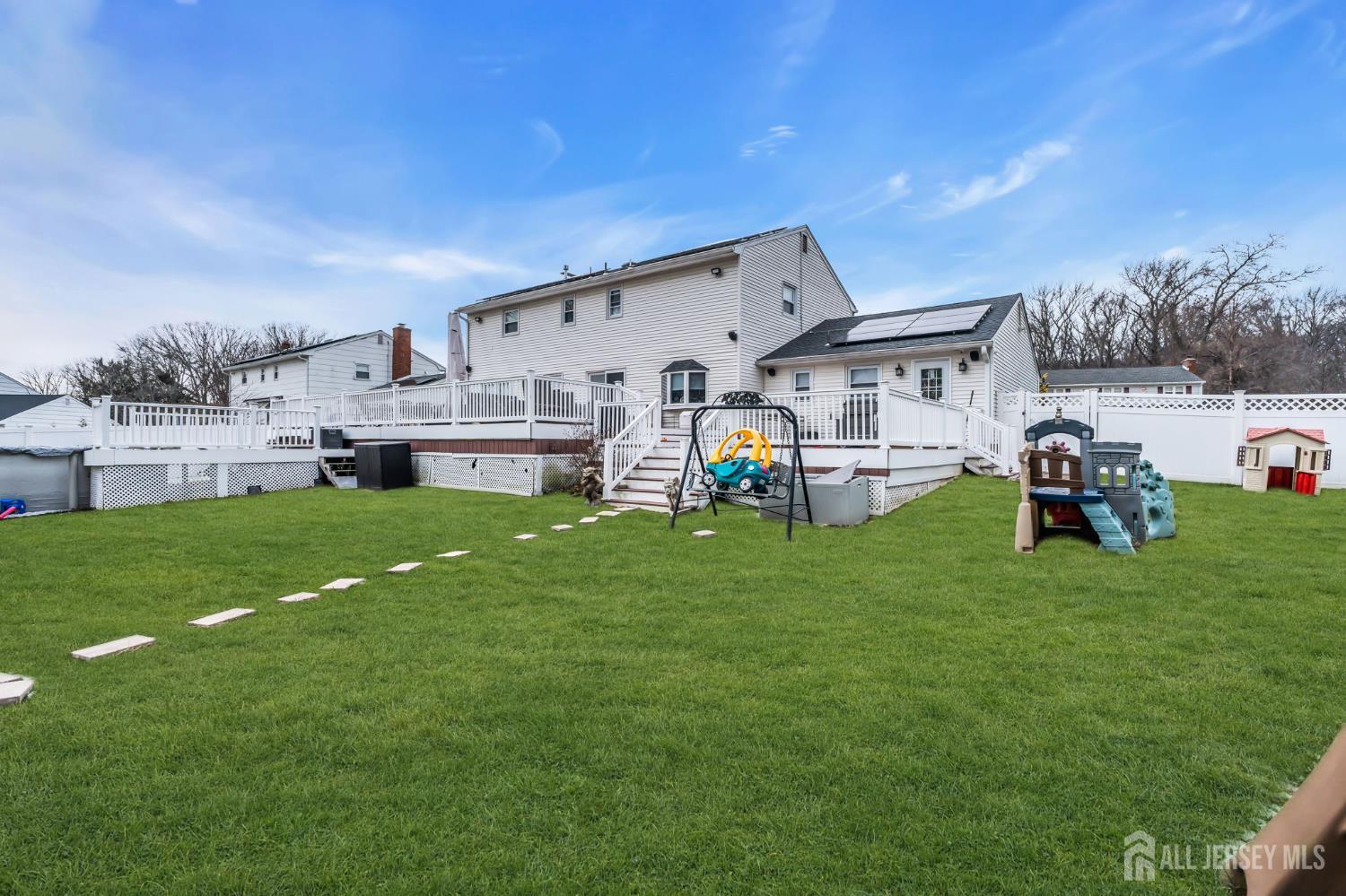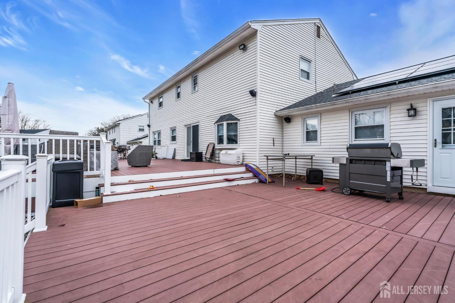 Spectacular 4BR,2.5-Bath Home with Possible 5th BR in the Heart of Old Bridge! This beautifully updated home features wide-plank, sand-colored flooring and recessed lighting throughout the first floor. The formal living and dining rooms showcase detailed wainscoting, while the large, kitchen features granite counters, stainless steel appliances, pendant lighting over the island, a spacious pantry, and an extra-large dinette area. Step down into the family room, perfect for gatherings, with an adjoining den that can serve as a fifth bedroom. Upstairs, you'll find four generous sized bedrooms with natural hardwood flooring, including a primary suite with a walk-in closet and a spa-like marble bathroom featuring barn-style glass shower doors and stone flooring. The finished basement offers a recreation room with a wet bar, granite countertop, and seating, ideal for entertaining. Enjoy a fenced backyard with a large deck overlooking the expansive yard and above ground pool! Additional updates include a two-year-old roof, two-zone AC replaced in July 2025, HWH 1 year! Conveniently located close to NYC commuting options, highways, shopping, ice skating, and more!