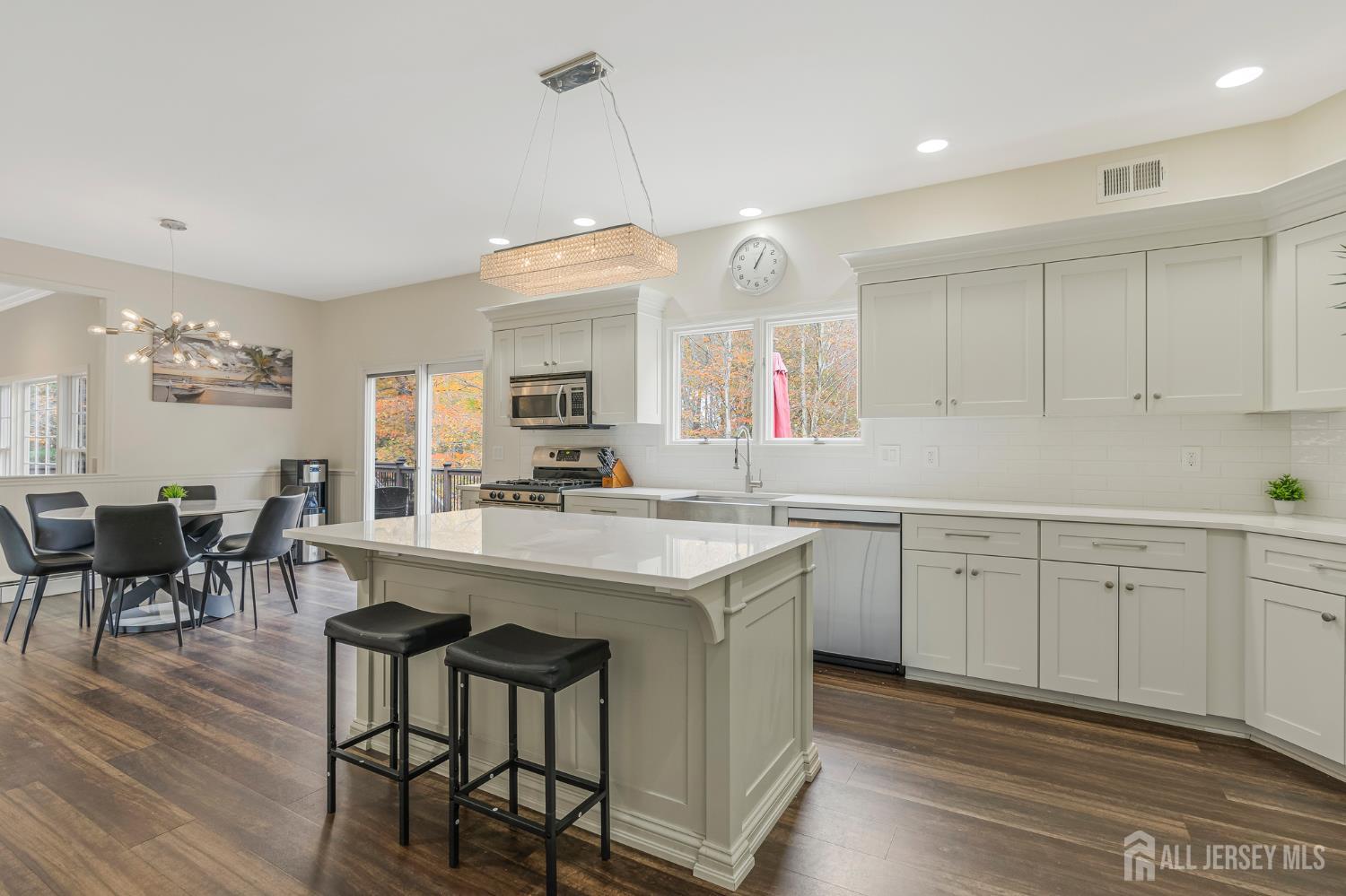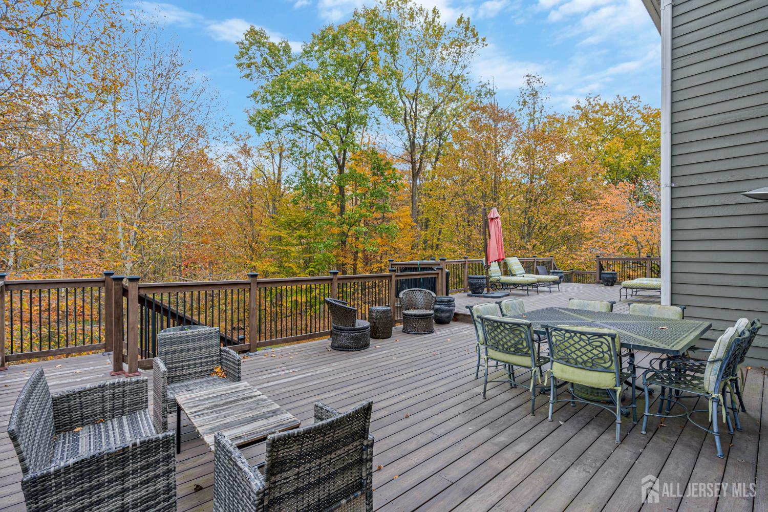 Experience refined living in this exquisite 5-bedroom, 3-bath Colonial ideally situated on the desirable southwestern side of Warren Township. Designed for comfort and style, this residence offers elegant living spaces and thoughtful updates throughout. A gracious foyer opens to a versatile first-floor room perfect for a guest suite, home office, or playroom. The gourmet kitchen is a true showpiece, featuring sleek modern design, higher-end appliances, and impeccable attention to detail. The home's interiors create an inviting ambiance, while the primary en suite exudes luxury with a full sitting room, plush carpeting, four custom closets designed for effortless organization, and bath with Jacuzzi tub and shower. The partially finished lower level provides soaring ceilings and abundant space ideal for a gym, studio, or private office. Recent upgrades include new high-efficiency air conditioning units and a hot water heater, ensuring comfort and efficiency throughout the seasons. Step outside to the crown jewel of this property: an impressive nearly 1,000 sq. ft. deck extending the full width of the home. Overlooking a serene wooded backdrop, this exceptional outdoor retreat offers the perfect setting for entertaining or simply enjoying the tranquility of nature. Additional features include a lawn irrigation system and invisible dog fence. New Roof! Located close to The Pingry School, in an excellent school district, and within close proximity to parks and all major highways.