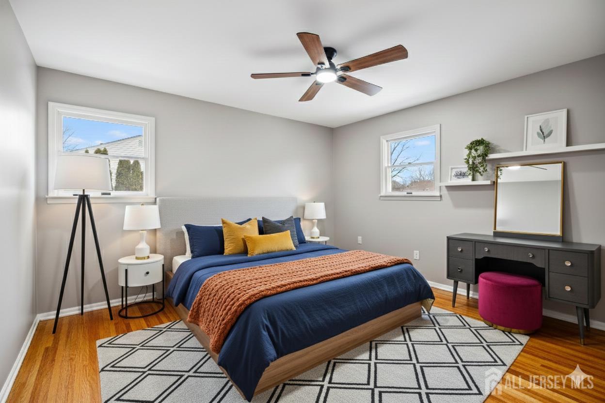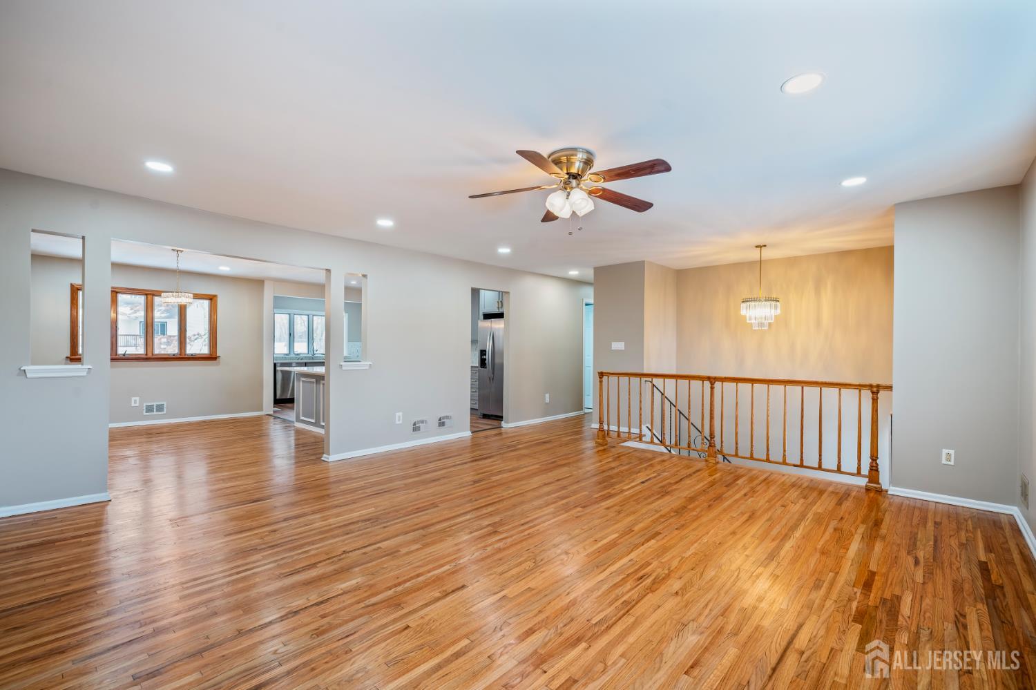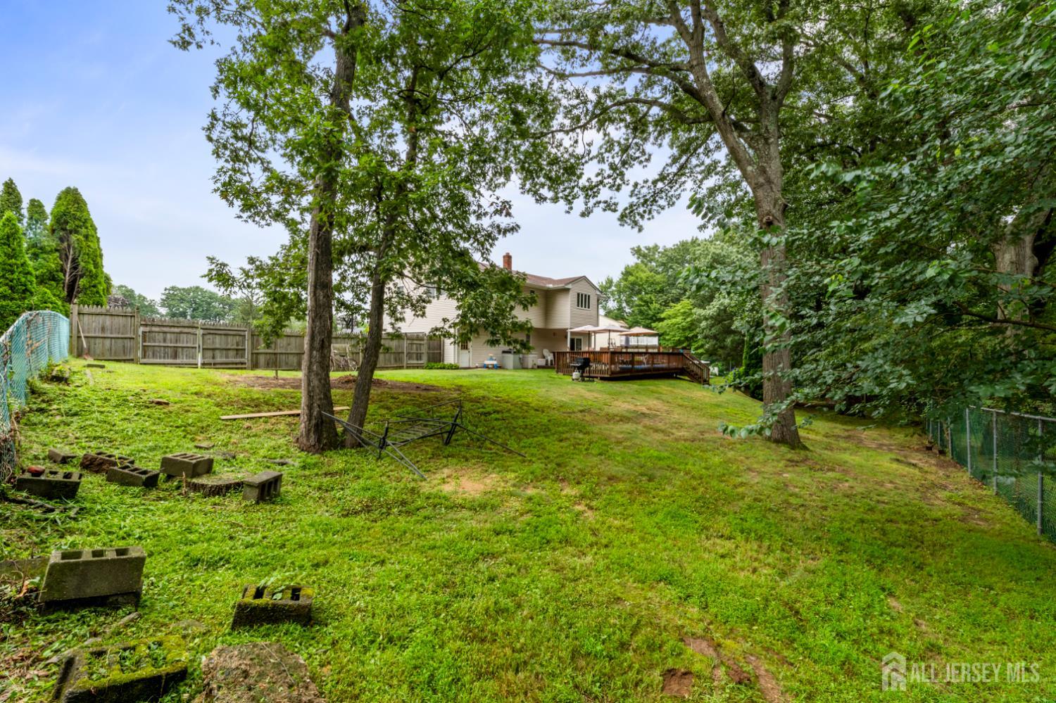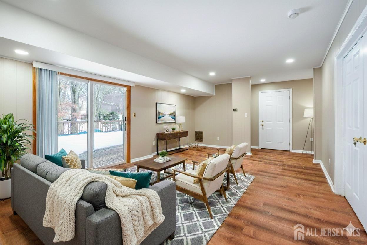 Welcome to this north-facing custom home tucked away on a quiet cul-de-sac in the highly sought-after Rambling Hills community. Thoughtfully updated and move-in ready, this home offers the perfect blend of comfort, style, and functionality. Step inside to a light-filled interior enhanced by oversized windows, updated lighting throughout, and a clean, modern palette. Newly refinished flooring on the main level and brand-new flooring on the first floor create a seamless, updated feel from top to bottom. The living and dining areas provide an ideal setting for everyday living and entertaining. At the heart of the home, the updated kitchen features stainless steel appliances, generous workspace, and a layout designed for both convenience and connection. The primary bedroom offers two ample closets and a private ensuite bath. Two additional bedrooms and a full hall bath complete this level, providing flexibility for guests, family, or a home office. The versatile first floor expands your living space with a fourth bedroom, spacious family room, half bath, and dedicated laundry area ideal for extended living, recreation, or guest accommodations. Sliding doors open to a fully fenced, tree-lined backyard featuring a spacious deck, above-ground pool, and an oversized yard ready for gatherings, play, or quiet evenings outdoors. Comfort is ensured year-round with central air conditioning and forced air heating, and a newer roof (approximately 2.5 years old) adds additional value and peace of mind. Conveniently located just minutes from Route 18, Route 1, the NJ Turnpike, Downtown New Brunswick, Rutgers University, major hospitals, shopping, dining, houses of worship, NYC commuter buses, and recreational amenities all within the award-winning East Brunswick Blue Ribbon School District. A rare opportunity to own a beautifully updated home in one of East Brunswick's most desirable neighborhoods.