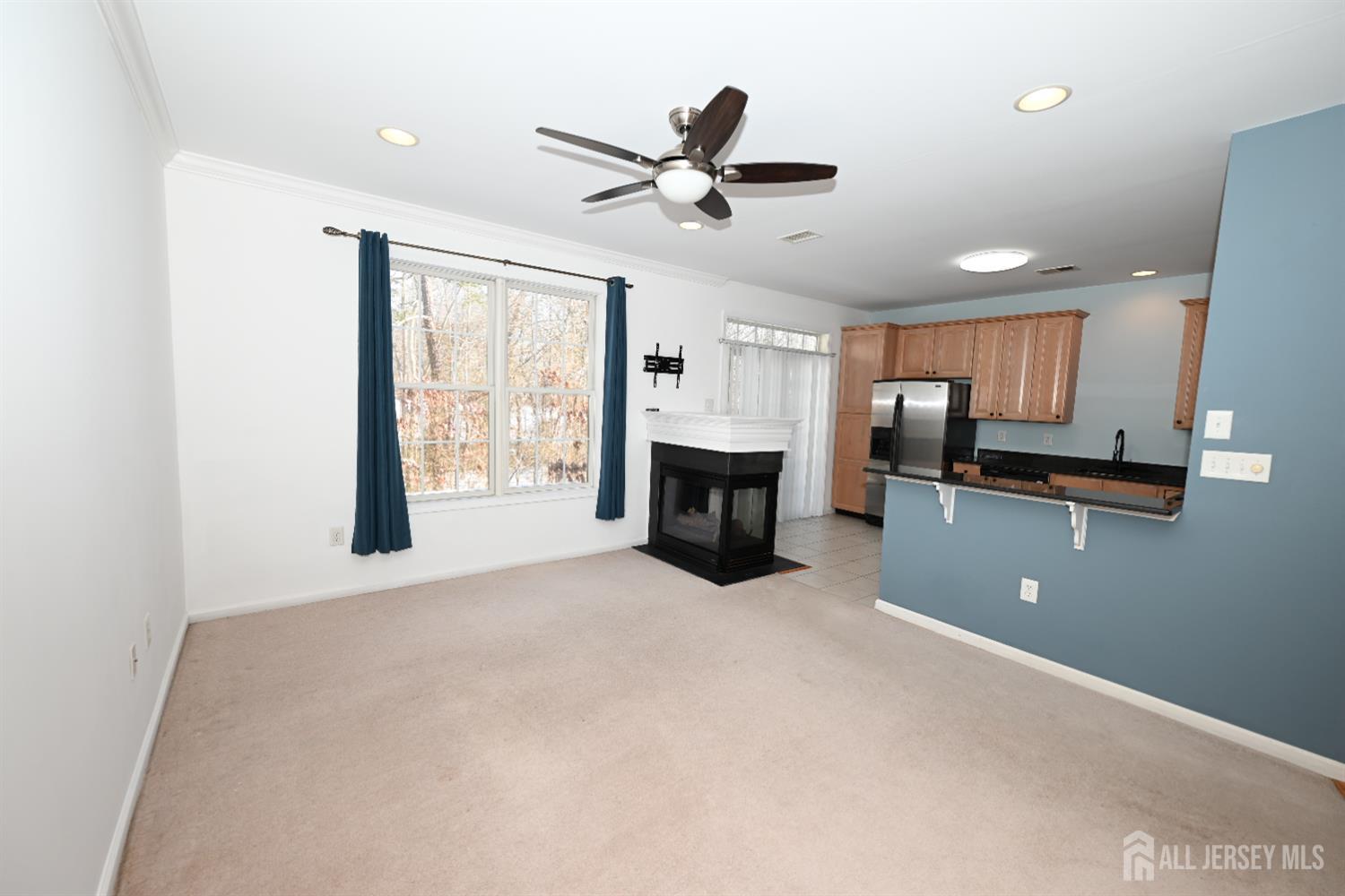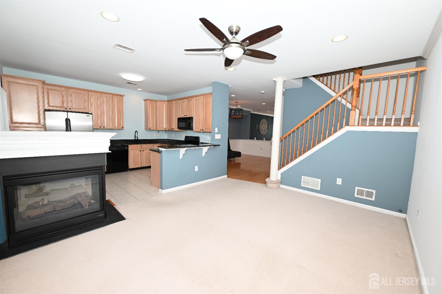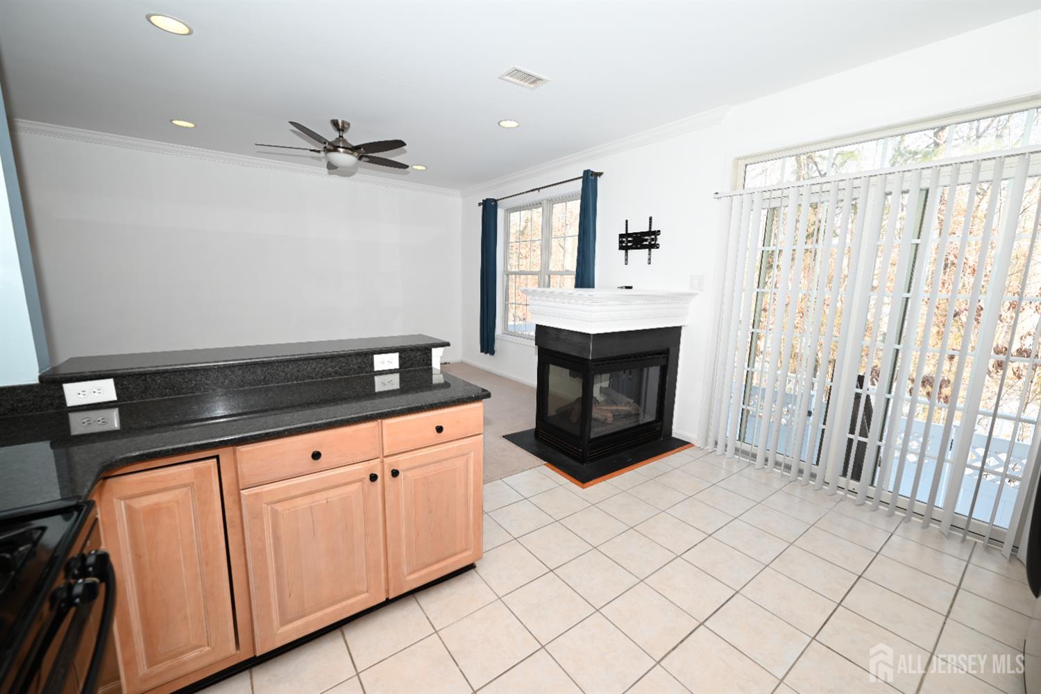 RARE Beautiful 4 Bedroom 2212 sq ft Townhouse boasts 2.5 baths, spacious living and formal dining room, family room, 3 sided gas fireplace, large kitchen with 42 in tall cabinets, pantry cabinet, granite counters, and all appliances included. Primary bedroom is expansive with its own balcony, luxury bath with jetted tub, stall shower and double sinks. Oak Wood floors and carpet. Newer Goodman Furnace with UV light and AC with remaining warranty transferable. Air ducts were cleaned 2025. 1 Car garage attached with door opener. Amazing Private views from back fenced patio of nature at its best. Attic with Pull Down Stairs. Quick closing available. Buyer to get CO and Smoke cert. Showing start Feb 8th.