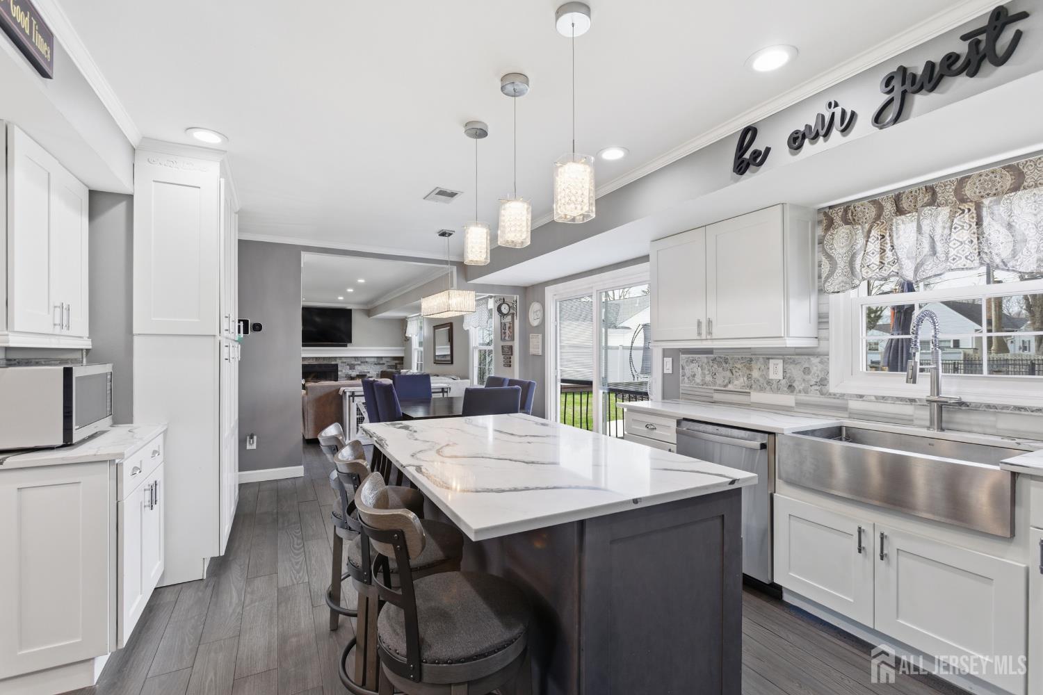 Welcome to the highly sought-after Strathmore section of Matawan, where style, space, and commuter convenience come together in one exceptional offering. This beautifully maintained custom Colonial delivers a rare combination of updates, functionality, and lifestyle appeal that today's buyers are actively searching for. The completely reimagined first floor features a stunning modern kitchen, high-end wood-look tile flooring, and an inviting living space anchored by a cozy wood-burning fireplaceperfect for both everyday living and entertaining. Renovated bathrooms add a refined touch, including a beautifully updated primary bath. Upstairs, enjoy the convenience of second-floor laundry. Step outside to your own private backyard retreat featuring a fully fenced yard with an in-ground saltwater pool, gazebo, tiki bar, and expansive space designed for entertaining and relaxation. Energy-saving solar panels add efficiency and long-term value. Commuters will appreciate the NYC bus located right outside your door, along with close proximity to major highways, shopping, dining, and the Jersey Shore. Homes like this rarely become availableschedule your showing today before it's gone.