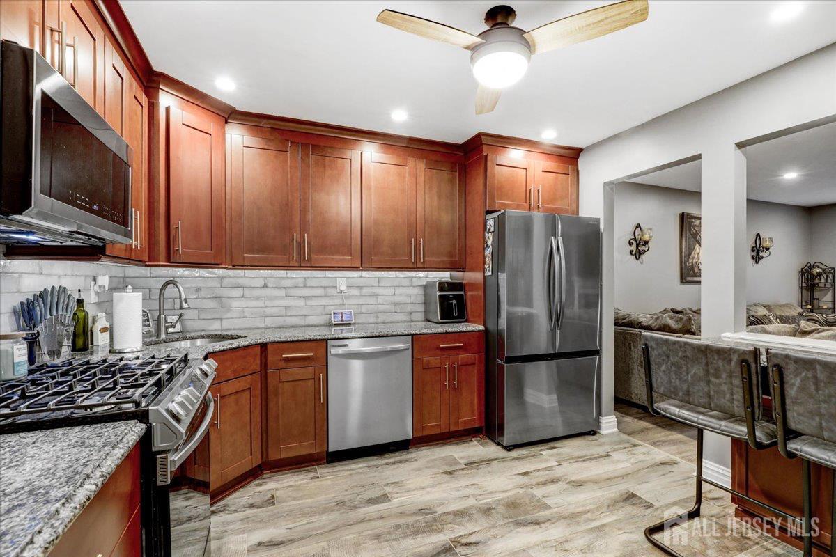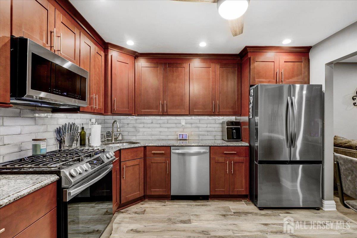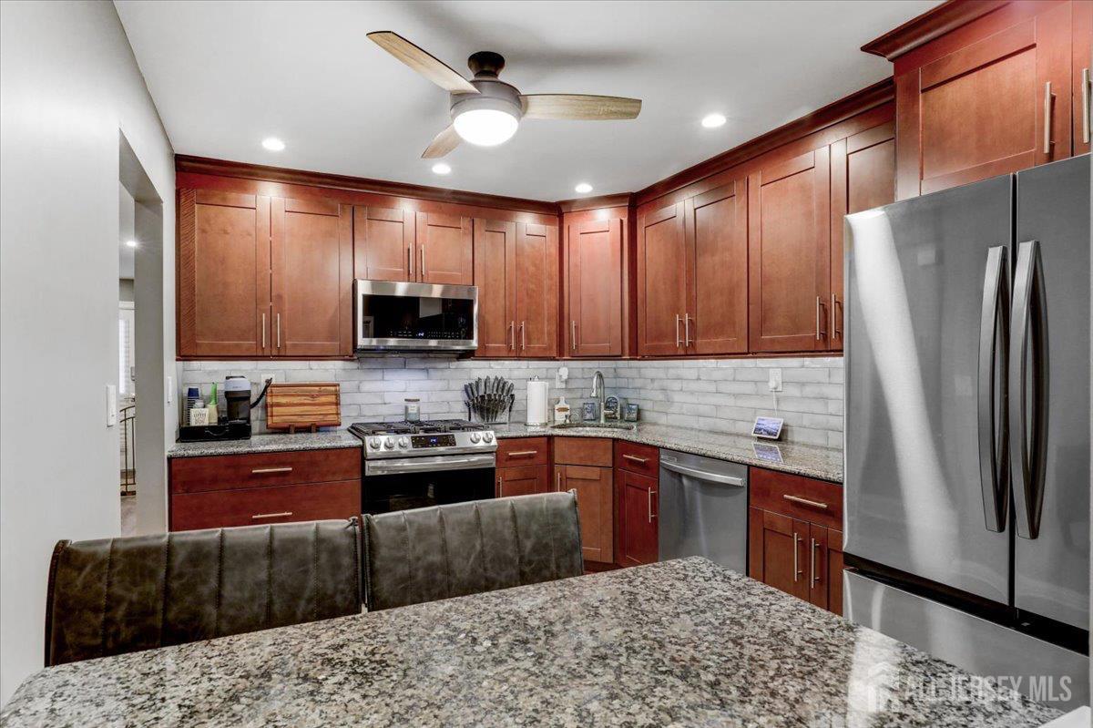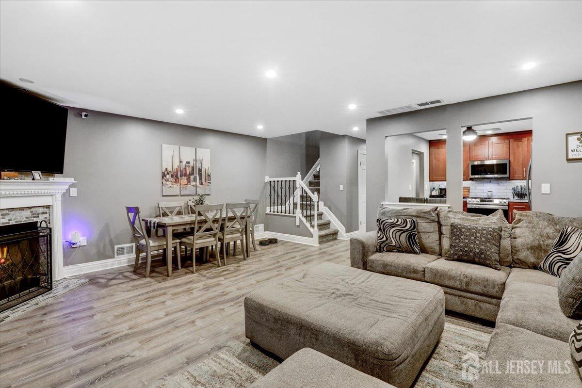 Welcome to this beautifully updated townhouse in desirable Bramble Run! This move-in ready home features an updated kitchen and baths, laminate flooring, six-panel doors, recessed lighting, ceiling fans, and a wood-burning fireplace. The second floor offers two spacious bedrooms with ample closet space. Additional highlights include an attached garage and a large yard with a paver patioperfect for entertaining. Conveniently located near Route 34 shopping, NYC buses, and top-rated schools. Don't miss this exceptional opportunitythis home will not last!