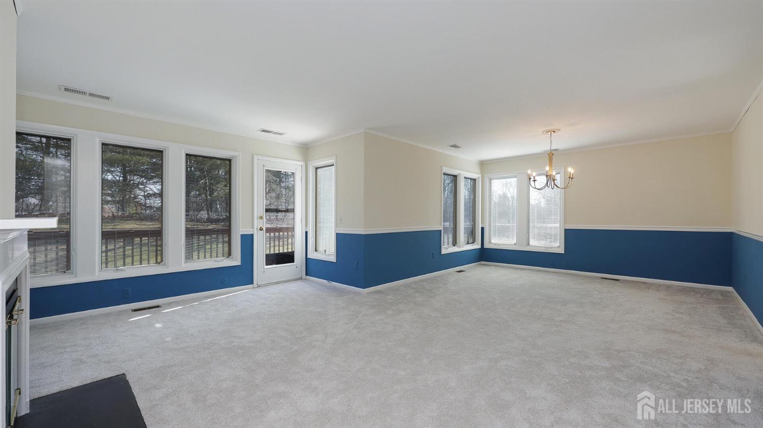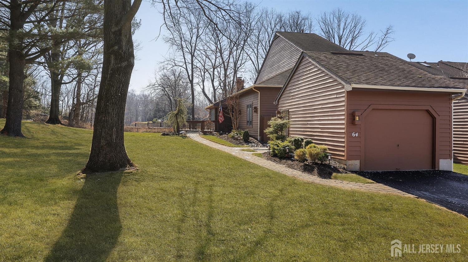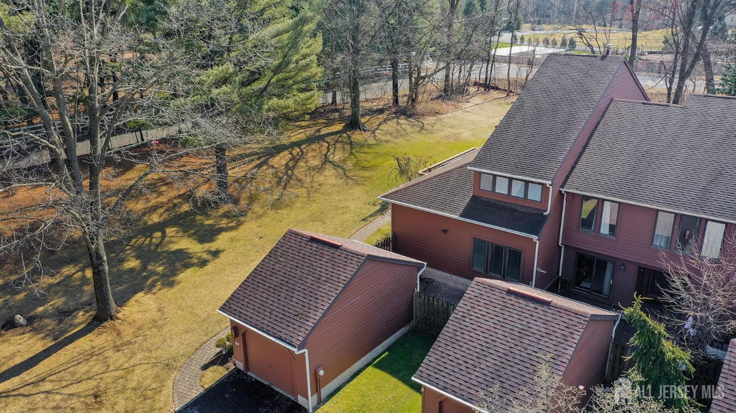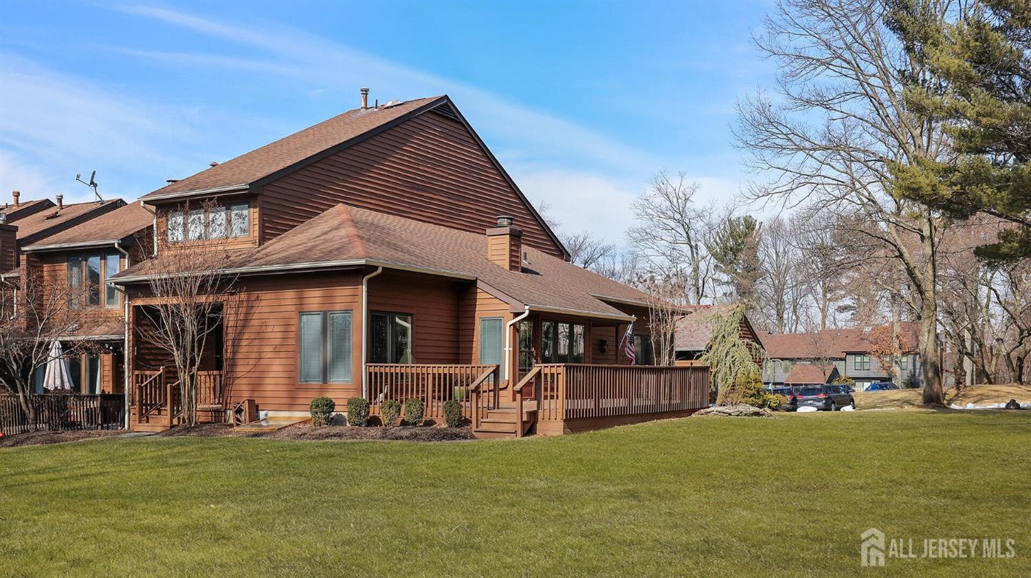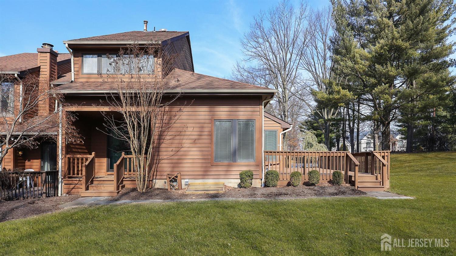 The Woodlands offers this rare opportunity! Privately situated end unit with expansive decks which overlooks open lawn area, plenty of sunlight, fabulous for warm weather entertaining and relaxation. MAIN LEVEL PRIMARY SUITE with sitting room PLUS 2 additional bedrooms, 3 1/2 bath end unit townhome in the convenient Woodlands complex next to the Plainfield Country Club, (one of Top 100 Golf Clubs in the USA). Newly carpeted first floor offers versatile floor plan to meet your ever changing needs. Finished lower level is ideal for at-home office and recreation room plus full bath. Eat in kitchen offers deck access and stainless steel appliances. The living room with gas fireplace can accommodate your sectional seating and is filled with windows and separate access to deck. Gracious primary bedroom has two oversized closets and private bath with stall shower plus separate vanity area. Den/sitting room off primary bedroom. Two additional bedrooms with custom built in window seats with tucked away storage plus amazing closet space and full bath complete the second floor. There is incredible storage throughout, including spacious pantry. Relax on the large deck or enjoy the community swimming pool open in the summer months. Unit being sold is as is' condition.