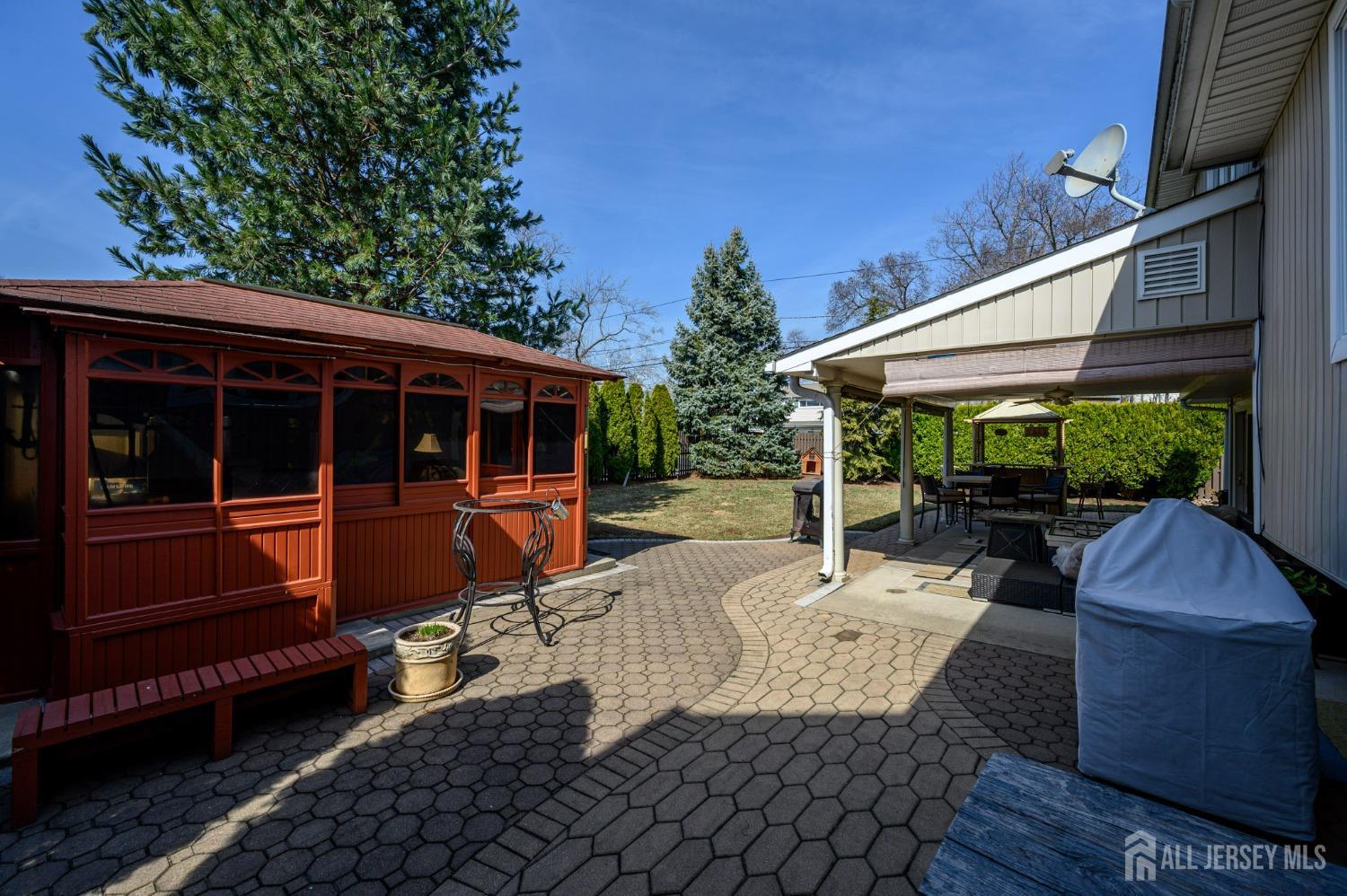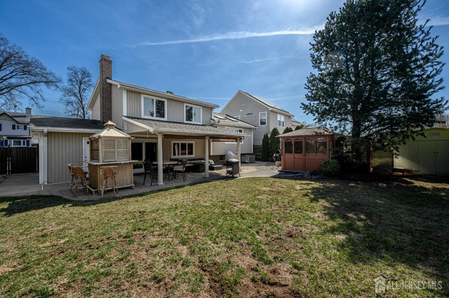 Home Sweet Home! Spacious 4 Bed 2.5 Bath Split with 1 Car Garage in sought after Colonia is sure to impress! Situated on a corner lot, well maintained inside & out in a great neighborhood, move-in-ready & waiting for you! Light & bright main lvl features a spacious open layout for seamless living & entertaining w/hardwood floors that shine. Sizable Living rm & Dining rm w/recessed lighting & soaring cathedral ceiling adorned w/skylights truly opens up the space. Gorgeous remodeled Eat-in-Kitchen offers sleek SS appliances, granite counters w/matching custom built granite table, ceramic tile backsplash, & a plethora of premium cabinetry. Upstairs, the sleek remodeled main bath w/glass door tub shower + 3 generous Bedrooms. Lower lvl adds to the package w/a spacious Family rm complete w/wood burning fireplace & sliding glass doors leading to the rear paver patio, 1 sizable Bedroom & convenient 1/2 Bath. Finished Basement is an added bonus w/a versatile Rec Room, full bath, laundry, pantry, & built in closets. This home features, New hardwood floors, Anderson windows & sliders, central a/c, water softener, leaf gutters, & professional landscaping w/lights. Plush, park-like backyard w/covered paver patio offers recessed lights & shades, 14x14 enclosed redwood gazebo, outdoor bar, & 2 storage sheds, all fenced-in for your privacy & comfort. 1 car garage, double wide drive & a great location, close to shopping, dining, excellent schools & more! This could be the one! Come & See!
