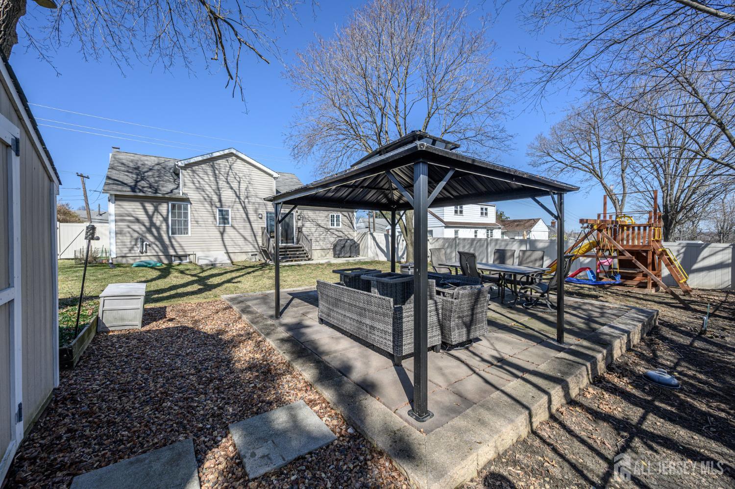 Welcome Home! Lovely 3 Bed 2 Bath Cape in desirable Jamesburg is ready and waiting for you! Meticulously maintained inside and out, with modern touches all through, just pack your bags and move right in! Step into the light & bright Living Rm featuring elegant crown molding and vinyl flooring that extends throughout. The formal Dining Rm is the perfect space to entertain dinner guests offering sliding glass doors to the rear patio for easy al fresco dining. Beautiful Eat in Kitchen features SS appliances, heated ceramic tile flooring, a delightful breakfast bar, and a plethora of premium fluted cabinetry for storing all of your kitchen needs. Down the hall, the updated main full bath with tub shower + 2 generous Bedrooms with vinyl flooring and plenty of closet space. Make your way upstairs to find the Primary Bedroom featuring recessed lighting, plush carpet, a large walk-in closet and its own private ensuite bath with modernized upgrades like the stall shower with decorative tile and glass doors. This home also features 2 zone heating, a high efficiency combo boiler, & an on-demand tankless water heater. Relax outdoors in the spacious backyard complete with 2 patios, patio canopy, swing set, storage shed, and plenty of space to build and play, all fenced in for your privacy. Extended Driveway offers ample parking space for you and guests. Close to shopping, dining, parks, & schools + public transportation and major roads for an easy commute. Don't wait, this one won't last. Come & see TODAY! **Showings Begin 3/19/26**