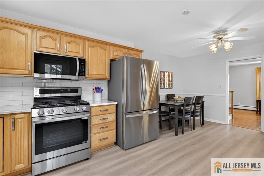 Imagine coming home to a quiet Cranbury neighborhood where life moves at just the right pace. This inviting 4-bedroom, 2.5-bath split-level home offers a comfortable layout, thoughtful updates, and the kind of space that makes everyday living feel easy. Step inside to the main level, where a bright living room with a large bay window welcomes in natural light and provides the perfect place to relax with a morning coffee or gather with friends. The gas stove in the living room offers cozy warmth for those cold winter days. The dining room flows naturally from the living space and connects to the recently updated kitchen, featuring upgraded vinyl flooring, quartz countertops and newer appliances making it an ideal setting for everything from weeknight dinners to weekend entertaining. Wood flooring throughout much of the house offers continuity and warmth. Upstairs, the primary bedroom offers a peaceful retreat with its own private bath and stall shower. Two additional bedrooms and a full bathroom provide comfortable space for family, guests, or a home office. The lower level adds even more flexibility with a spacious family roomperfect for movie nights, game days, or simply unwinding at the end of the day. This level also includes a fourth bedroom and convenient half bath, offering an ideal setup for guests, work-from-home needs, or multi-generational living. Additional features include a generously sized garage and several important recent updates, including a washer and dryer, kitchen appliances, newer garage doors, air conditioner and a durable 50-year roof, adding peace of mind. Outside, the deck and oversized backyard creates endless possibilities. Whether you envision summer barbecues, a thriving garden, play space, or simply enjoying a quiet evening outdoors, there is room here to make it your own. Living in Cranbury means enjoying the charm of a historic small town with exceptional conveniences. Students attend the highly rated Cranbury School (K-8) and Princeton High School, and commuters appreciate the easy access to the NJ Turnpike, nearby park-and-ride options, and NJ Transit service. This is the kind of home where everyday moments, morning routines, family dinners, and backyard gatherings come together to create lasting memories.