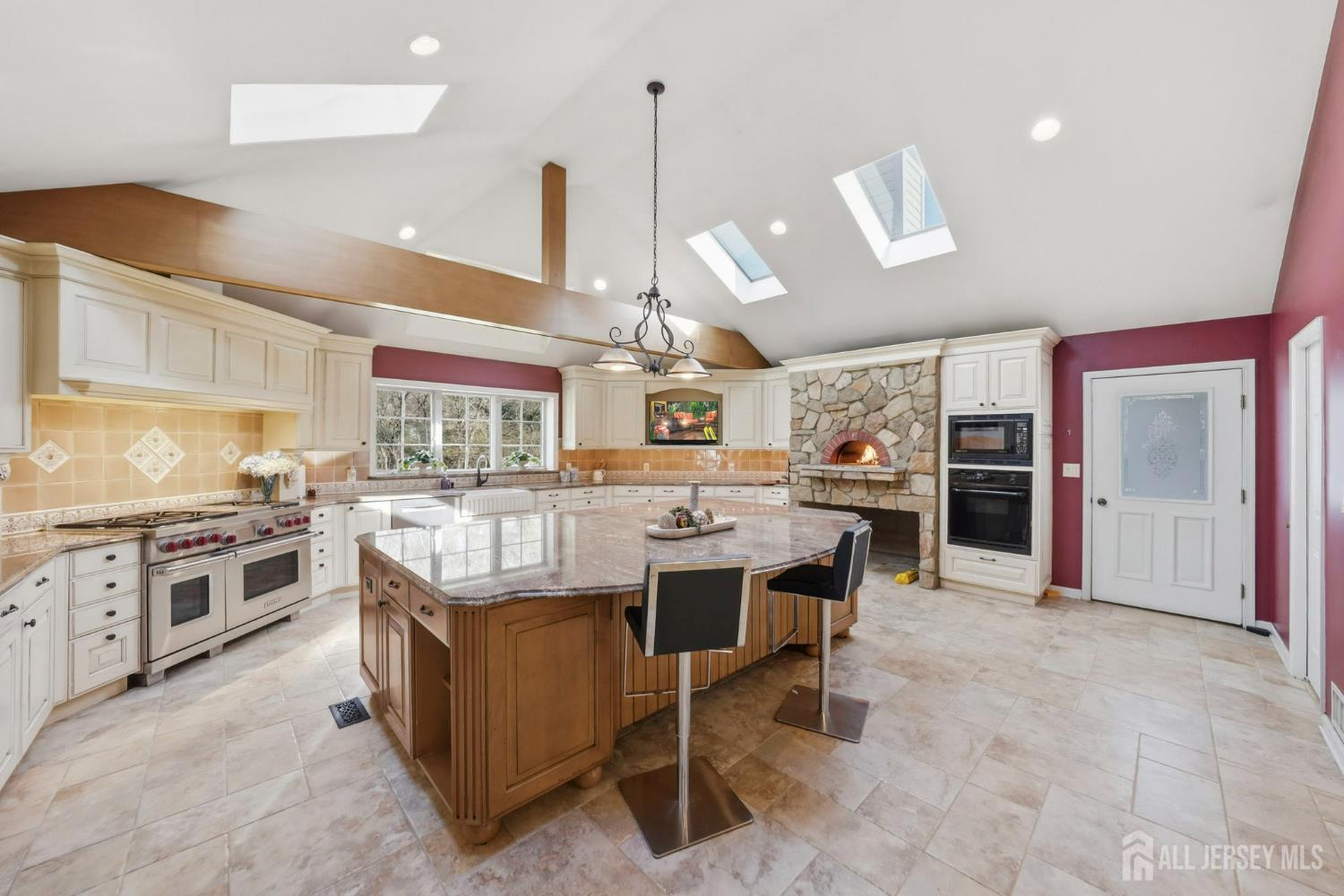 Welcome to this beautifully renovated 5-bedroom, 3 full bath home in Cranbury, NJ. Located in the Shadow Oaks community, this move-in-ready home offers ~4,680 sq ft of living space, including over 2,000 sq ft of additions, on a landscaped 0.92-acre lot with a fully fenced yard and 10-zone sprinkler system. The open-concept layout features hardwood floors, fresh neutral paint, and abundant natural light. A chef's kitchen anchors the home with a rare Valoriani wood-fired pizza oven, Sub-Zero appliances, Wolf range, Thermador oven, Bosch dishwasher, and custom cabinetry. A stunning circular sunroom with gas fireplace and spiral staircase to a wine cellar creates a unique entertaining space. Main-level bedroom/study with full bath and private patio. Upstairs offers 4 spacious bedrooms with renovated baths and custom closets. Finished basement adds flexibility. Close to downtown Cranbury, major routes, and Cranbury middle and elementary with Princeton High. Willing to work with buyers rep