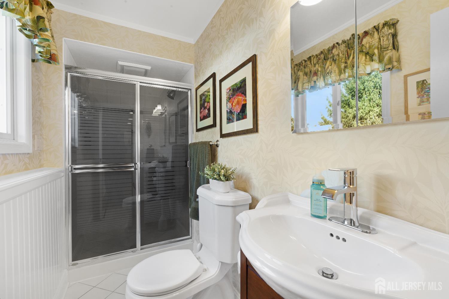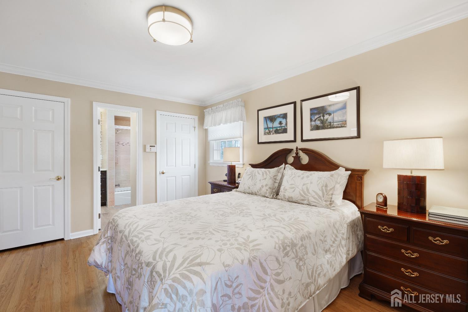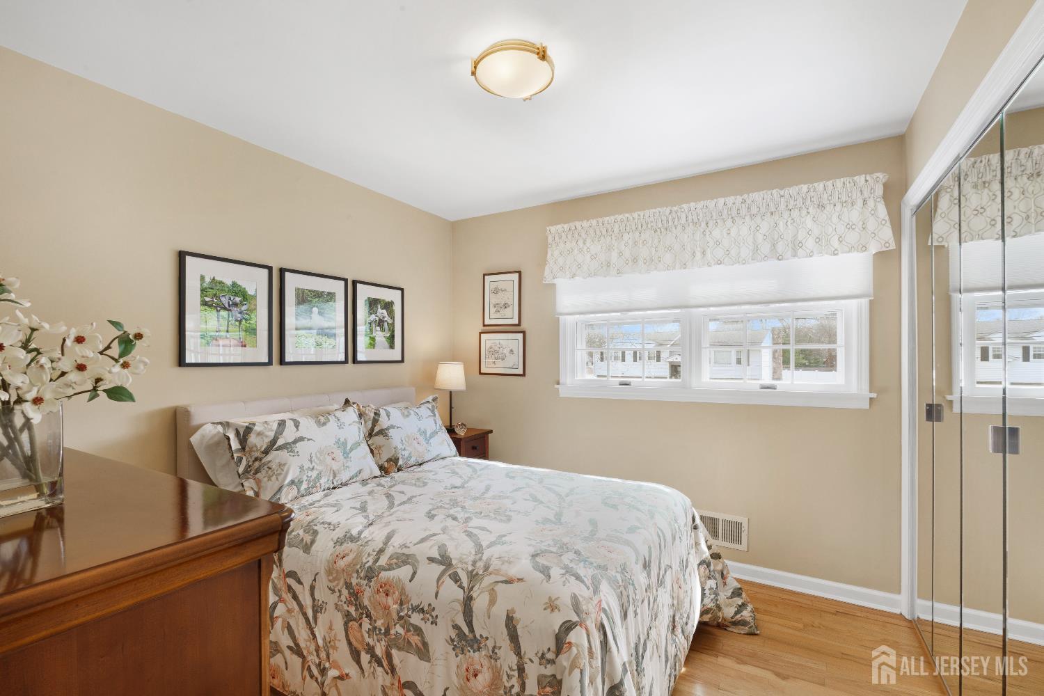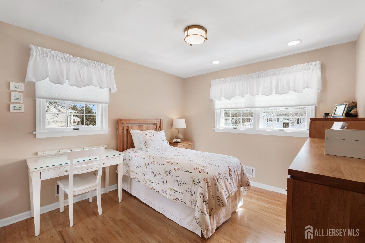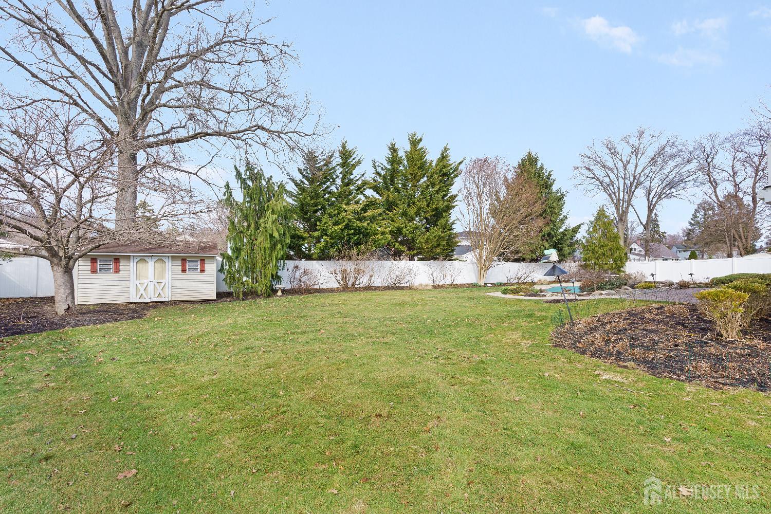Welcome into this beautifully maintained home featuring a bright living room with large windows, recessed lighting, and elegant upgraded crown and base moldings that add architectural detail and craftsmanship. The spacious dining room provides an ideal setting for both everyday meals and entertaining, offering ample room for gatherings with family and friends. The dining area flows seamlessly into the kitchen, creating a comfortable and functional layout for hosting and daily living. The kitchen features granite countertops, stainless steel appliances, and sliders leading to a second floor composite deck overlooking the yardperfect for outdoor dining and gatherings. Motorized skylights in the kitchen and bathroom allow natural sunlight to pour into the spaces while also providing additional ventilation. The main level offers three bedrooms with generous closet space. Refinished hardwood floors throughout this level add warmth and timeless appeal. The ground level offers the potential for multi-generational living and includes a bedroom currently being used as an office with built-in cabinetry, a spacious family room with gas fireplace, full bathroom, laundry room, and convenient access to the garage and backyard. Step outside to beautifully professionally landscaped grounds featuring landscape lighting and a sprinkler system that keeps the lawn and gardens vibrant. The backyard is designed for relaxation and entertaining with a heated concrete pool and hot tub, along with an automatic pool vacuum for easy maintenance. The second floor composite deck includes a retractable awning and an under-deck drainage system that keeps the patio below dry. A paver patio provides additional space to relax or entertain. This exceptional home combines comfort, functionality, and outstanding indoor and outdoor living. Convenient access to schools and major highways.
