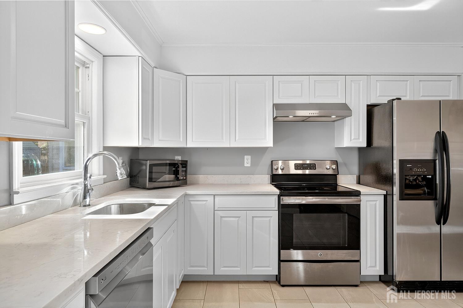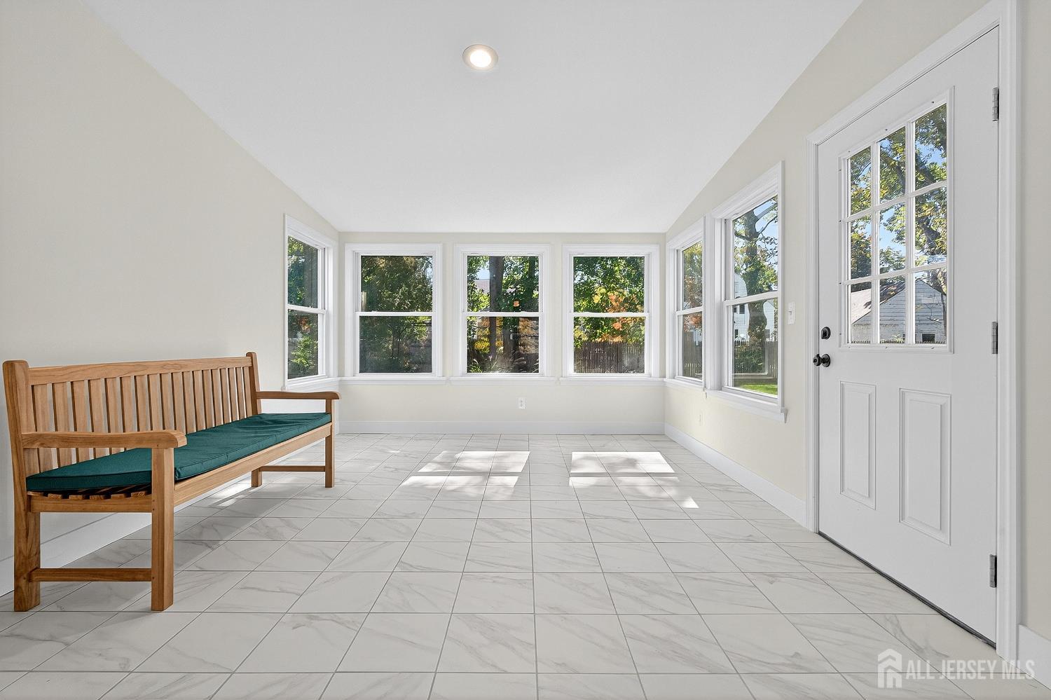 Nestled in Matawan's sought-after Edgemere Heights, this beautifully updated mid-century ranch offers 3 bedrooms, 2 full baths, an open layout, and sits on nearly 1/3 of an acre. Ideally located just minutes from trains, buses, downtown, shopping, the Garden State Parkway, and major roadways. A covered front porch welcomes you into a light-filled living room with a wood-burning fireplace, brick and stone hearth, and large picture window. The updated kitchen features shaker cabinetry, quartz countertops, stainless steel appliances including a newer LG dishwasher, a pantry, recessed lighting, and direct backyard access. The dining room flows into a sunken family room and sunroom, both with recessed lighting and access to a patio and fully fenced yard with a koi pond, open lawn, and storage shed. The primary suite includes a triple window, cedar closet, and updated bath with tiled step-in shower. Two additional bedrooms offer hardwood floors, ample closets, and great natural light. The hall bath features a granite vanity, modern lighting, tile flooring, and a tub-shower with glass doors. A full basement provides storage, laundry, and utility space with potential to finish. Updates include 22 replacement Andersen windows, a new garage door, and newer roof, doors, and hot water heater. Complete with a one-car garage, this move-in ready home offers comfort, style, and convenience, just 25 minutes to the Jersey Shore.