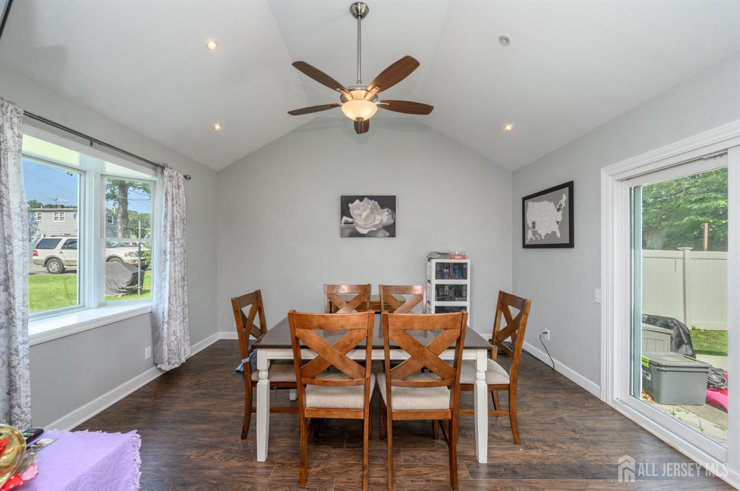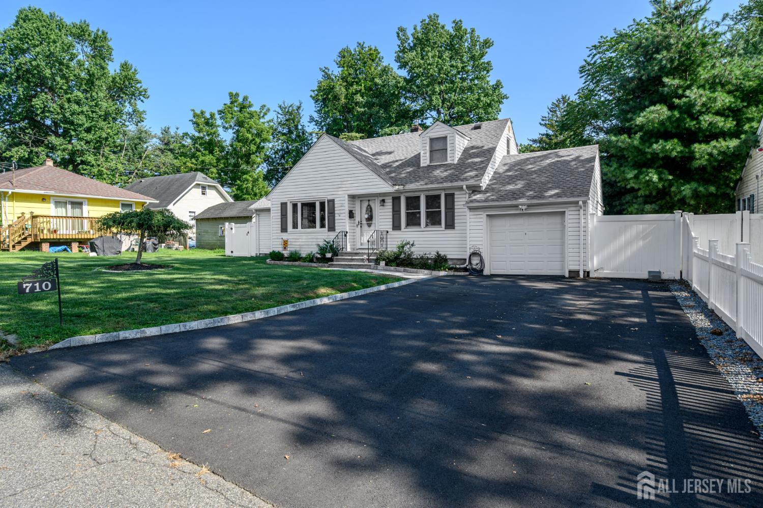 Home Sweet Home! Charming 4 Bed 1.5 Bath Cape with Full Basement and 1 Car Garage in sought after South Plainfield could be the one for you! Well maintained inside and out in a great neighborhood with curb appeal, just pack your bags and move right in! Step in to find a spacious, light and bright living room with hardwood floors that shine and plenty of natural light all through. Lovely galley kitchen offers sleek SS appliances, ample cabinet storage, and flows right into the sun soaked dining room. Here, find soaring vaulted ceilings that truly open up the space, along with a bay window with peaceful views and recessed lighting. Down the hall, the main full bath along with 2 generous bedrooms with lighted ceiling fans for added comfort. Upstairs, find 2 more private bedrooms, a convenient 1/2 bath, and versatile landing space. Basement holds laundry, utilities, and storage. Plush backyard offers a patio and plenty of extra space to build and play, completely fenced-in for your privacy and comfort. 1 car garage with double wide driveway provides ample guest parking. All of this and more in a great location, close to shopping, dining, parks, and more! Don't miss out! Come & see TODAY!!