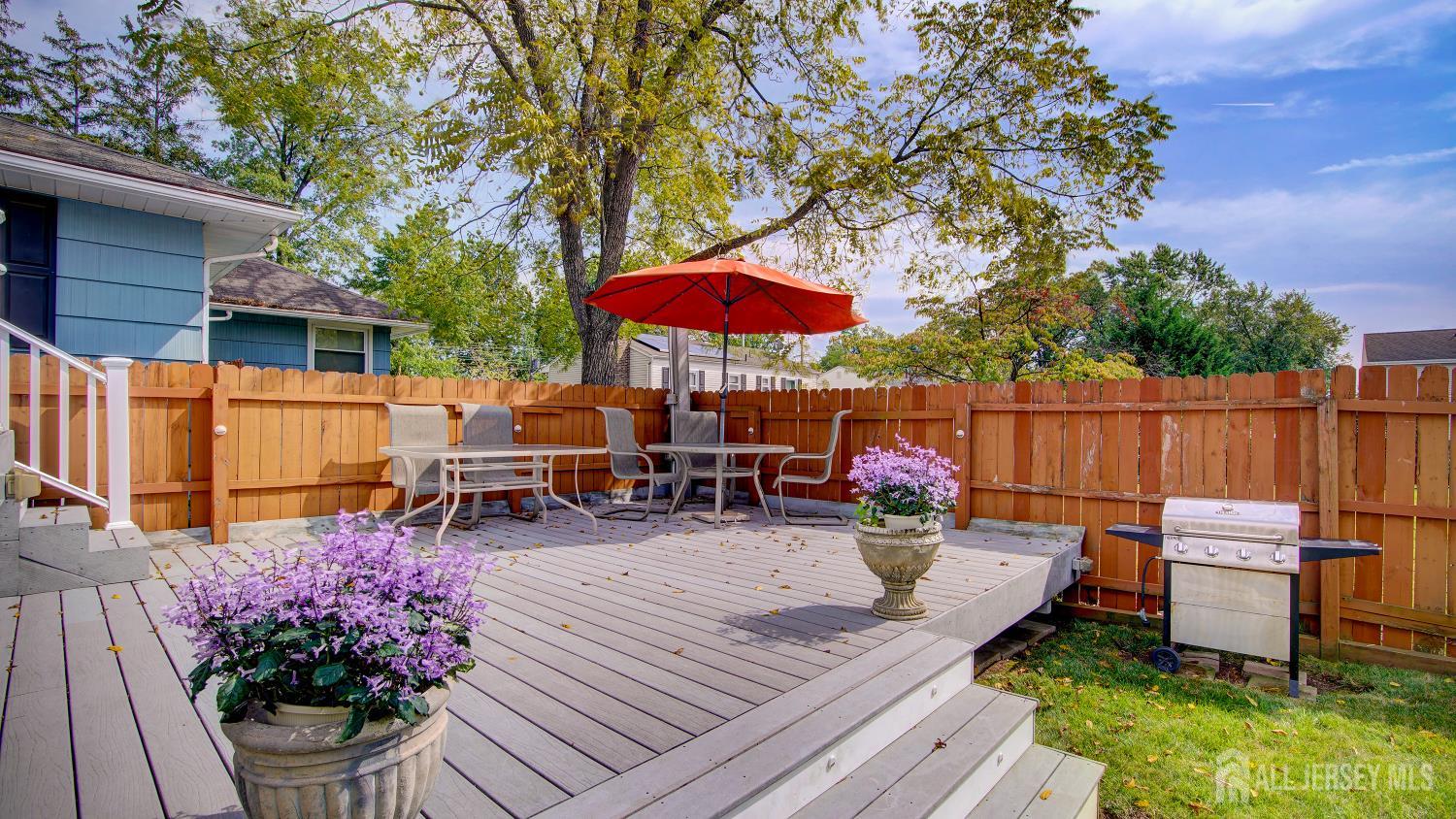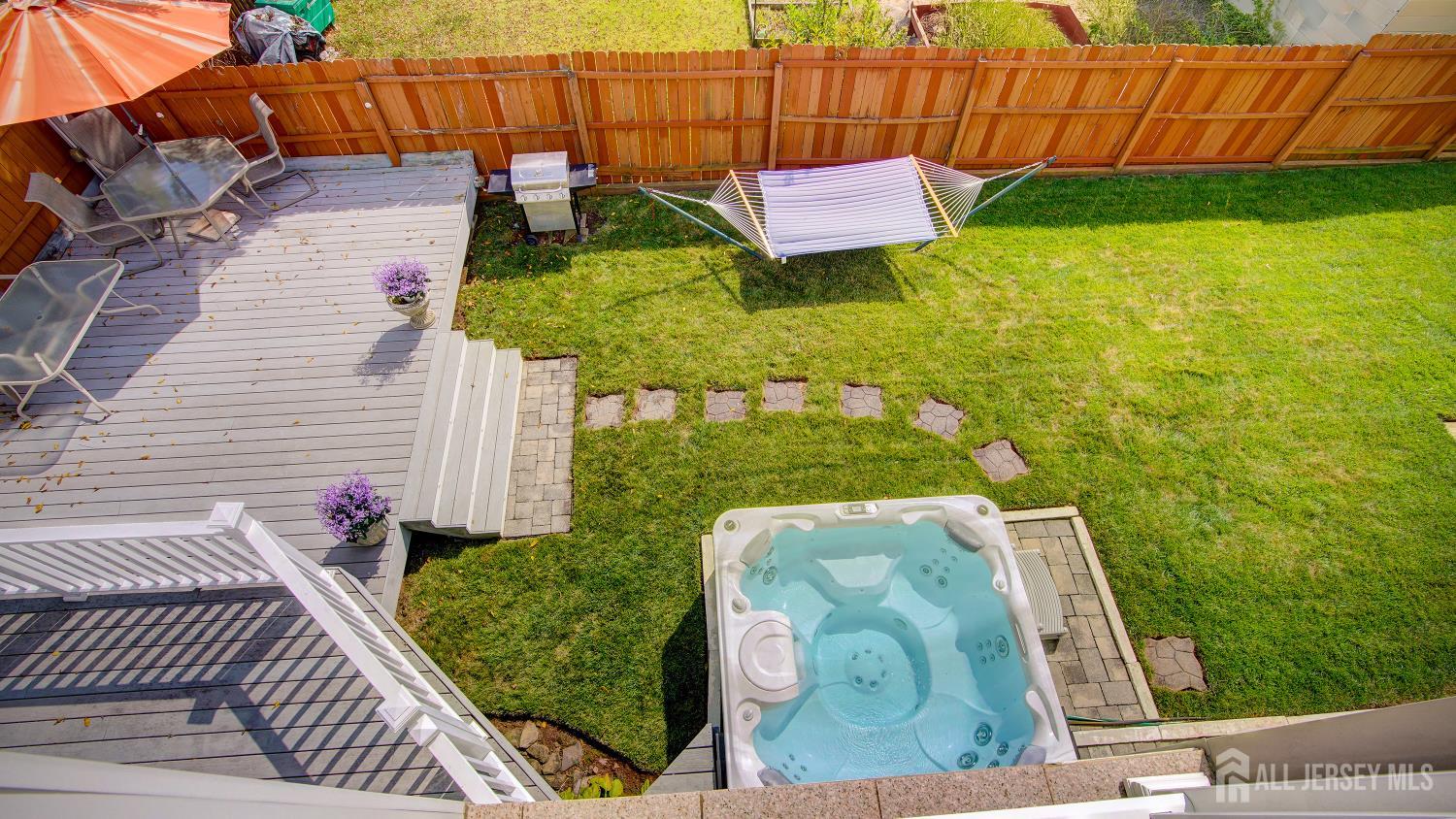 Exterior Features: Lawn Sprinklers, Deck, Patio, Sidewalk, Fencing/Wall, Yard