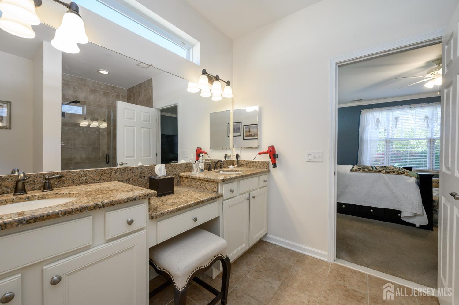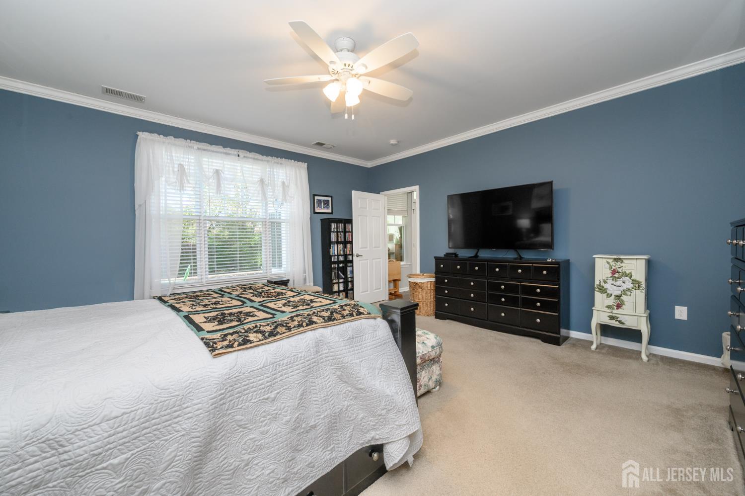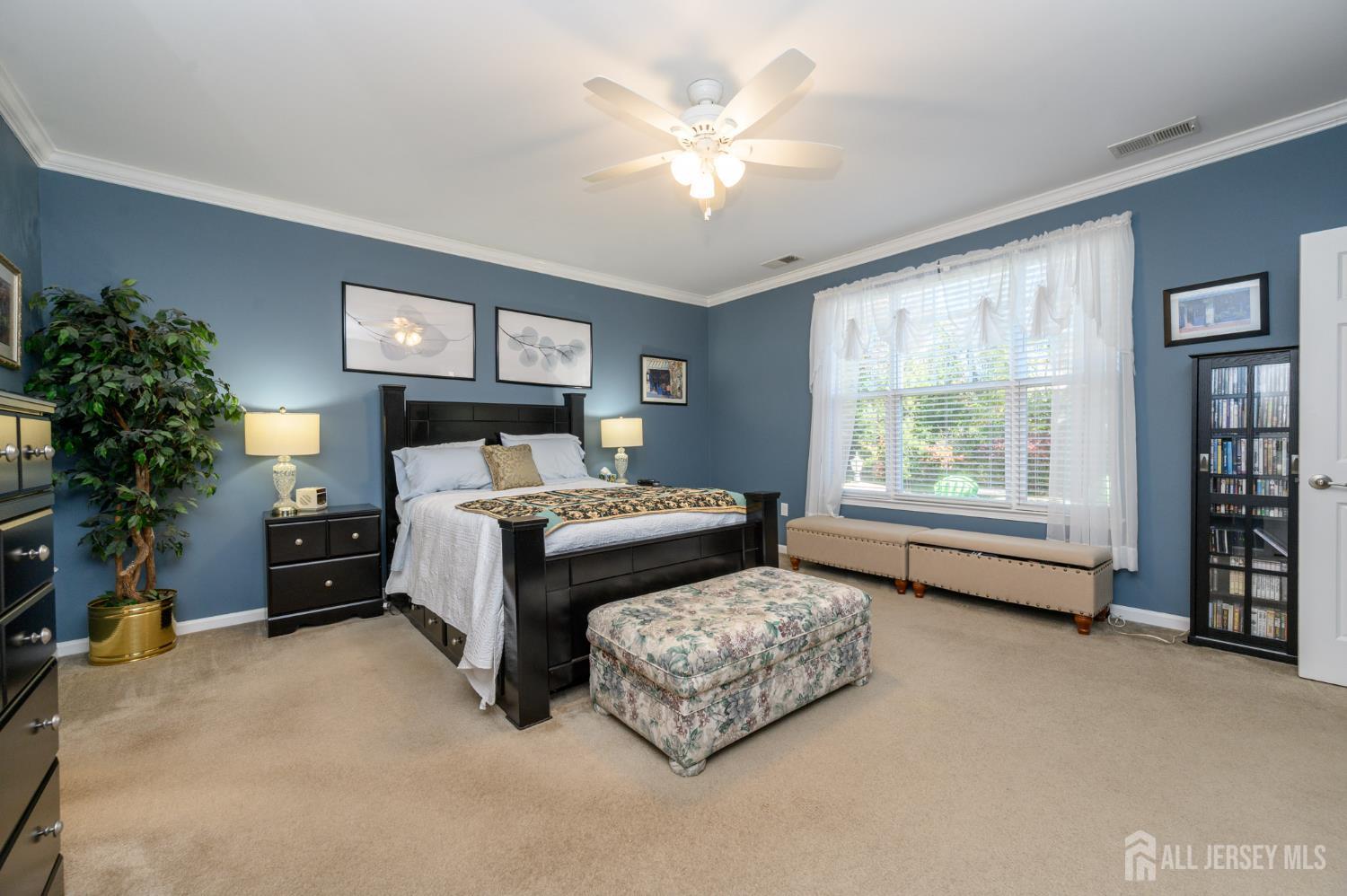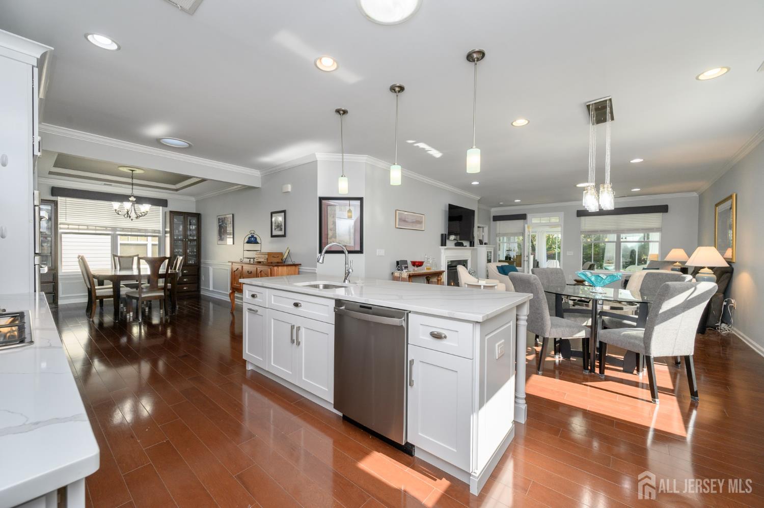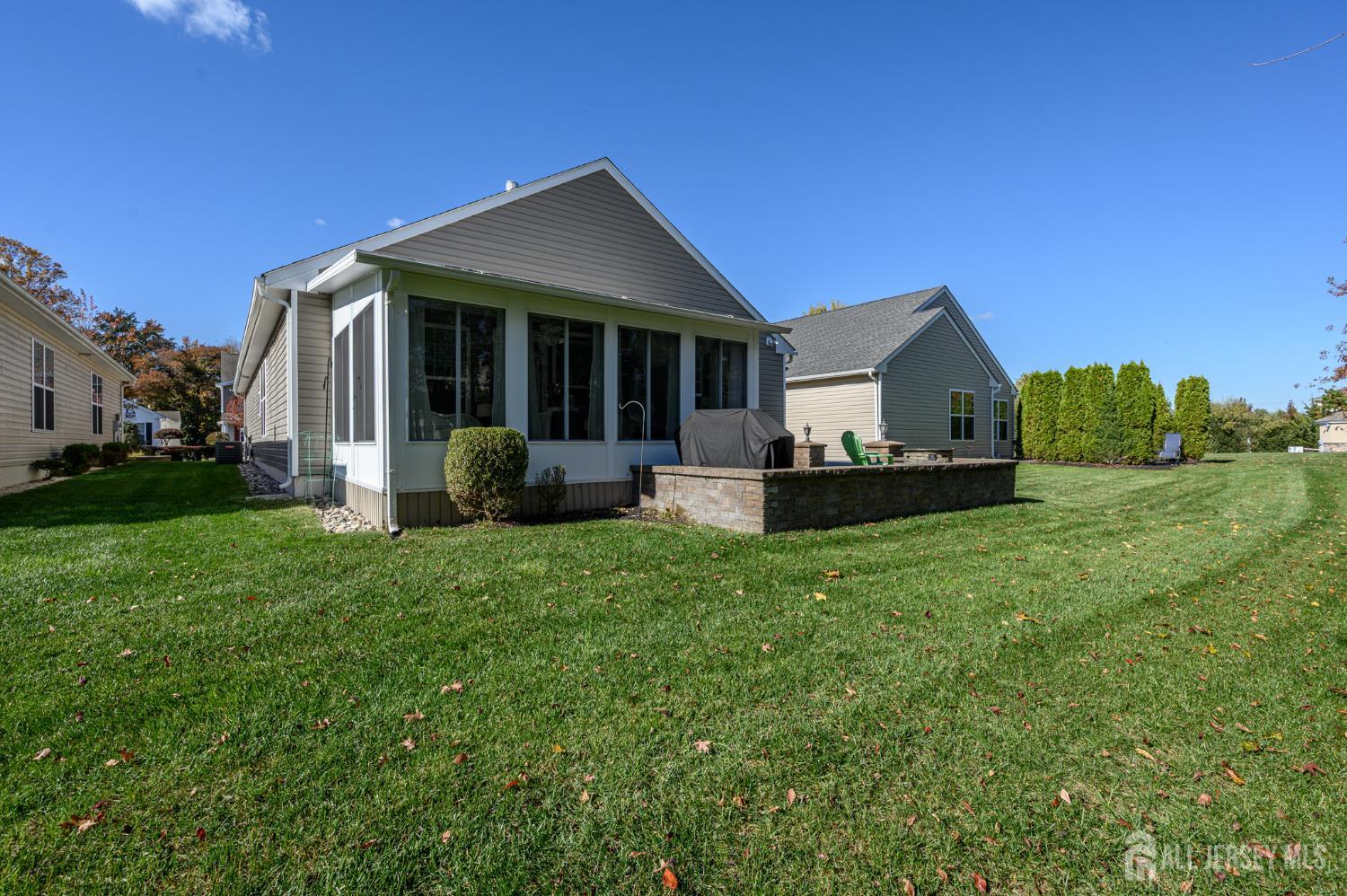 South Knolls at Jackson's 55+ Community premieres this stunning 2 Bed 2 Bath San Marcos model with Master Suite, blissful 3 Season Room, and 2 Car Garage on one of the larger lots with a 4' extension at build, sure to impress! Meticulously maintained inside and out with curb appeal in a sought after community with plenty of amenities to indulge, just pack your bags and move right in. Charming custom covered front porch welcomes you in to find a spacious, freshly painted, accessible interior offering easy one level living, featuring generous room sizes, hardwood floors that shine, elegant custom moldings, custom closets, and plenty of natural light all through. An accessible open layout makes for seamless living and entertaining. Lovely living room with cozy fireplace is perfect for the season, flowing right into the gourmet eat-in-kitchen. Newly renovated eat-in-kitchen will delight any home chef, offering sleek SS appliances, gleaming quartz counters, ample new cabinetry and drawers, an upgraded pantry, recessed lighting, sun soaked dinette space, and a large center island that is ideal for gathering. French door off the living room opens to your blissful 12x18 3 season room, cable equipped, offering walls of windows with peaceful, panoramic views, the perfect spot to enjoy your morning coffee or a good book. Down the hall, find the convenient in-unit laundry, main full bath, and 2 generous bedrooms, inc the Master Suite. MBR boasts its own walk-in closet and private full ensuite bath with dual sinks, vanity, and accessible stall shower. Plush outdoor area holds a 12x16 paver patio that backs to peaceful, park-like views with no neighbors for added privacy, along with a natural gas line to the patio, perfect for al fresco dining and grilling. 2 car garage with double wide drive offers plenty of parking, along with walk-up loft storage, an added bonus. Network wired, attic fans, central air/forced heat, the list goes on! Enjoy endless amenities such as clubhouse events, the outdoor pool, bocce, shuffleboard, tennis courts, pickleball courts, basketball courts, exercise facilities, and more! All conveniently located to shopping, dining, and major roads for an easy commute. Don't miss out! Truly a Move-in-Ready MUST SEE!!