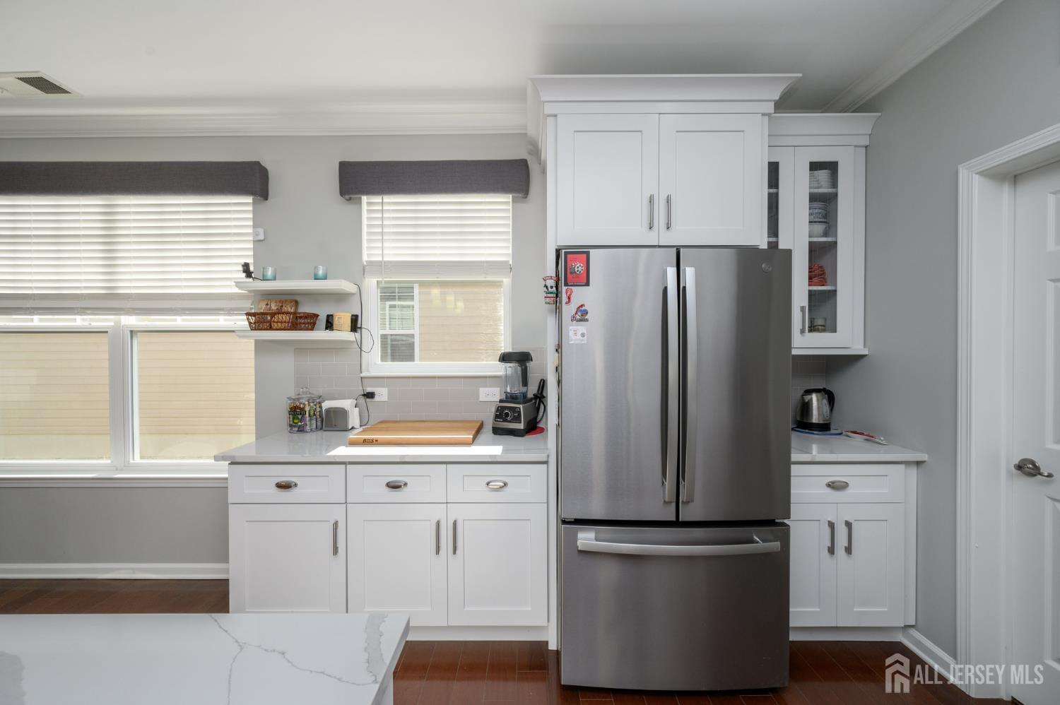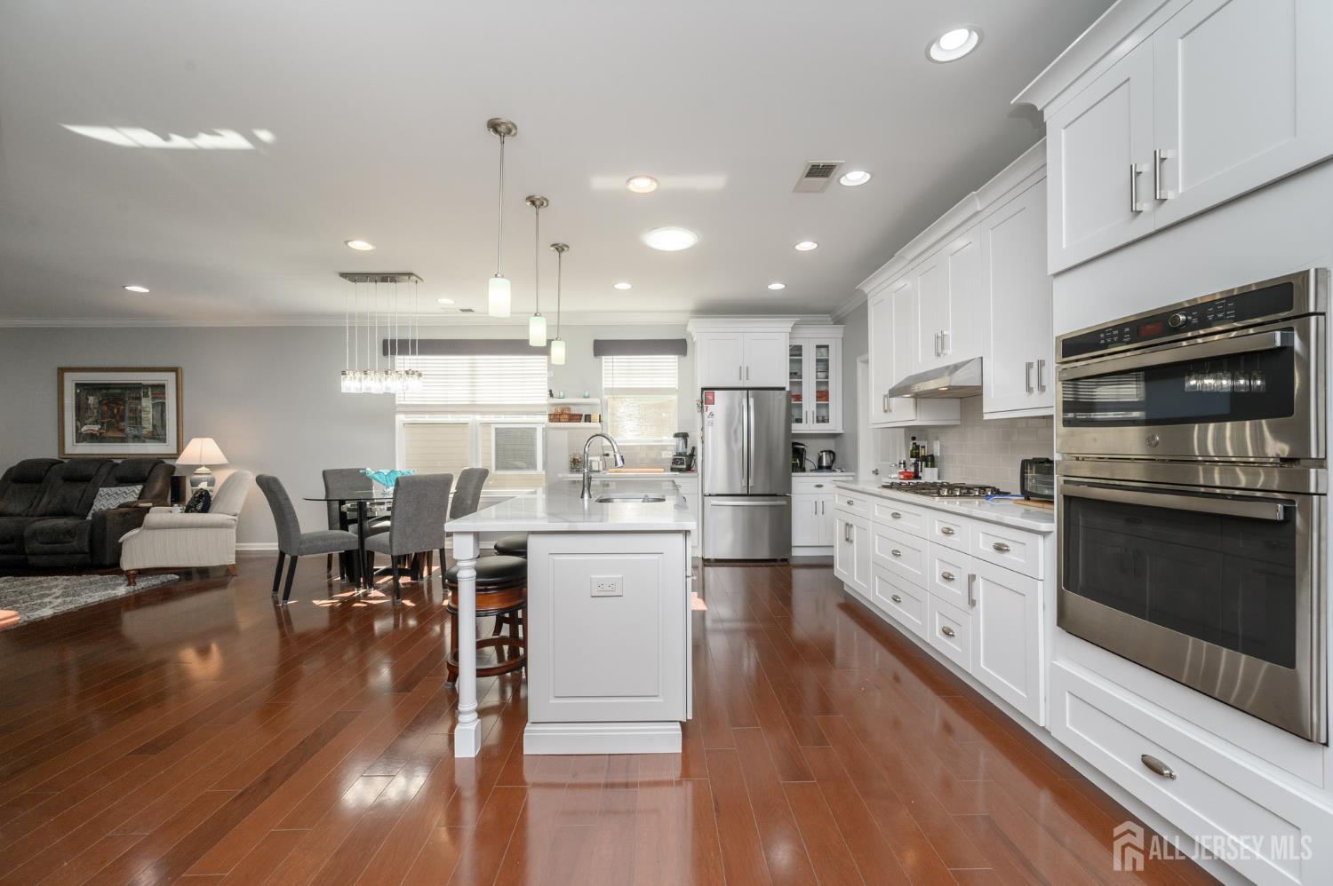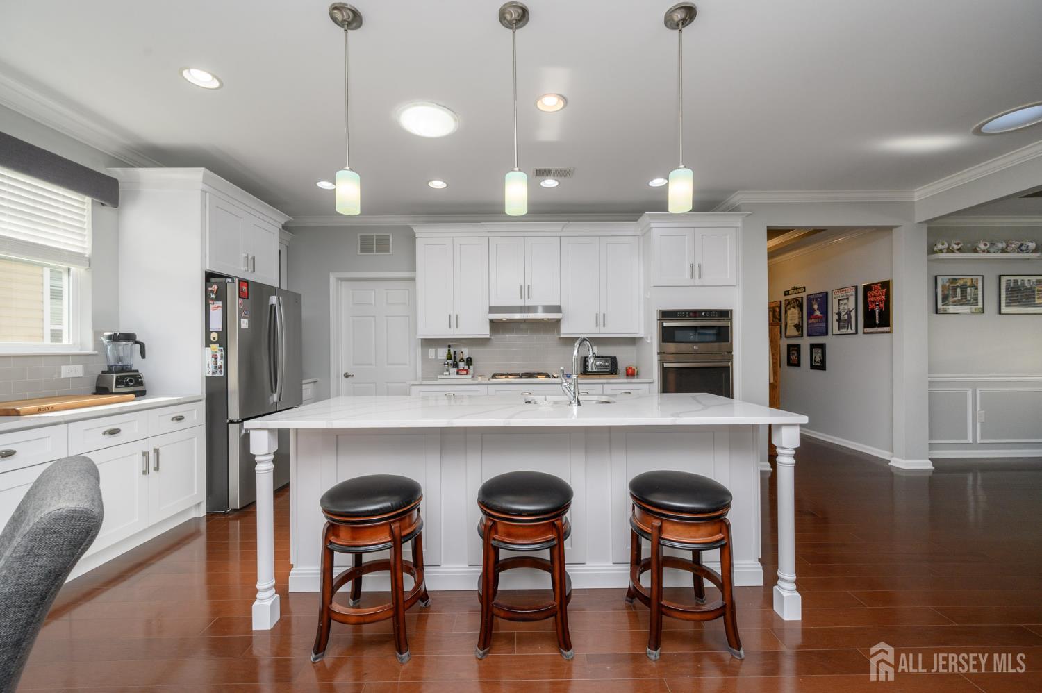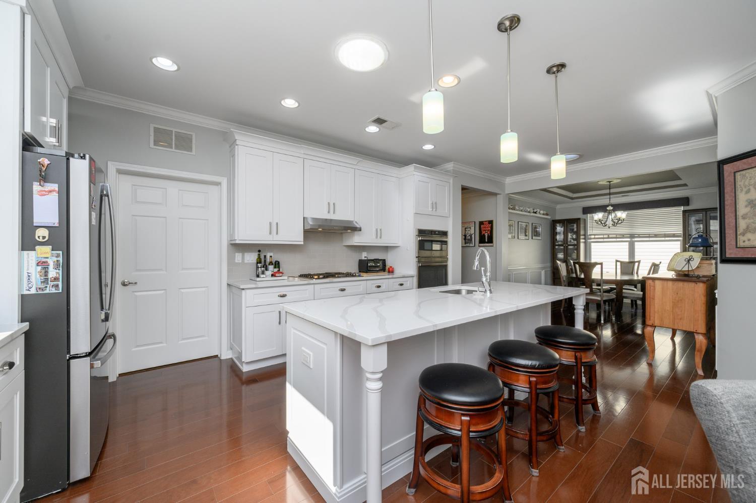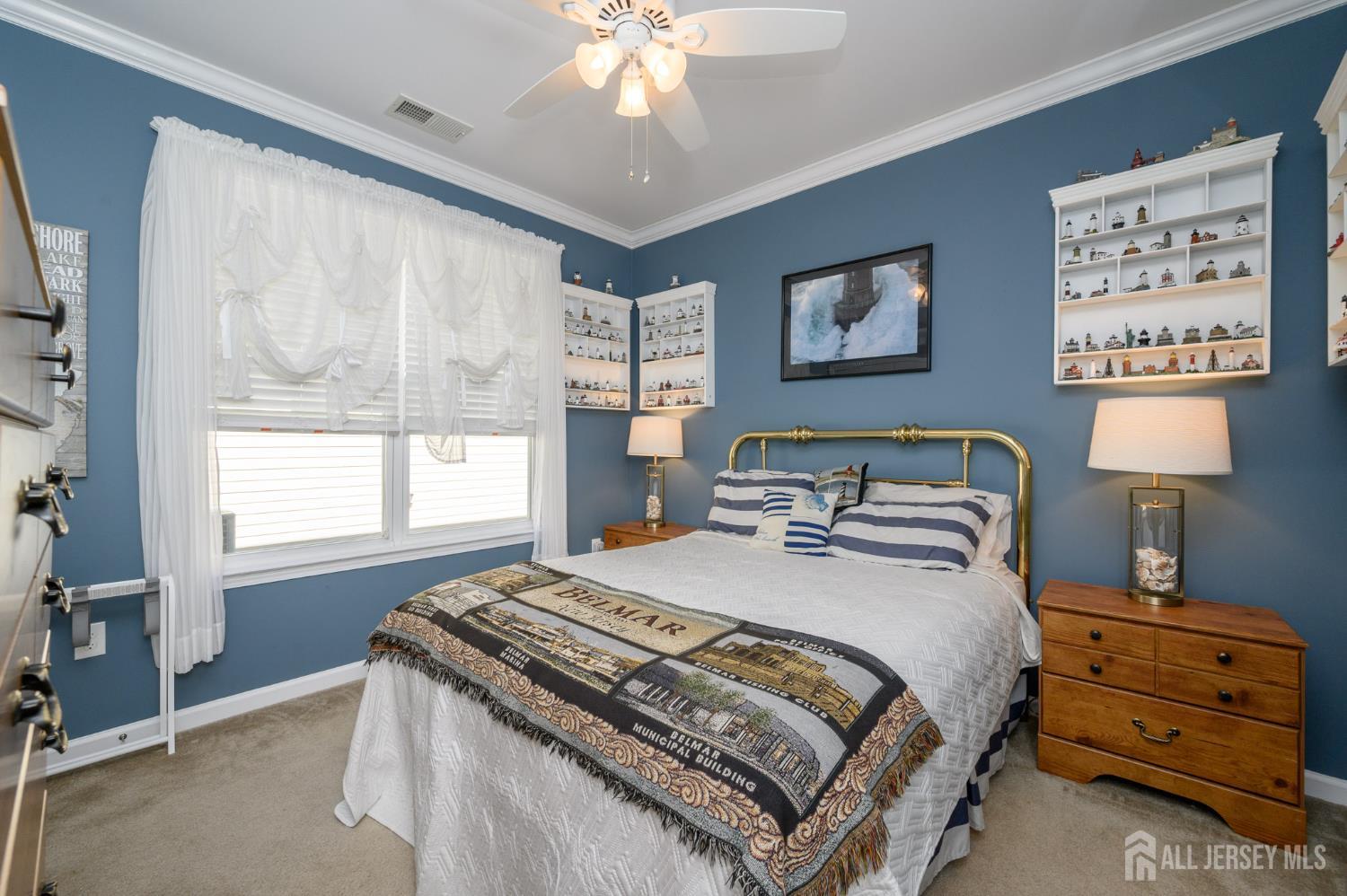 South Knolls at Jackson's 55+ Community premieres this stunning 2 Bed 2 Bath San Marcos model with Master Suite, blissful 3 Season Room, and 2 Car Garage on one of the larger lots with a 4' extension at build, sure to impress! Meticulously maintained inside and out with curb appeal in a sought after community with plenty of amenities to indulge, just pack your bags and move right in. Charming custom covered front porch welcomes you in to find a spacious, freshly painted, accessible interior offering easy one level living, featuring generous room sizes, hardwood floors that shine, elegant custom moldings, custom closets, and plenty of natural light all through. An accessible open layout makes for seamless living and entertaining. Lovely living room with cozy fireplace is perfect for the season, flowing right into the gourmet eat-in-kitchen. Newly renovated eat-in-kitchen will delight any home chef, offering sleek SS appliances, gleaming quartz counters, ample new cabinetry and drawers, an upgraded pantry, recessed lighting, sun soaked dinette space, and a large center island that is ideal for gathering. French door off the living room opens to your blissful 12x18 3 season room, cable equipped, offering walls of windows with peaceful, panoramic views, the perfect spot to enjoy your morning coffee or a good book. Down the hall, find the convenient in-unit laundry, main full bath, and 2 generous bedrooms, inc the Master Suite. MBR boasts its own walk-in closet and private full ensuite bath with dual sinks, vanity, and accessible stall shower. Plush outdoor area holds a 12x16 paver patio that backs to peaceful, park-like views with no neighbors for added privacy, along with a natural gas line to the patio, perfect for al fresco dining and grilling. 2 car garage with double wide drive offers plenty of parking, along with walk-up loft storage, an added bonus. Network wired, attic fans, central air/forced heat, the list goes on! Enjoy endless amenities such as clubhouse events, the outdoor pool, bocce, shuffleboard, tennis courts, pickleball courts, basketball courts, exercise facilities, and more! All conveniently located to shopping, dining, and major roads for an easy commute. Don't miss out! Truly a Move-in-Ready MUST SEE!!