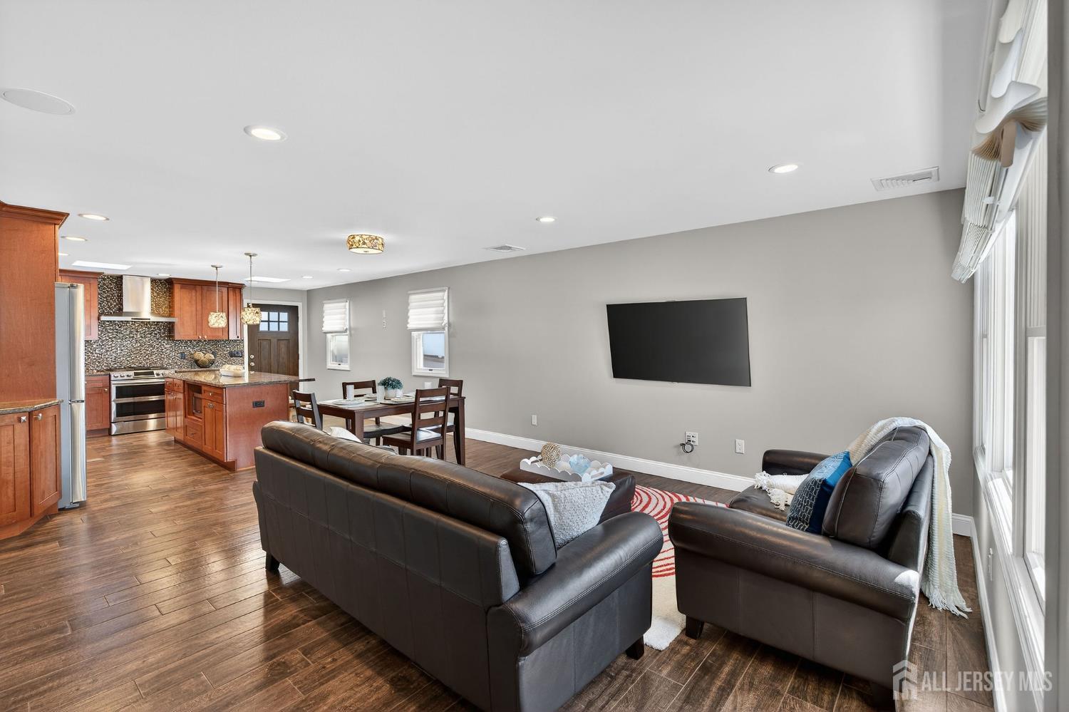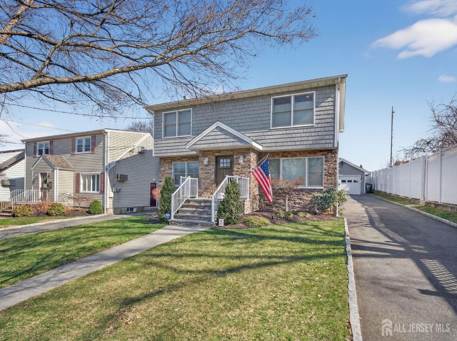 If you've been searching for move-in ready with room to grow - this is it! Renovated in 2016, this 4-bedroom, 2-full bath home offers the perfect blend of style and comfort. From the moment you arrive, the curb appeal sets the tone. Inside, radiant tile flooring warms the first level, complemented by recessed lighting and a beautifully updated kitchen featuring a large quartz center island designed for gathering and everyday living. Upstairs, hardwood floors continue throughout, adding warmth and character. The spacious primary suite offers a true retreat, featuring a custom walk-in closet and a beautifully updated en-suite bath with radiant-heated floors. The full, unfinished basement has been waterproofed with a French drain system and sump pump, offering endless potential. Major upgrades provide peace of mind, including a newer roof (2016), HVAC system (2017), Andersen windows (2017), 4-zone baseboard heat, central vacuum and generator hook-up ready.Outside, enjoy a fully fenced yard with a 5-zone irrigation system, custom bluestone fire pit, concrete patio and detached 1-car garage with heating and cooling, providing a versatile space that can be used as a workshop, home office or the ultimate backyard hangout. A spacious driveway accommodates up to 4 cars. Ideally located near American Dream and Metlife Stadium with easy access to Route 3 and Route 17, convenient bus/train options for NYC commuters - this home checks every box for lifestyle and location.