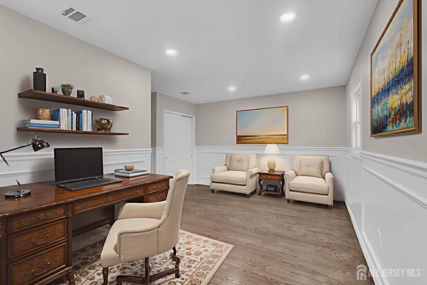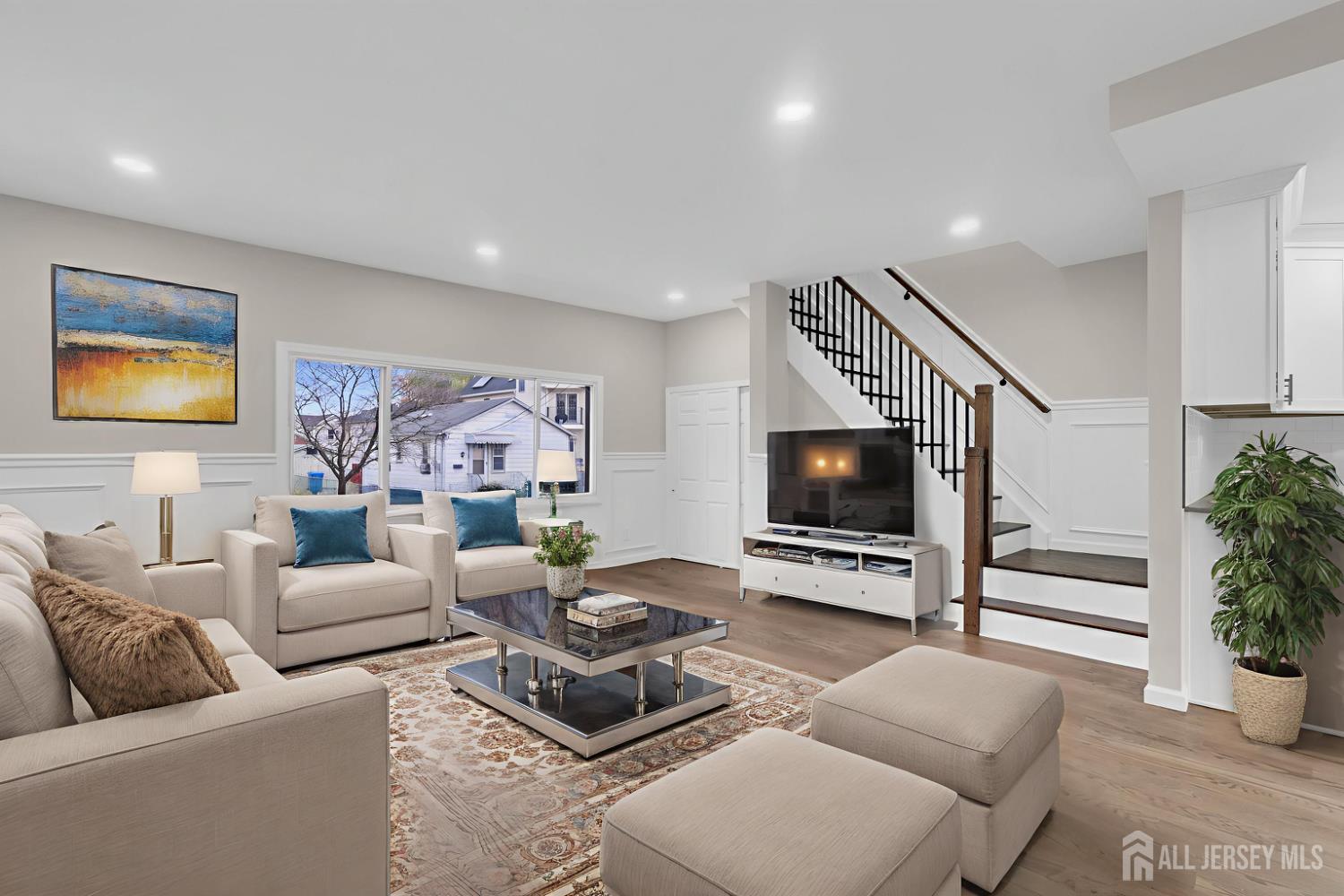Beautiful 3-bed, 2-bath home in the heart of Iselin. 1st Floor features a spacious living room, family room, dining room, updated kitchen, full bathroom, coat closet, and a second much larger closet ideal for a pantry. Upstairs you'll find 3 bedrooms, a full bath, and a bonus den area perfect for an additional living space or home office. Notable upgrades include a brand-new two-zone HVAC system installed in 2025, newer windows and sliding glass door, solar panels, hardwood floors, custom wall trim, and updated bathrooms. The unfinished basement provides utilities, laundry, and ample storage. Enjoy a nicely sized backyard and driveway on an approximately 4,000 sqft lot (40 x 100). Conveniently located near the train station (a 40-minute commute to NYC), close to major highways for easy travels, and only 3 blocks from Oak Tree Ave featuring popular shops and dining.
