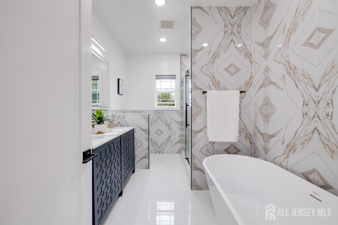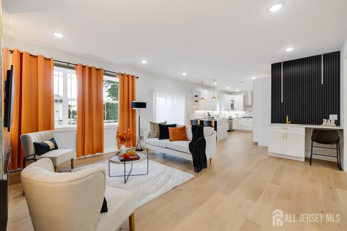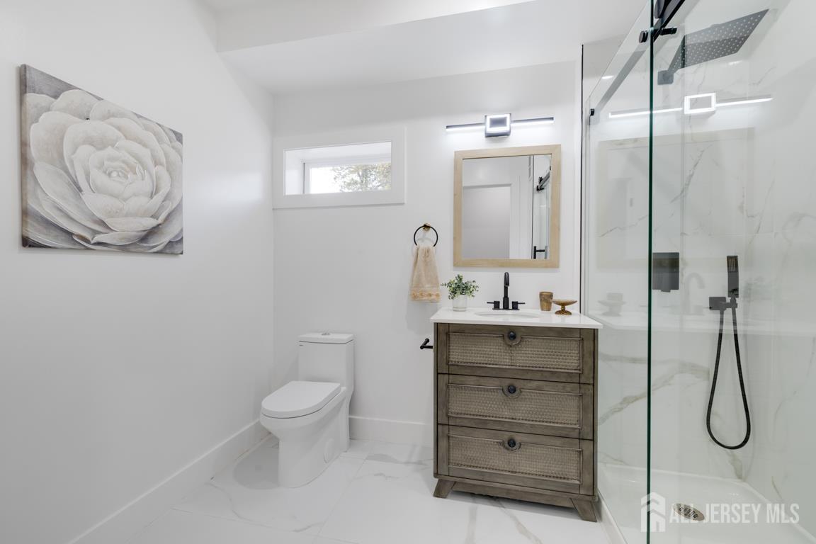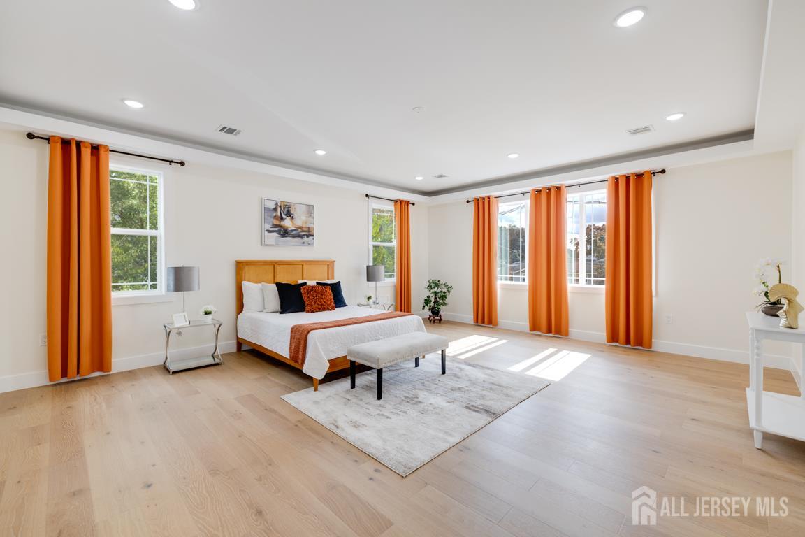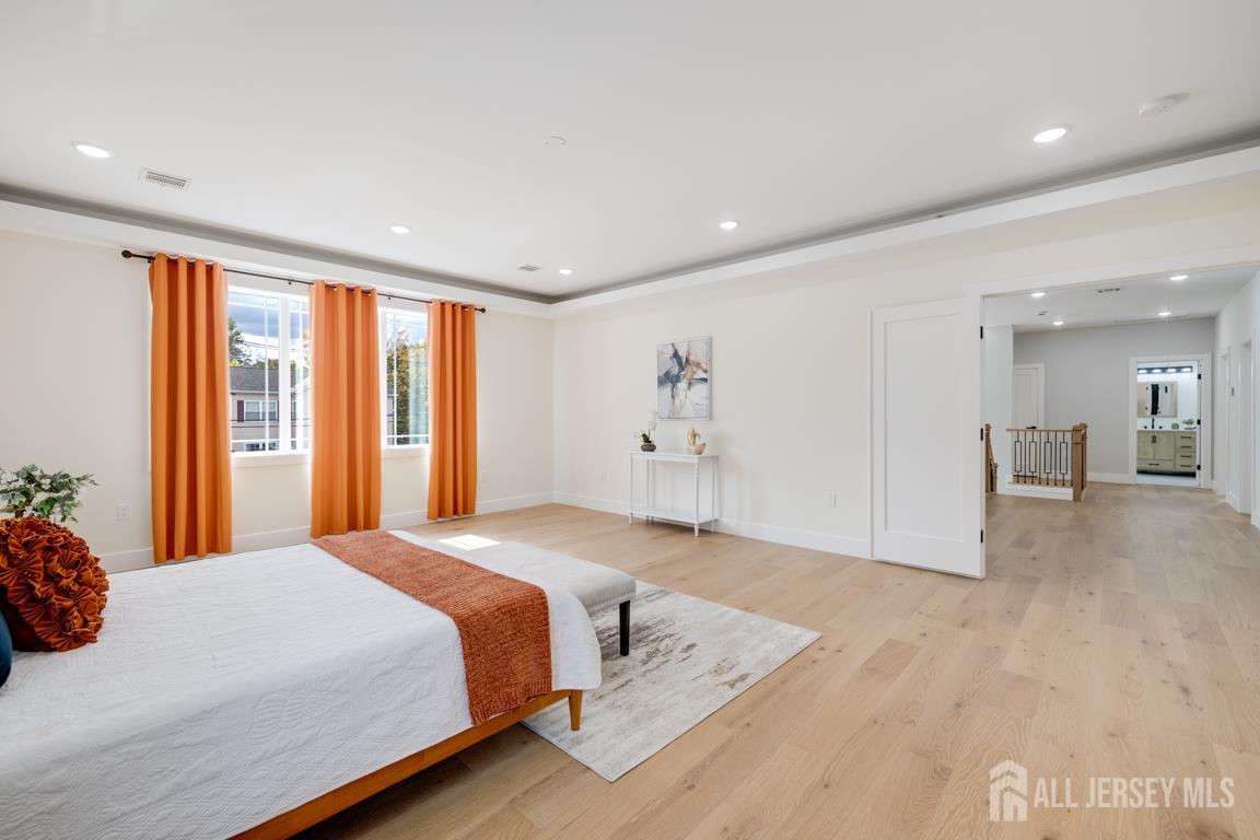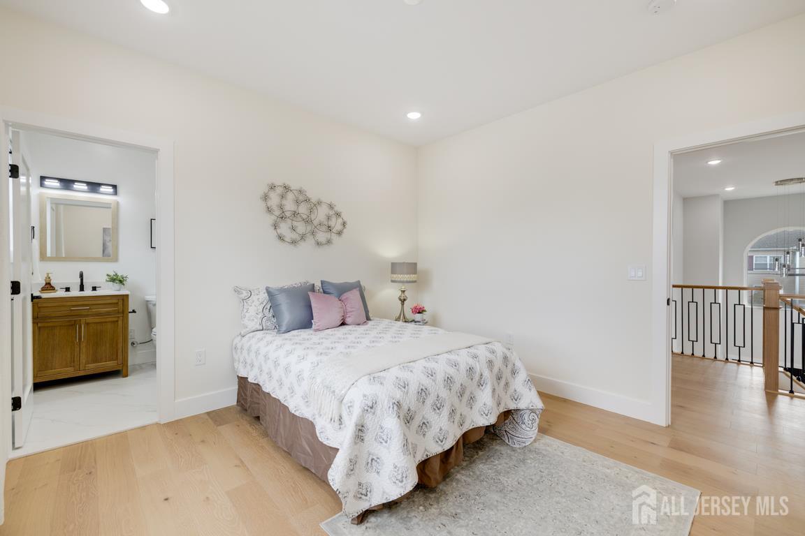 Welcome to this exquisite 5-bedroom, 5-bathroom home with a fully finished exterior access basement in Edison offering over **5,100 sq ft** of total living space, including the basement with a full bath. *** Experience luxury living with spacious interiors, modern design, and top-tier finishes throughout. The inviting floor plan features **9-foot ceilings on both levels** and a **first-floor bedroom with a full bath**, ideal for guests or multi-generational living. *** The **gourmet kitchen** is a chef's delight equipped with a cooktop, high-end appliances, custom cabinetry, and a convenient breakfast bar perfect for casual dining. The **family room** exudes warmth and sophistication with an elegant electric fireplace and refined deco. *** Upstairs, the **primary suite** offers a spacious closet and a spa-like ensuite bath with a soaking tub for ultimate relaxation. An additional **ensuite bedroom** plus two more generous bedrooms sharing a full bath provide flexibility and comfort for family or guests. The **second-floor den** makes an ideal office, library, or extra lounge area, complete with access to a private balcony. *** Additional premium features include **Pella windows**, **dual-zone HVAC**, **EV charger setup**, and **security camera readiness**. The **finished basement**, with ceilings over 8 feet and a full bath, provides endless possibilities for a home theater, gym, or recreation space. *** Nestled in a sought-after Edison neighborhood, this home offers **easy access to major highways, top-rated schools, shopping centers, dining, parks, and the Edison NJ Transit station** (≈50 minutes to NYC). Close to **Rutgers University, RWJ Hospital**, and major supermarkets and malls, this property delivers the perfect blend of **luxury, convenience, and location**. **Truly one of the finest homes in South Edison a rare opportunity not to be missed!**