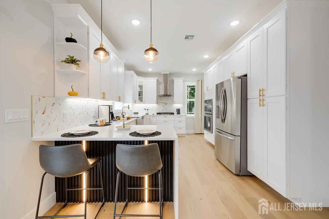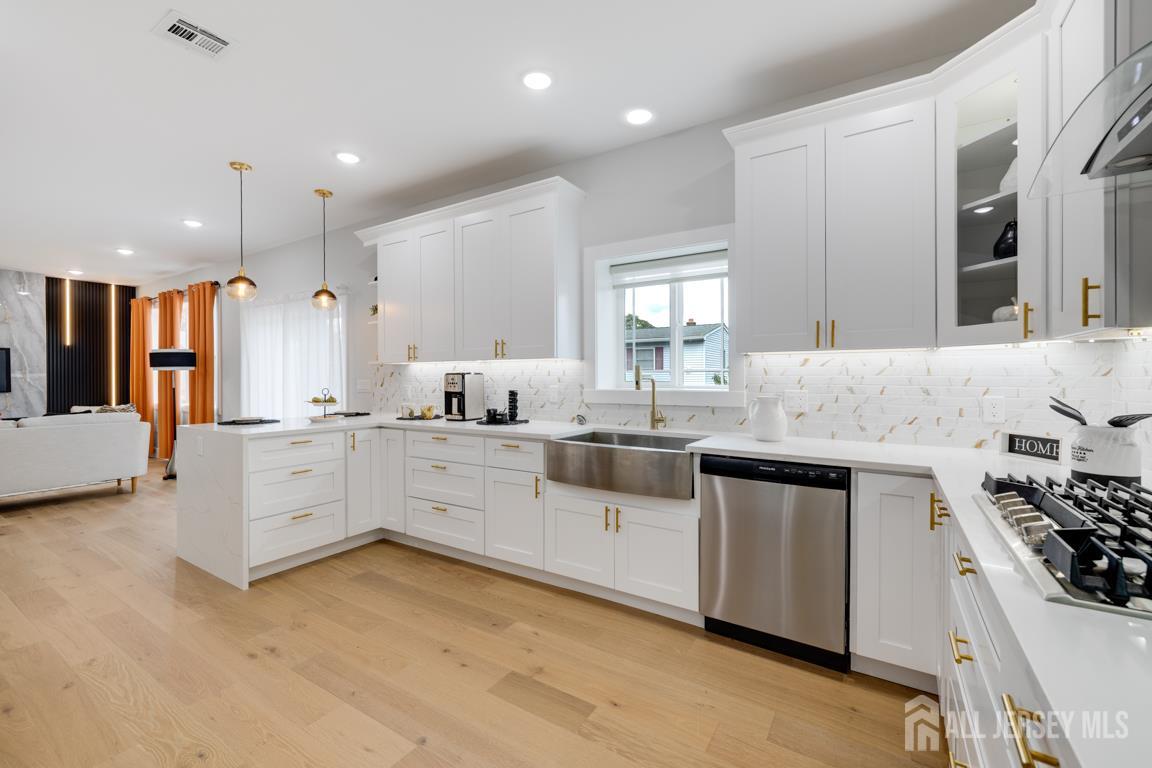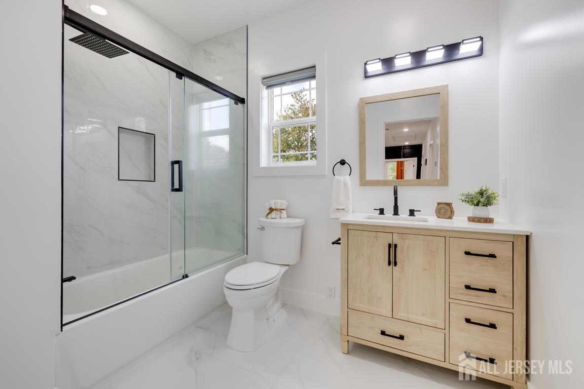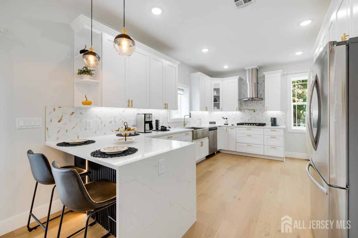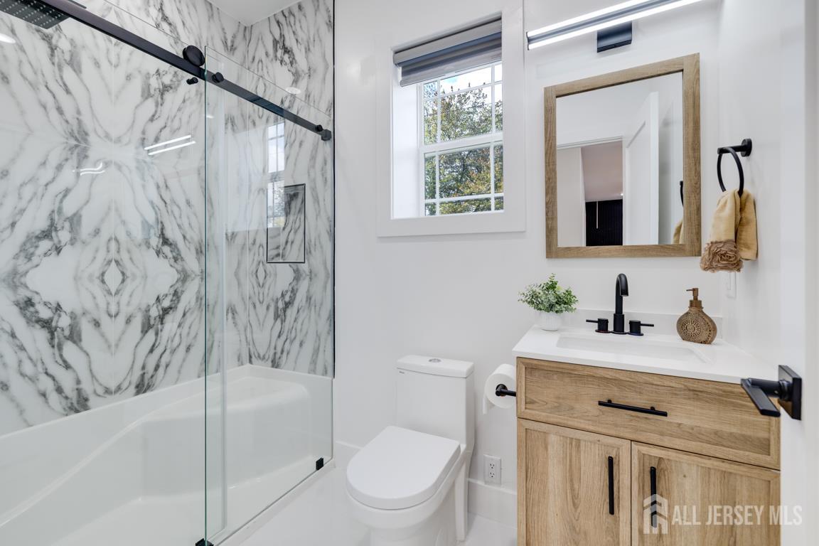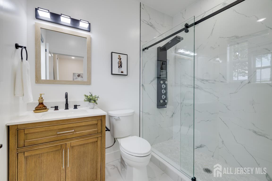 Welcome to this exquisite 5-bedroom, 5-bathroom home with a fully finished exterior access basement in Edison offering over **5,100 sq ft** of total living space, including the basement with a full bath. *** Experience luxury living with spacious interiors, modern design, and top-tier finishes throughout. The inviting floor plan features **9-foot ceilings on both levels** and a **first-floor bedroom with a full bath**, ideal for guests or multi-generational living. *** The **gourmet kitchen** is a chef's delight equipped with a cooktop, high-end appliances, custom cabinetry, and a convenient breakfast bar perfect for casual dining. The **family room** exudes warmth and sophistication with an elegant electric fireplace and refined deco. *** Upstairs, the **primary suite** offers a spacious closet and a spa-like ensuite bath with a soaking tub for ultimate relaxation. An additional **ensuite bedroom** plus two more generous bedrooms sharing a full bath provide flexibility and comfort for family or guests. The **second-floor den** makes an ideal office, library, or extra lounge area, complete with access to a private balcony. *** Additional premium features include **Pella windows**, **dual-zone HVAC**, **EV charger setup**, and **security camera readiness**. The **finished basement**, with ceilings over 8 feet and a full bath, provides endless possibilities for a home theater, gym, or recreation space. *** Nestled in a sought-after Edison neighborhood, this home offers **easy access to major highways, top-rated schools, shopping centers, dining, parks, and the Edison NJ Transit station** (≈50 minutes to NYC). Close to **Rutgers University, RWJ Hospital**, and major supermarkets and malls, this property delivers the perfect blend of **luxury, convenience, and location**. **Truly one of the finest homes in South Edison a rare opportunity not to be missed!**