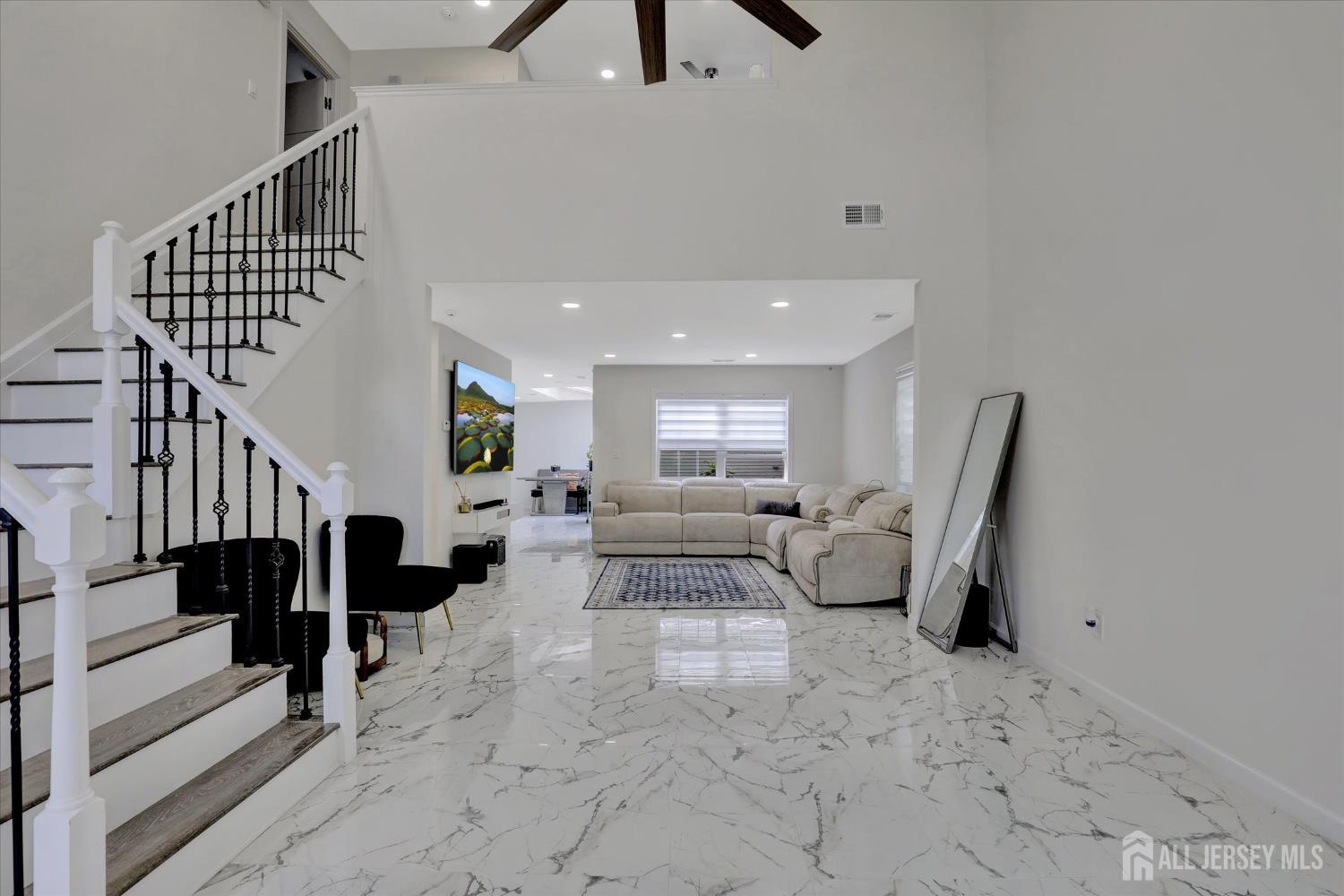 Welcome to this beautifully upgraded two bedroom, two full bath home located in the highly desirable 55 plus gated community of Greenbriar at Whittingham. This bright and spacious corner end unit offers comfort, style, and convenience in every detail. The home features a modern chef's kitchen with a central island, stainless steel appliances, and elegant porcelain floors. High ceilings and an open layout create a grand, airy atmosphere throughout the main level. The primary bedroom is conveniently located on the first floor and showcases a raised ceiling for an added sense of space and elegance. The second floor offers a large loft with a cozy fireplace that can be used as a guest suite, office, or lounge. The fenced-in patio backyard provides a private outdoor space perfect for relaxing or entertaining. A two car garage along with a driveway that fits two additional cars completes the home. Living in Greenbriar at Whittingham means enjoying resort-style amenities including indoor and outdoor pools, a fully equipped fitness center, a clubhouse with countless activities and events, a movie theatre, and the added peace of mind of an on-site nurse. The community is gated with 24/7 security and is ideally located close to shopping, dining, and major highways. This is truly an exceptional opportunity to enjoy a luxurious lifestyle in one of Central New Jersey's most sought-after communities.