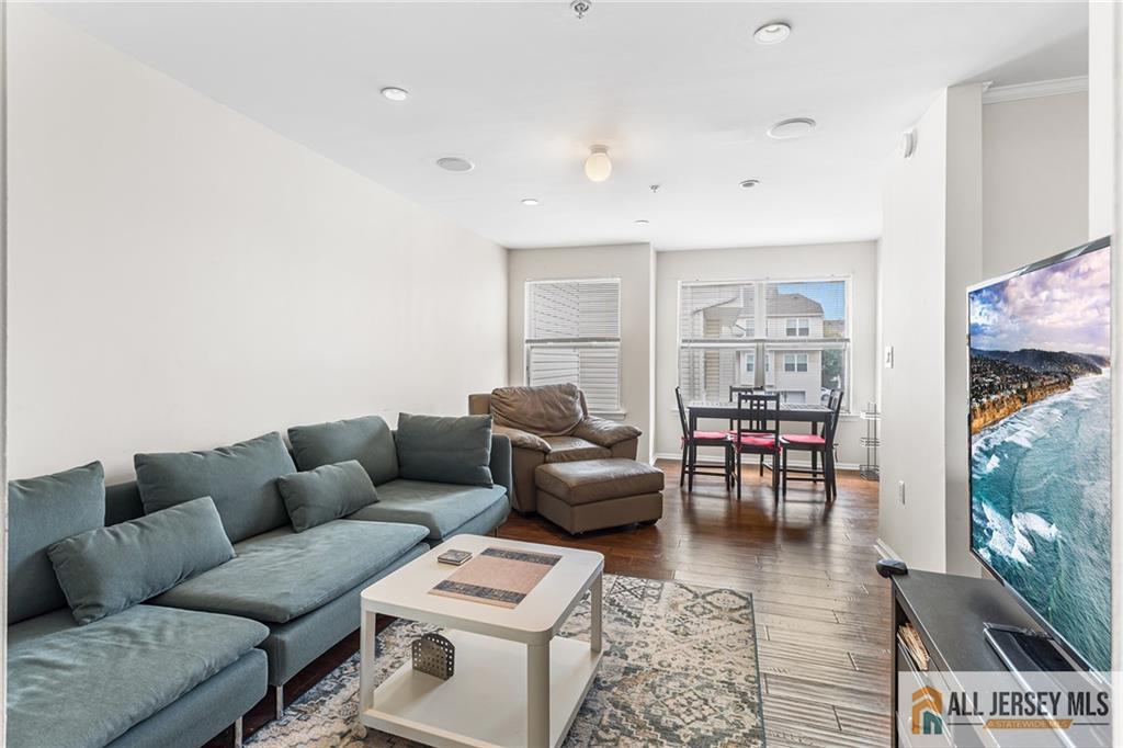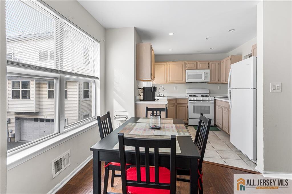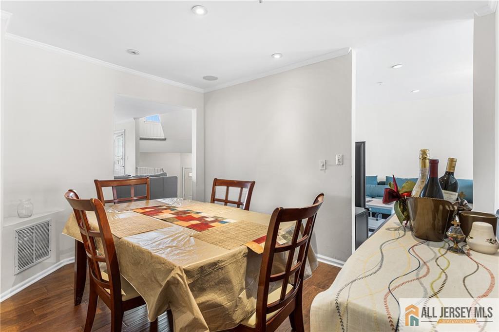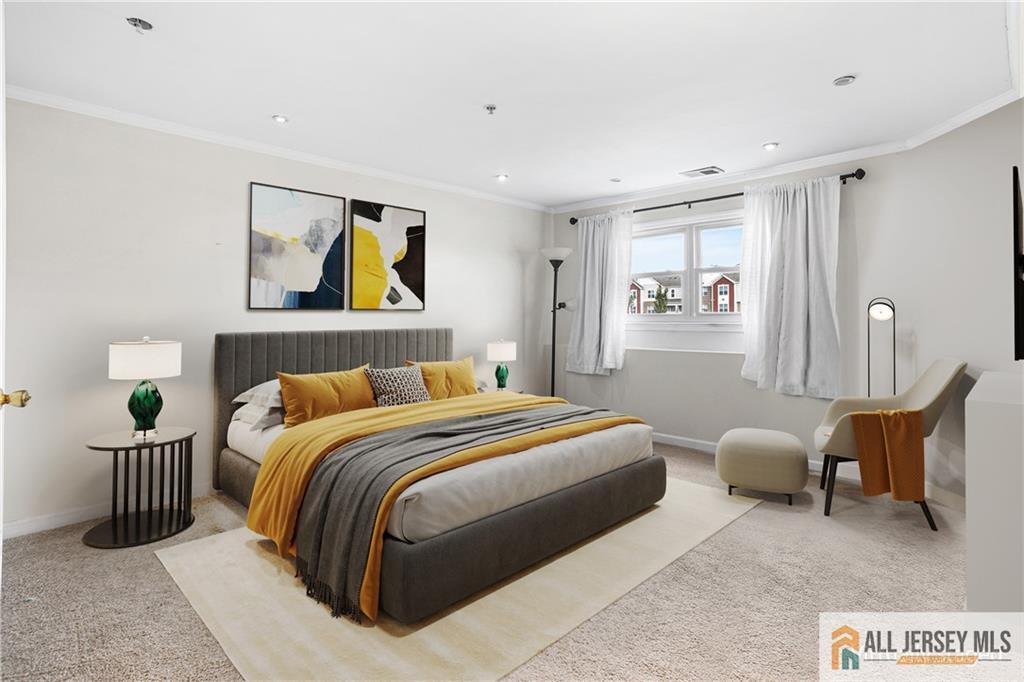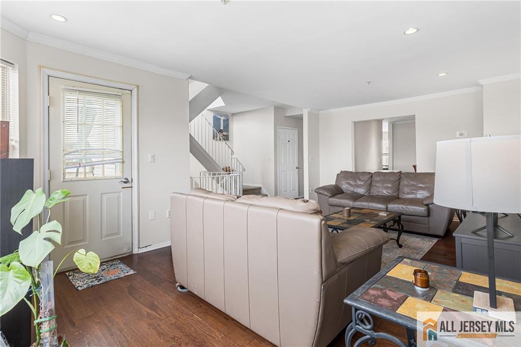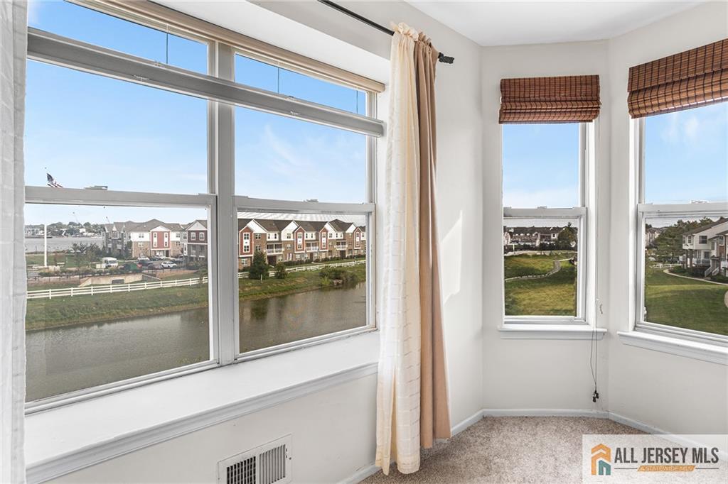 Welcome to this light-filled three-level Clipper model, the largest layout in Harbortown Crossings, offering 4 bedrooms, 3.5 baths, and 2,045 sq. ft. of living space. This rare townhome features full water views from the living room, terrace, primary suite, 4th bedroom, and landingan amenity enjoyed by very few units in the community. The main level boasts a bright living and dining room with crown molding, recessed lighting on dimmers, engineered wood flooring, sound system, and terrace access. An open-concept kitchen flows into the great room with engineered wood floors and recessed lighting on dimmers. A stylish powder room and large pantry complete this level. Upstairs, the primary suite offers a WIC, recessed lighting on dimmers, ceiling fan, sound system, and a bath with chair rail tile work and shower stall with floor to ceiling tiles, along with two additional bedrooms, a hall tub bath, and a laundry room with closet. The lower level provides a private bedroom with full tile bath, recessed lighting on dimmers, crown molding, and access to the two-car garage with openers. Recent updates include a new furnace and hot water heater (2022). Enjoy community amenities such as a shuttle to Woodbridge Train Station (express stop) plus the Perth Amboy Harborside Marina featuring two fishing piers and a paved waterfront walkway and beach access.