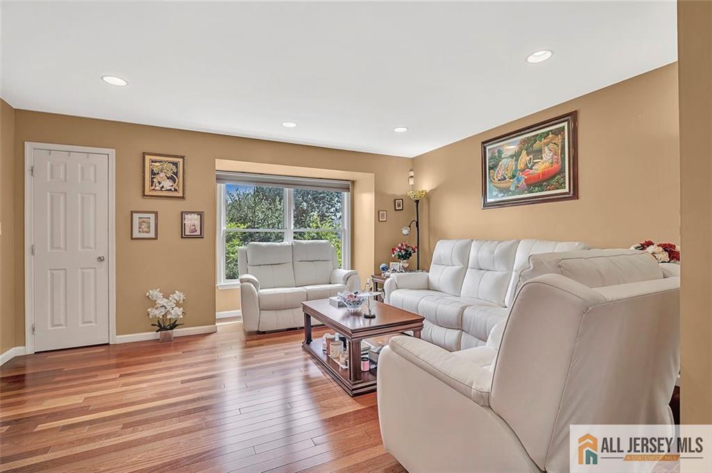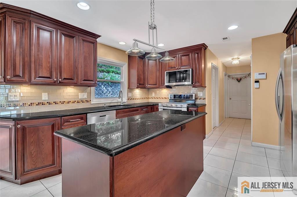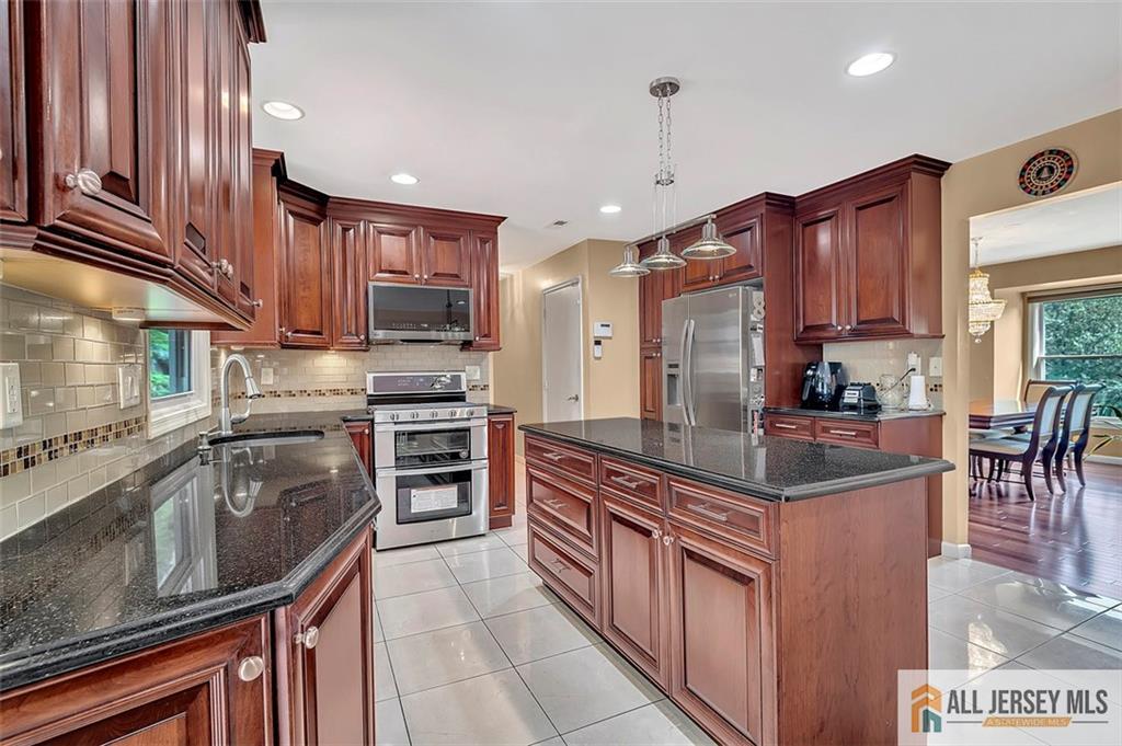 From the first light of sunrise to evenings spent entertaining on the deck, this Sunrise Landing residence captures the perfect blend of timeless elegance and modern comfort. With striking curb appeal, Brazilian cherry hardwoods, & thoughtful upgrades, it stands as a showcase of classic design reimagined for today's lifestyle. Set within East Brunswick's coveted Sunrise Landing community, it offers more than a homeit offers a way of life defined by warmth, refinement, & convenience. Professionally landscaped grounds frame the property, while a new paver driveway, updated entry stairs, & a classic dark chocolate brown front door create a lasting first impression. Step inside & discover interiors designed for refined living & effortless entertaining. The east-facing orientation fills the home with natural light, welcoming sunrises each morning. Hardwood floors add sophistication, complemented by recessed lighting in the living room, family room, & kitchen. A formal dining room sets the stage for gatherings, while the main floor also offers an office, a classic half bath, & a laundry room. The kitchen is the heart of the home, showcasing black granite countertops, 42-inch cabinets with crown molding,& a timeless white tile floor. This tile begins in the entryway & flows into the kitchen & hallway, creating visual continuity & ease of care. Spacious & inviting, the kitchen connects seamlessly to both casual & formal living areas, ideal for everyday life & entertaining. Upstairs, four bedrooms provide privacy and comfort. The primary suite features his-&-hers closetsincluding a walk-in& a bath designed with timeless elegance, complete with a linen closet. Plush carpet extends throughout the second floor. A second full bath of classic design serves the additional bedrooms, with an extra hallway linen closet for convenience. The finished basement expands the living space, offering flexibility for recreation, media, fitness, or gatherings. Whether you envision movie nights, a home gym, or a playroom, this level adapts to your lifestyle. Recent updates include a new HVAC system (2025), water heater (2025), gutters, upgraded brick stairs leading to the front door, EV charger, & epoxy-coated garage flooring. Outdoors, the backyard is designed for year-round enjoyment. The expansive deck is perfect for entertainingshaded summer afternoons, and crisp autumn evenings. With a built-in gas hook-up for cooking, it becomes the ultimate space for hosting or relaxing. Professional landscaping enhances privacy and beauty, creating a serene retreat. In Sunrise Landing, this home offers more than refined interiors and upgradesit offers a lifestyle. Enjoy access to East Brunswick's top-rated schools, nearby parks, fine dining, and effortless commuting, all while returning each day to a private retreat defined by warmth and elegance. Few homes capture this balance of timeless charm and modern comfortcome see for yourself what makes this residence so special.