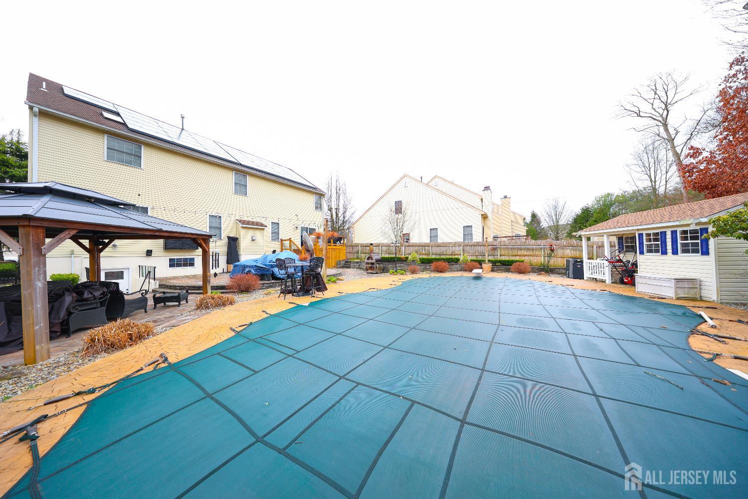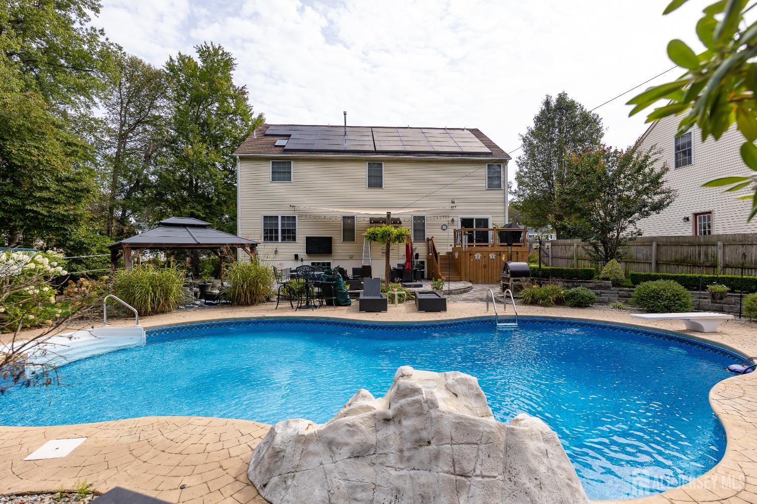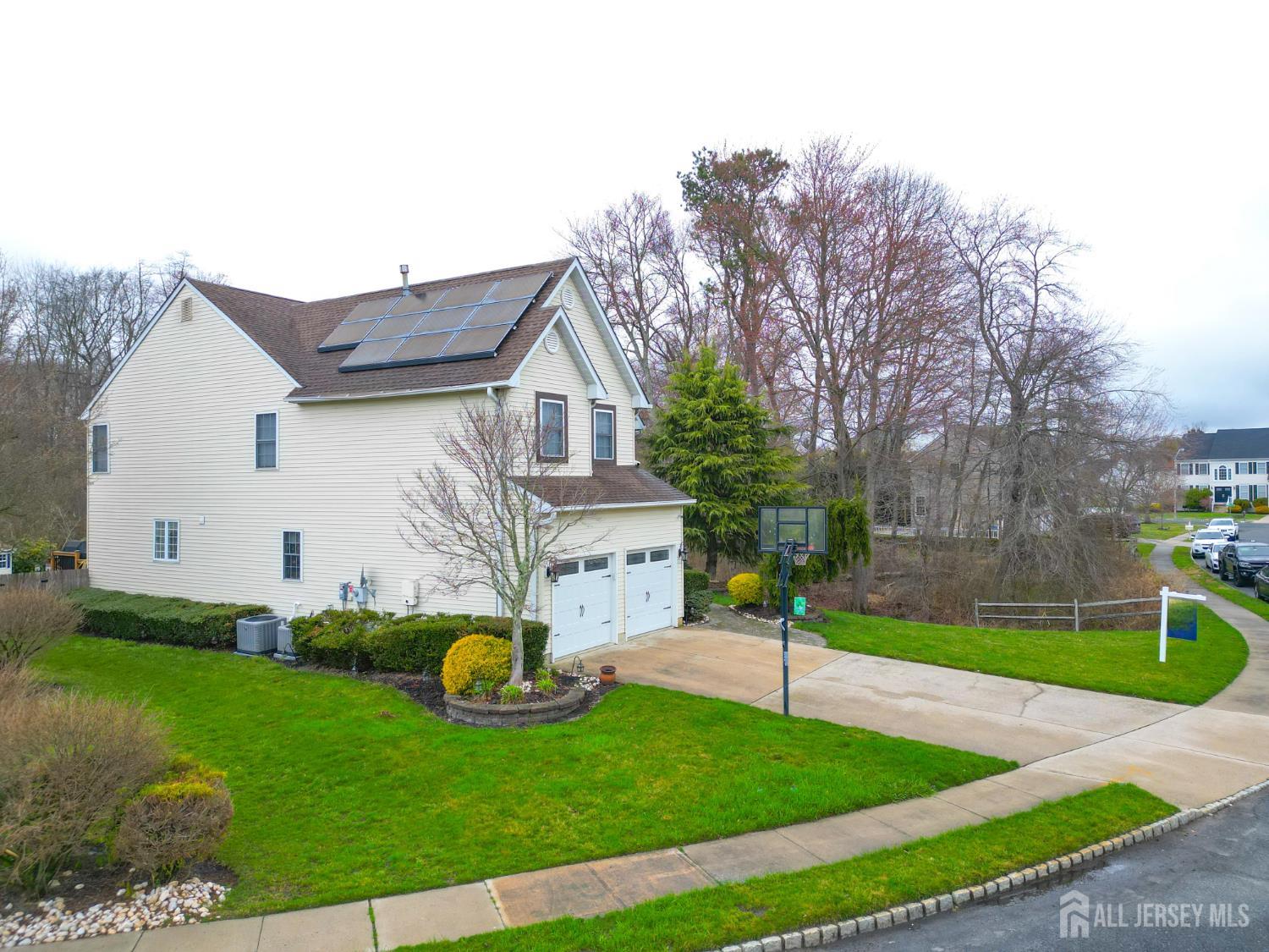 Welcome to 8 Clearbrook Court--an exceptional residence tucked away on a peaceful cul-de-sac, offering the perfect blend of space, comfort, and lifestyle. This impressive 6-bedroom home, plus a versatile loft and 4.5 bathrooms, is thoughtfully designed for both everyday living and entertaining. Step into a grand two-story foyer that sets the tone for the home's elegant yet inviting feel. The open floor plan seamlessly connects expansive living areas, creating an ideal setting for gathering with family and friends. The large eat-in kitchen serves as the heart of the home, while the finished basement with high ceilings provides additional space for recreation, relaxation, or entertaining. Custom moldings throughout add a refined touch to every room. Set on a private quarter-acre-plus lot, the outdoor space is just as impressive. Enjoy your own backyard retreat featuring an in-ground heated pool, surrounded by lush greenery that offers both privacy and tranquility. Whether hosting summer gatherings or enjoying quiet mornings, this outdoor oasis delivers a true sense of escape. Adding even more appeal, solar panels make this home as efficient as it is beautiful, offering the benefit of virtually no energy costs. Perfectly positioned on a cul-de-sac, the home offers a sense of safety and community that enhances everyday living. The setting provides a peaceful environment with minimal traffic, ideal for outdoor enjoyment and a welcoming neighborhood feel. From its spacious layout to its serene surroundings, 8 Clearbrook Court is more than just a home--it's a place where comfort, connection, and lasting memories come naturally.
